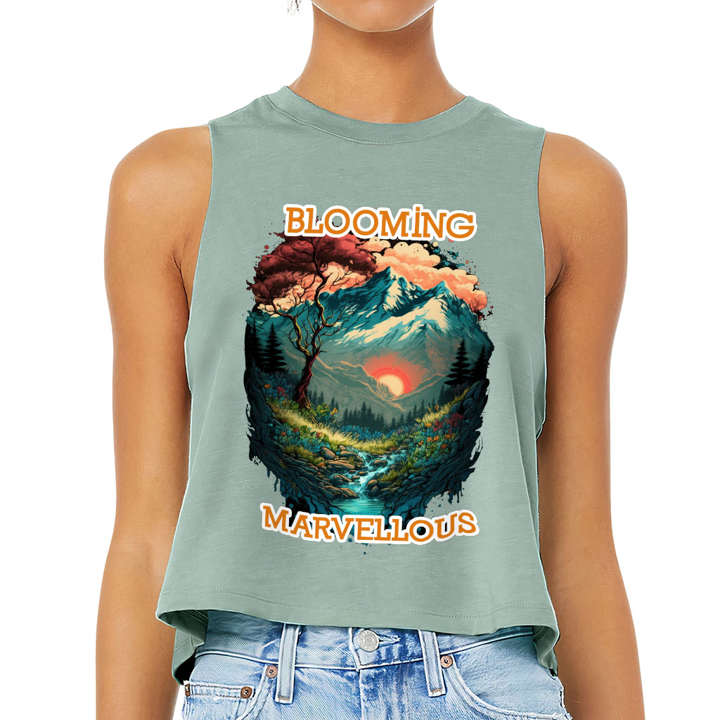 Blooming Marvellous Racerback Cropped Tank – Art Women’s Tank – Mountain Tank Top