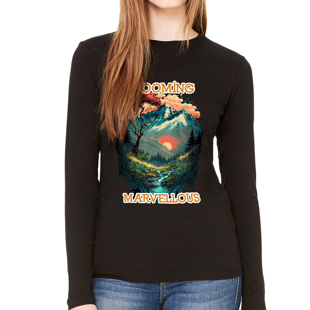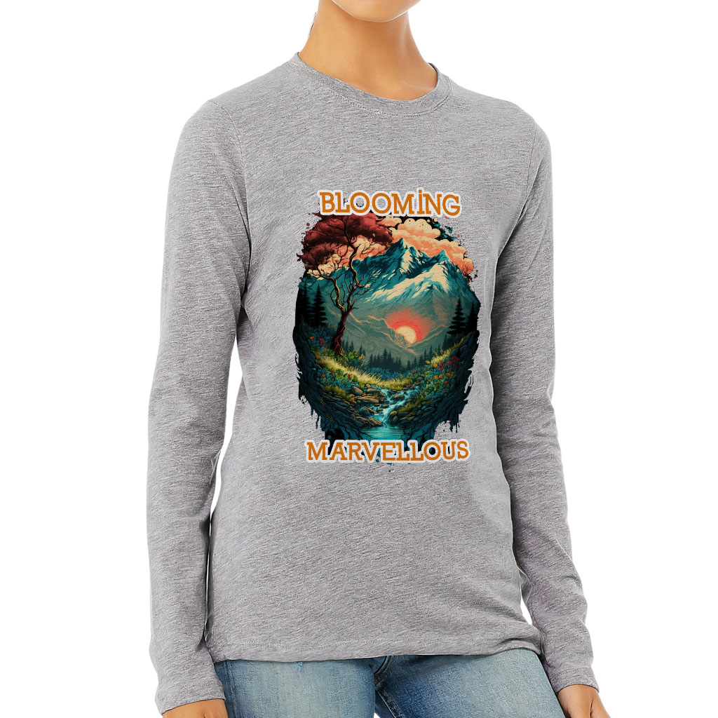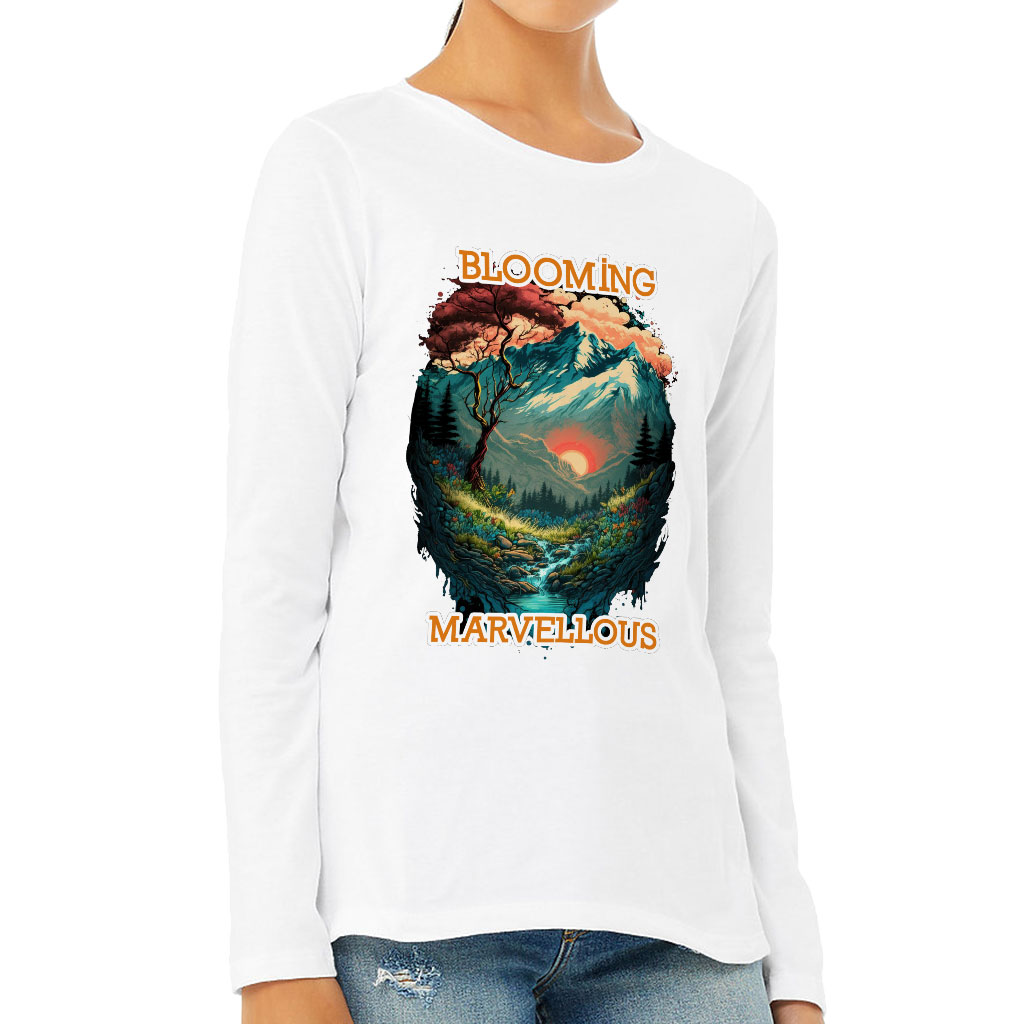 Blooming Marvellous Women’s Long Sleeve T-Shirt – Art Long Sleeve Tee – Mountain T-Shirt