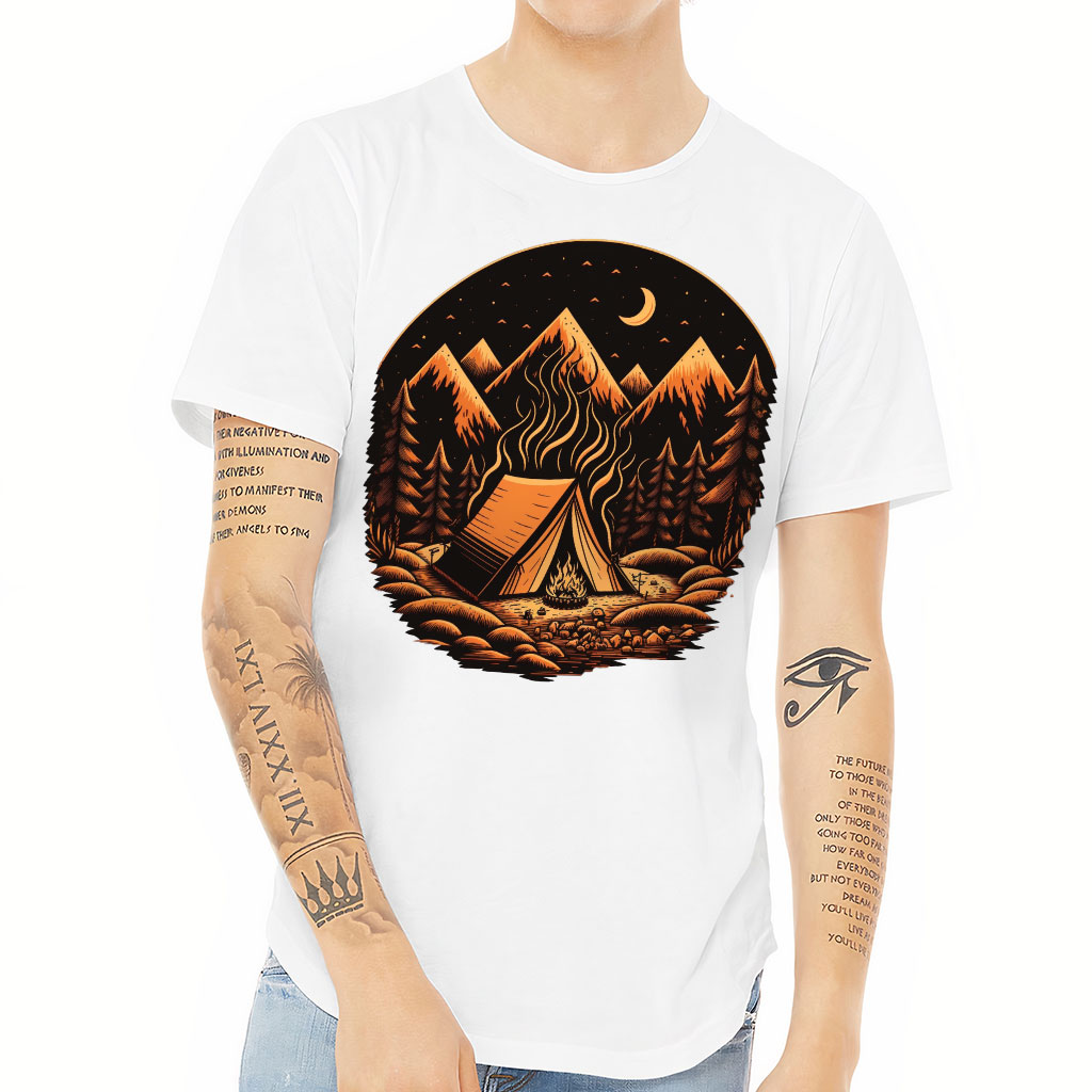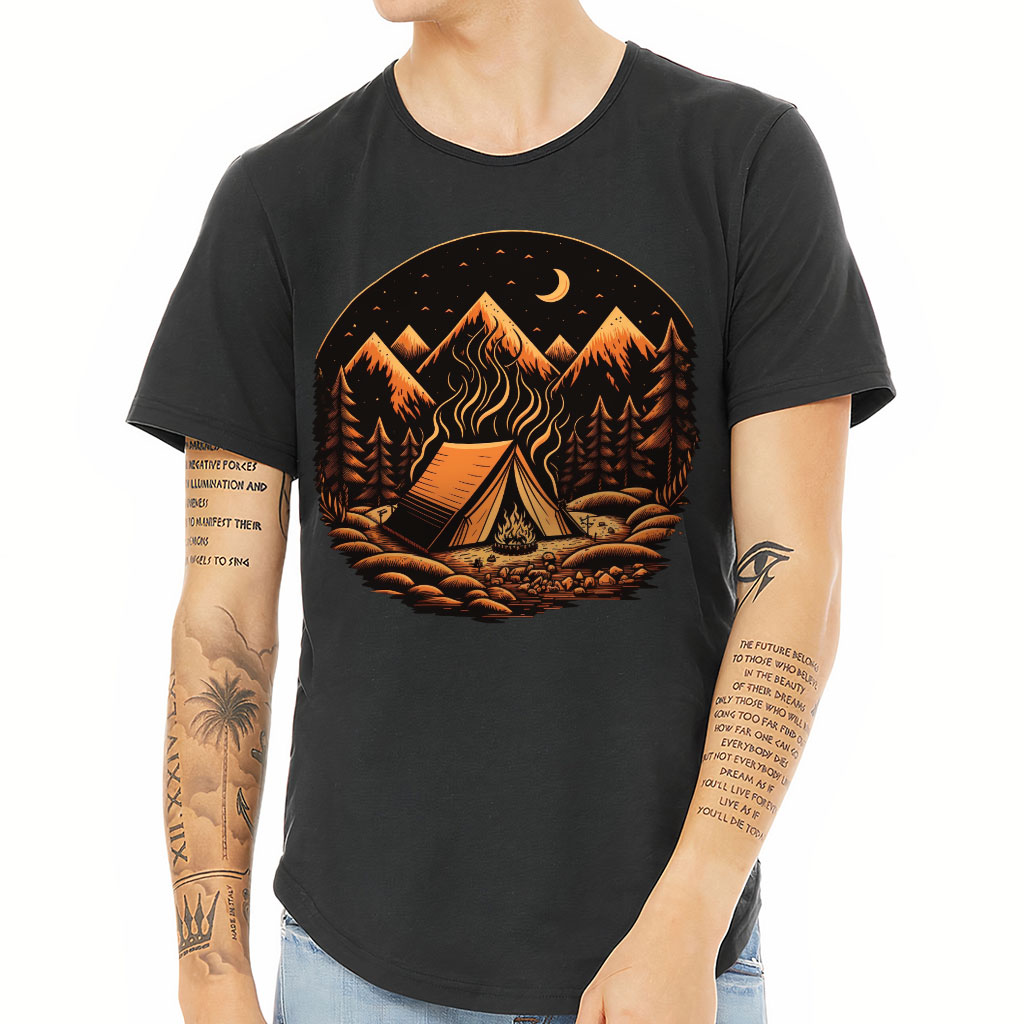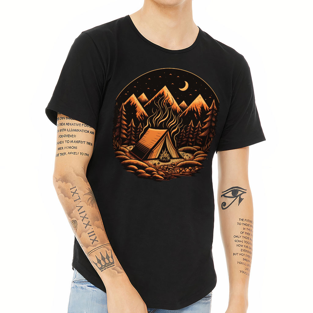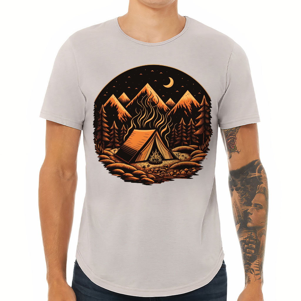 Camping Curved Hem T-Shirt – Cool T-Shirt – Travel Curved Hem Tee