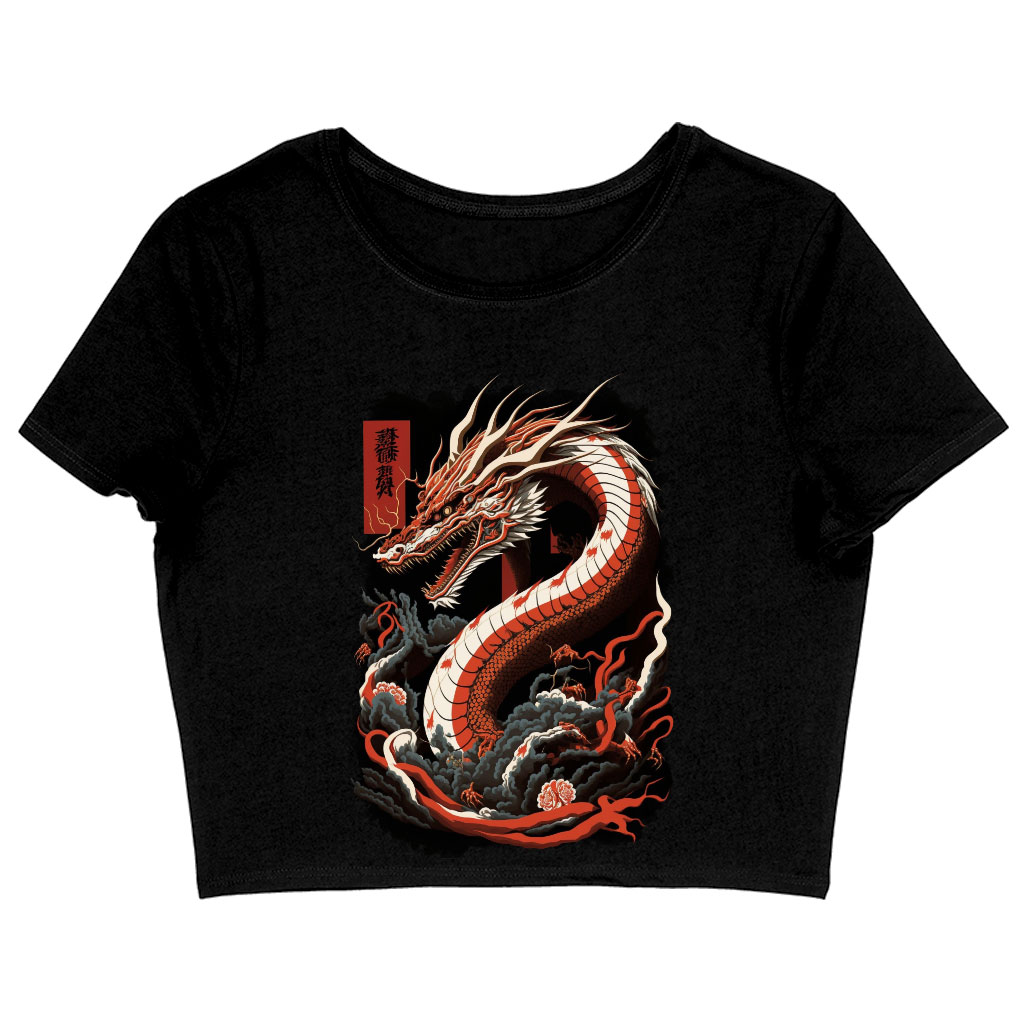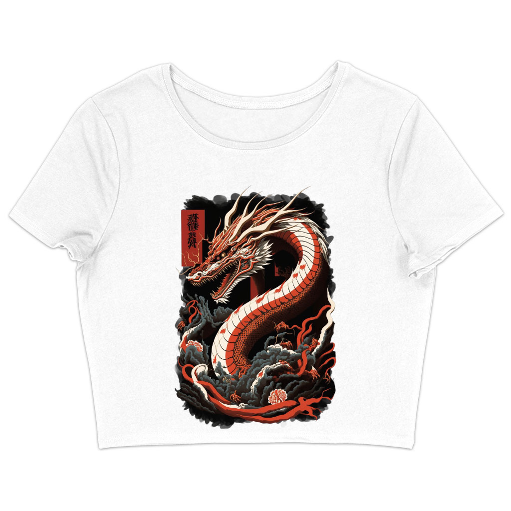 Chinese Dragon Women’s Cropped T-Shirt – Illustration Crop Top – Cool Design Cropped Tee