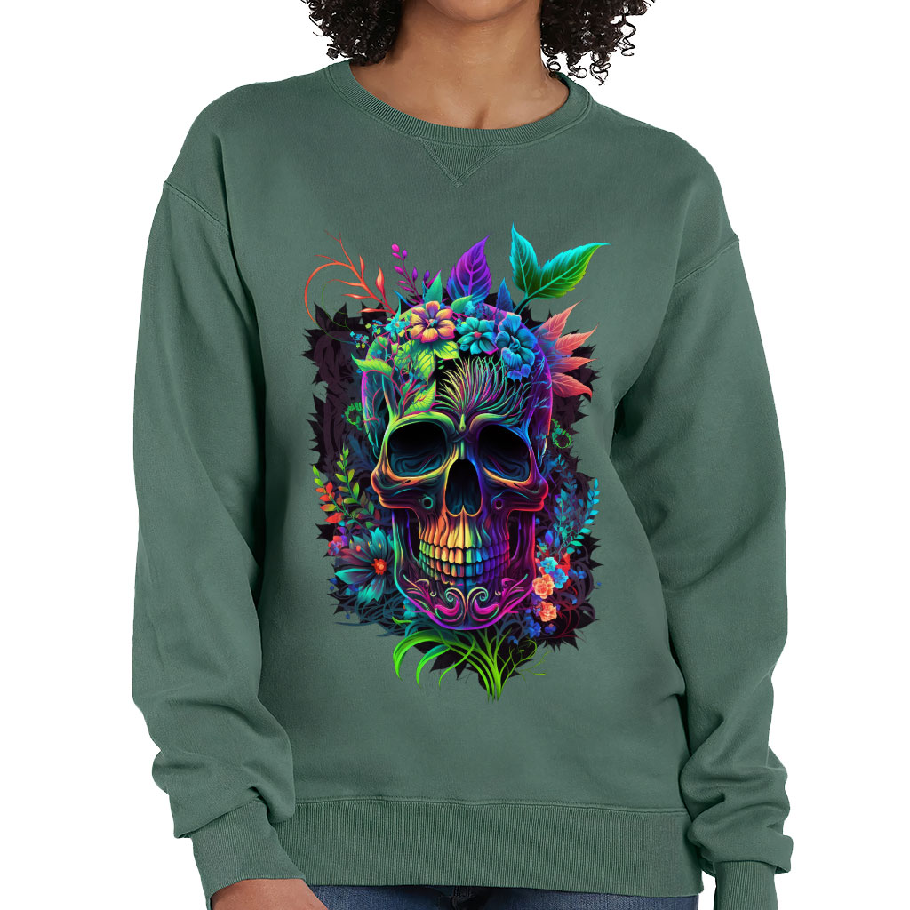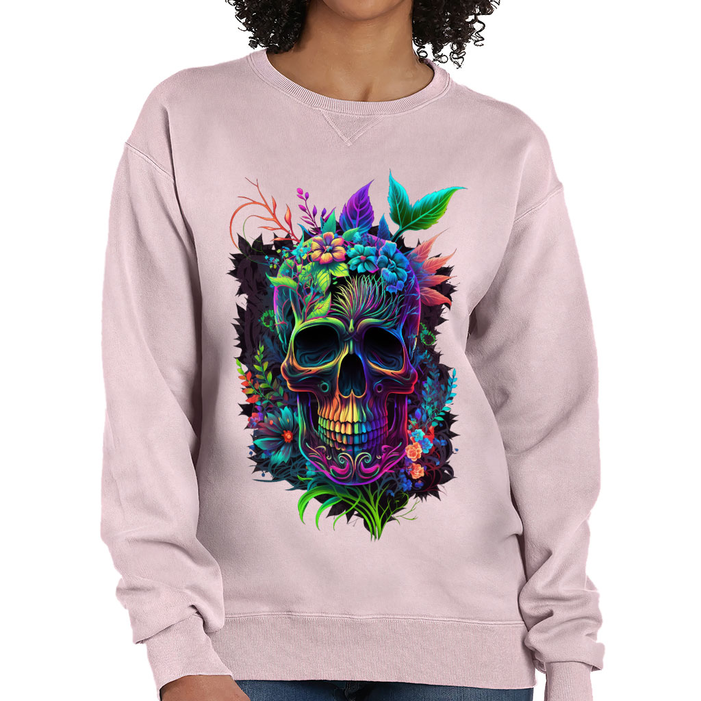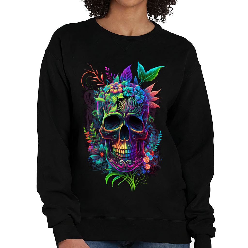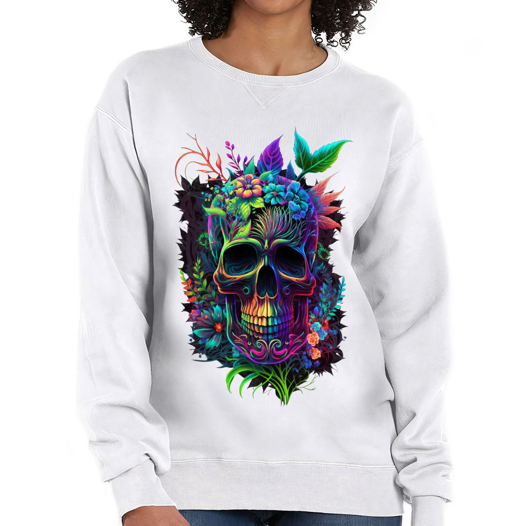Cool Skull Crewneck Sweatshirt – Flower Print Women’s Sweatshirt – Cool Design Sweatshirt