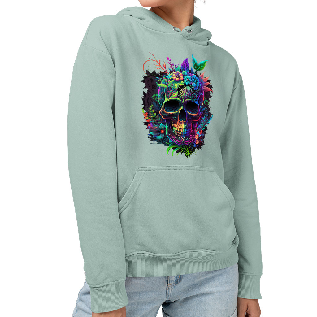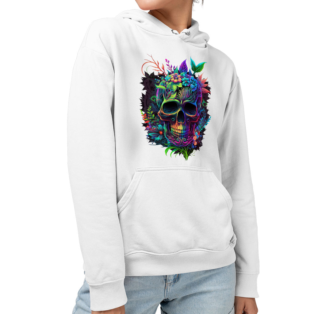 Cool Skull Sponge Fleece Hoodie – Flower Print Hoodie – Cool Design Hooded Sweatshirt