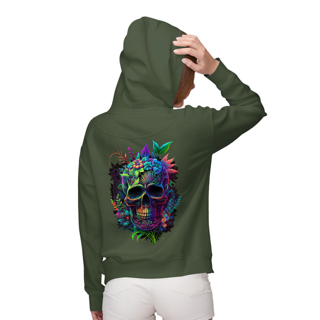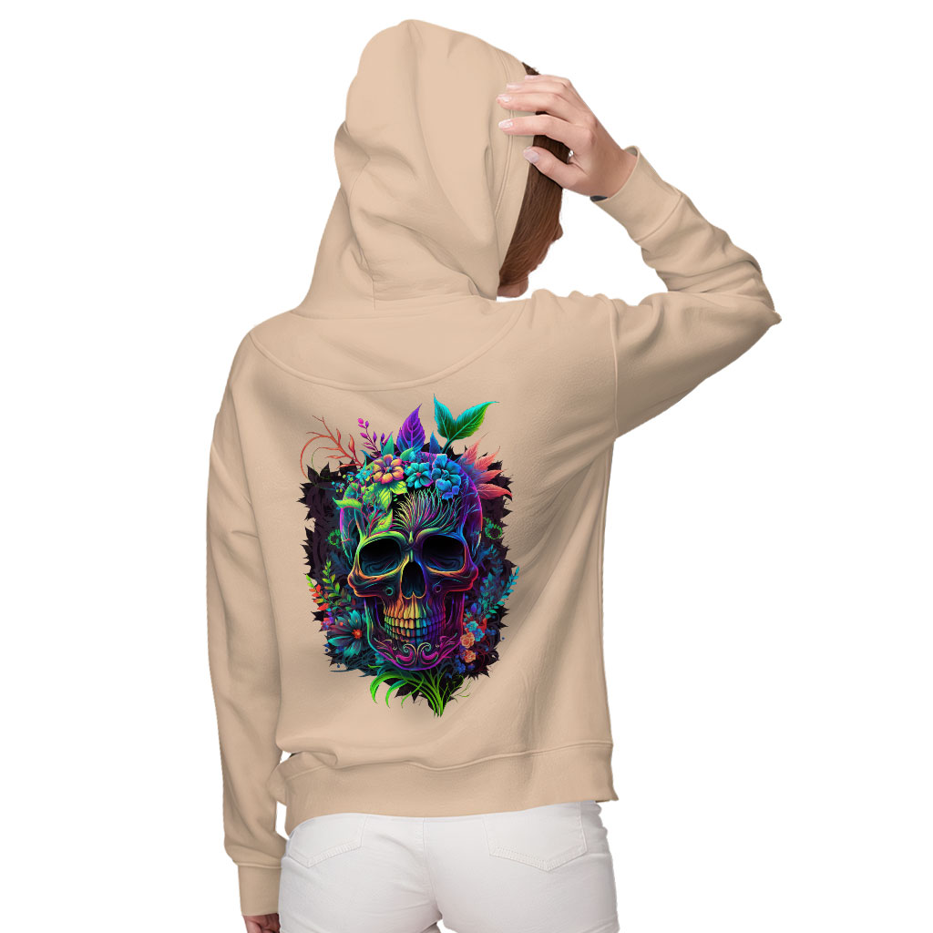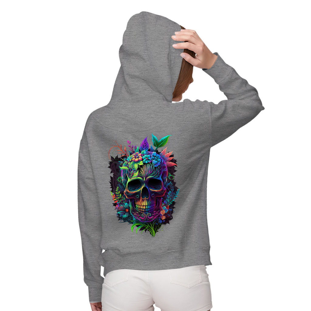 Cool Skull Women’s Zip Hoodie – Flower Print Hooded Sweatshirt – Cool Design Hoodie