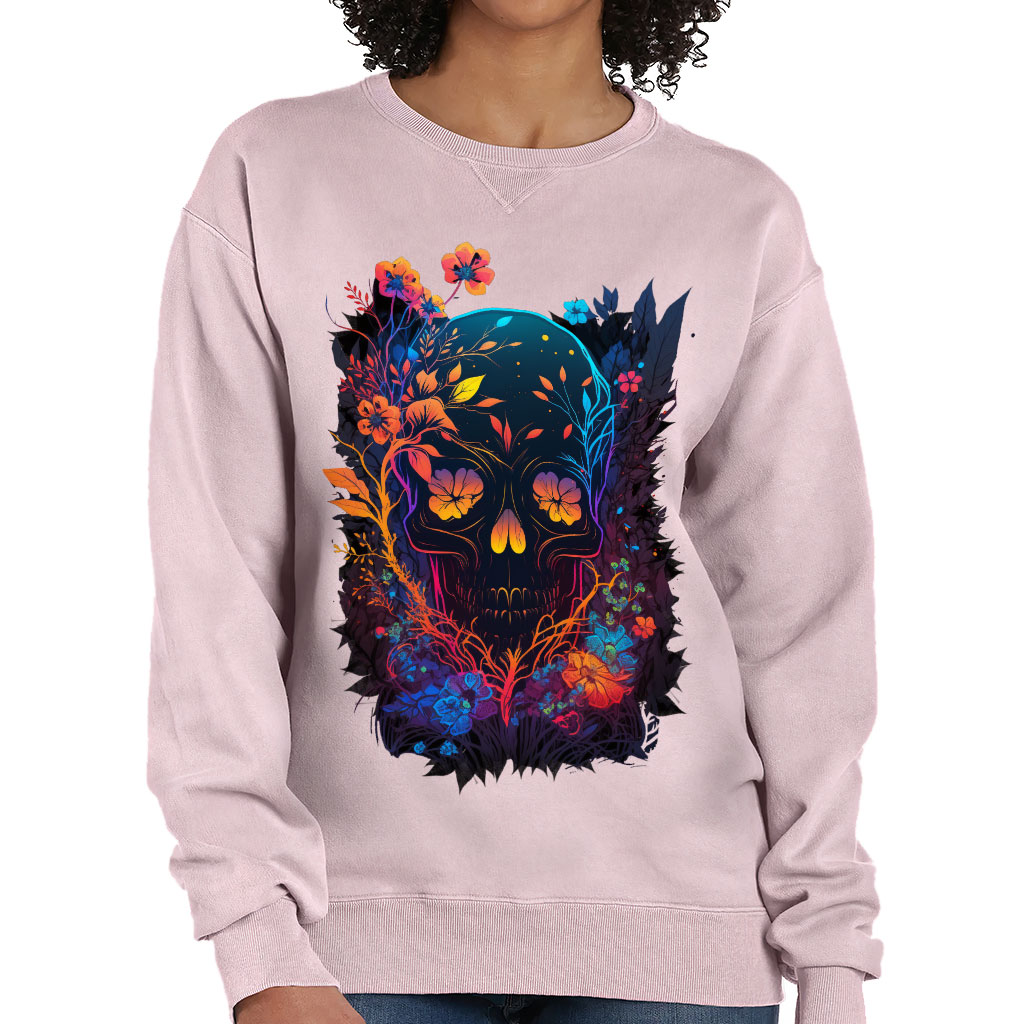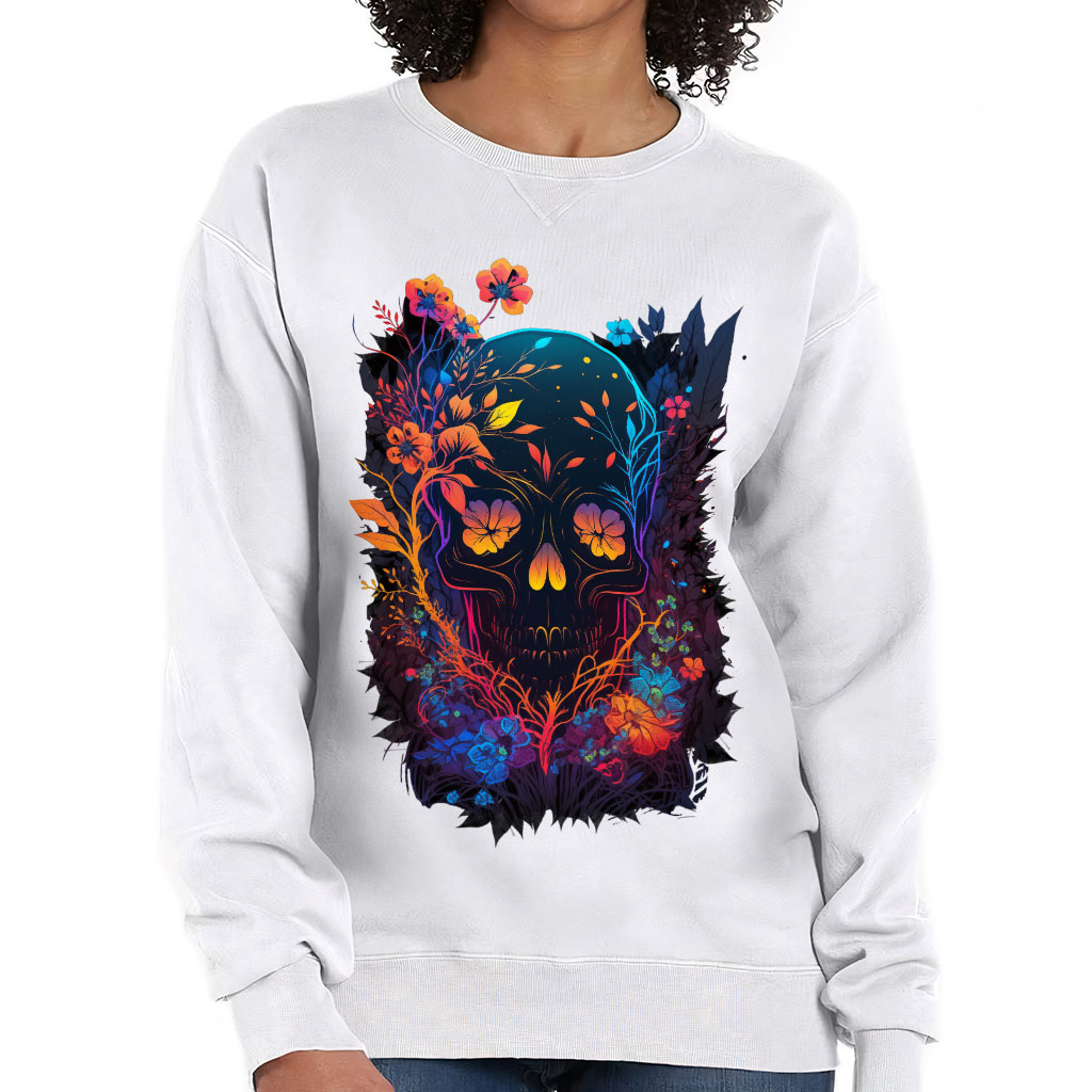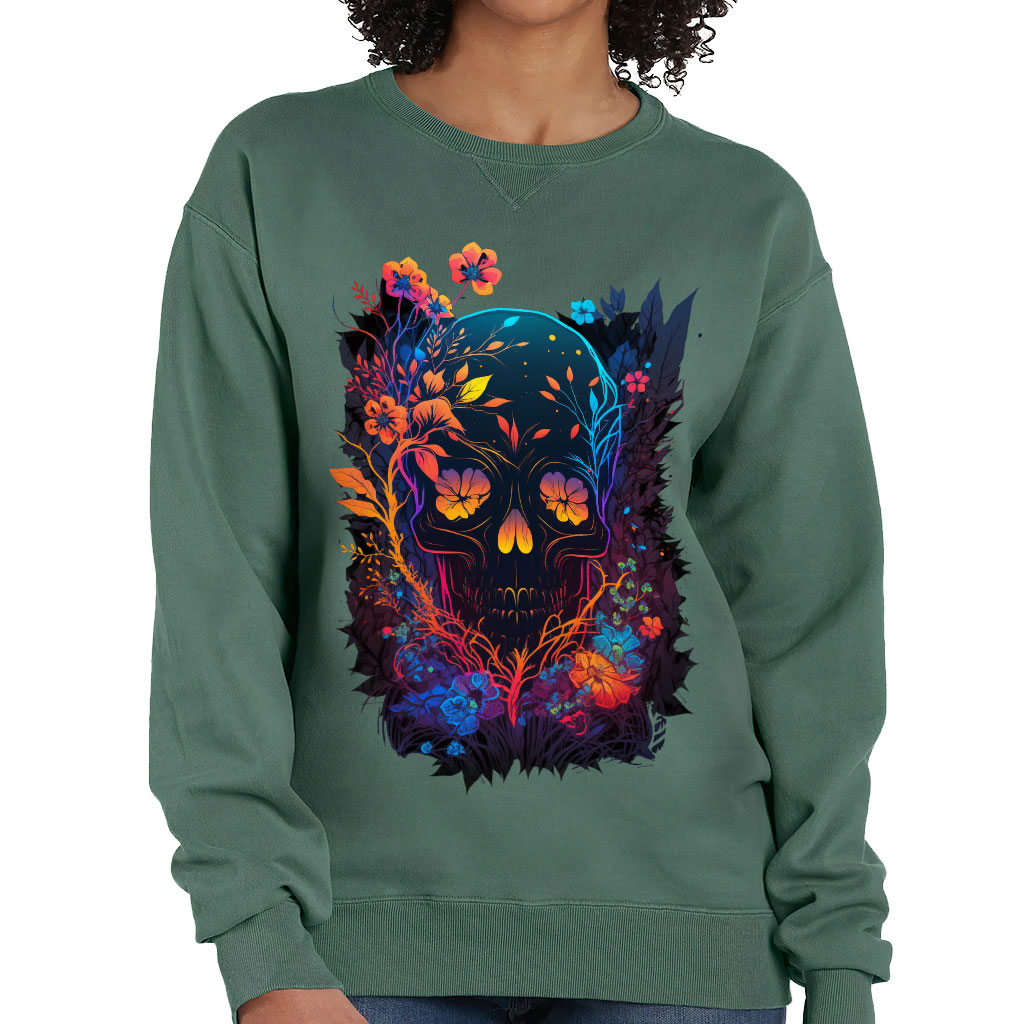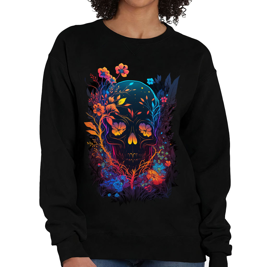 Floral Skull Crewneck Sweatshirt – Neon Women’s Sweatshirt – Graphic Art Sweatshirt