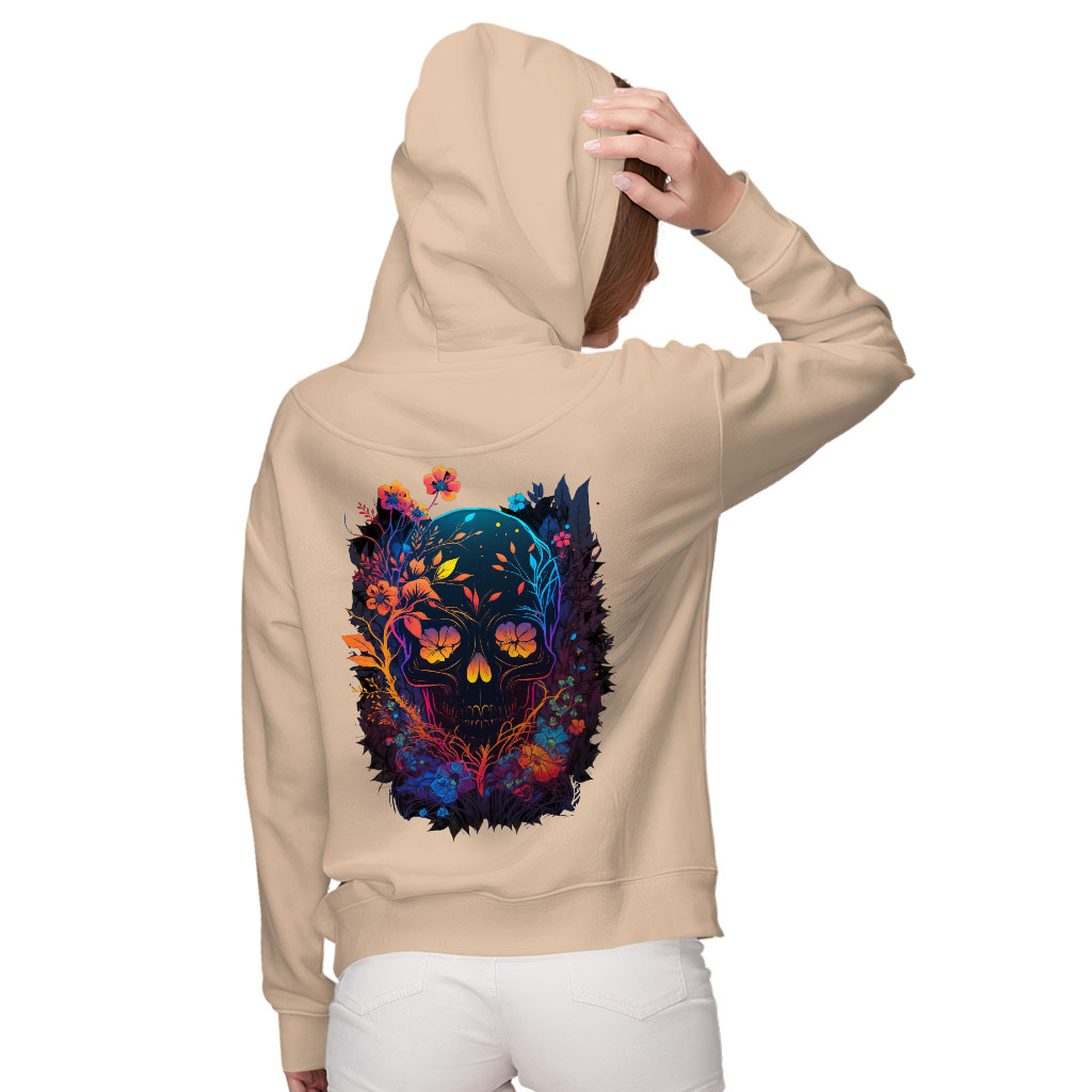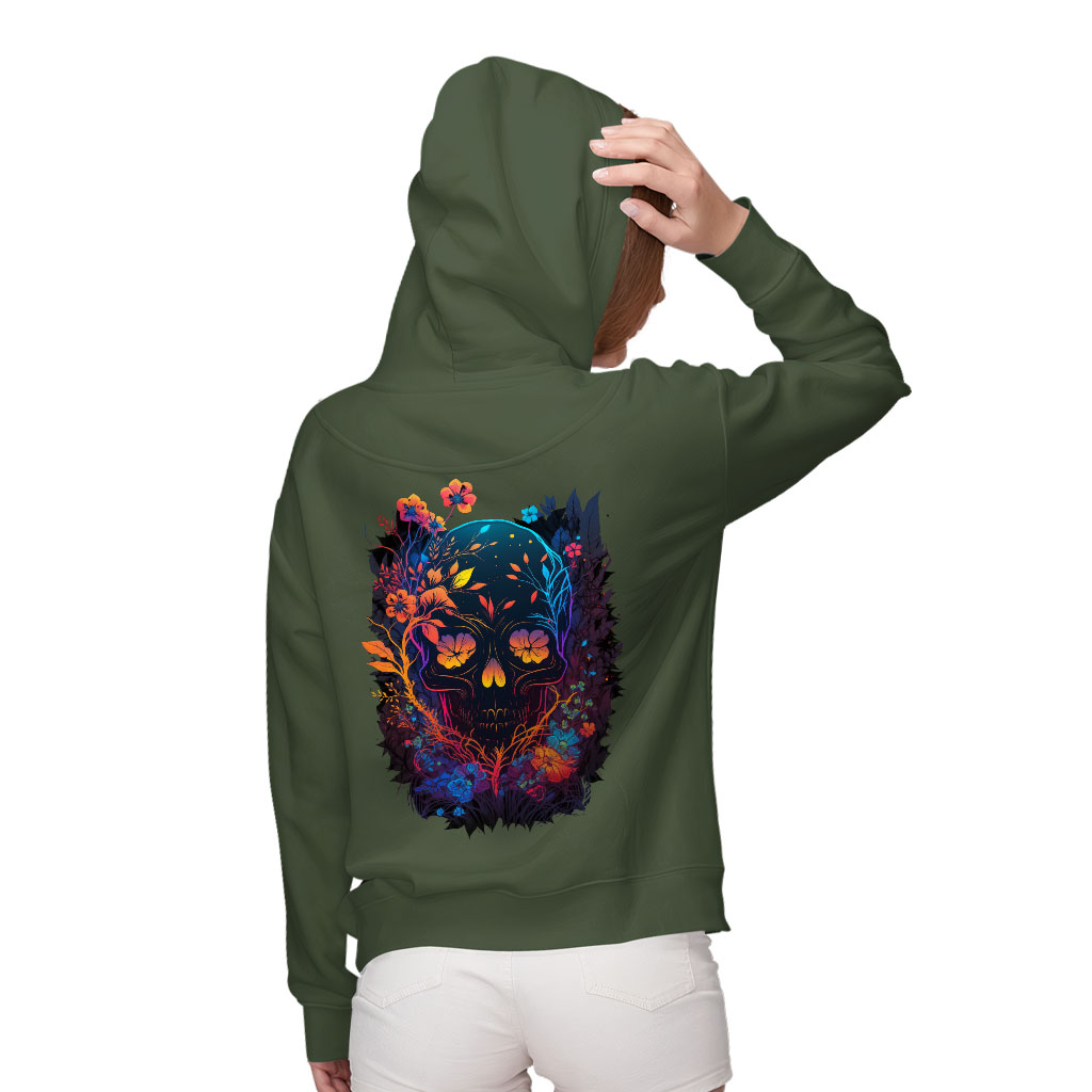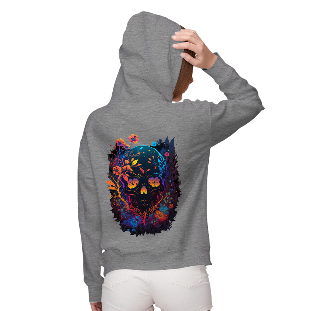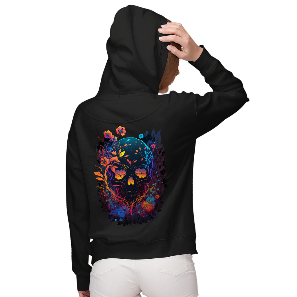 Floral Skull Women’s Zip Hoodie – Neon Hooded Sweatshirt – Graphic Art Hoodie