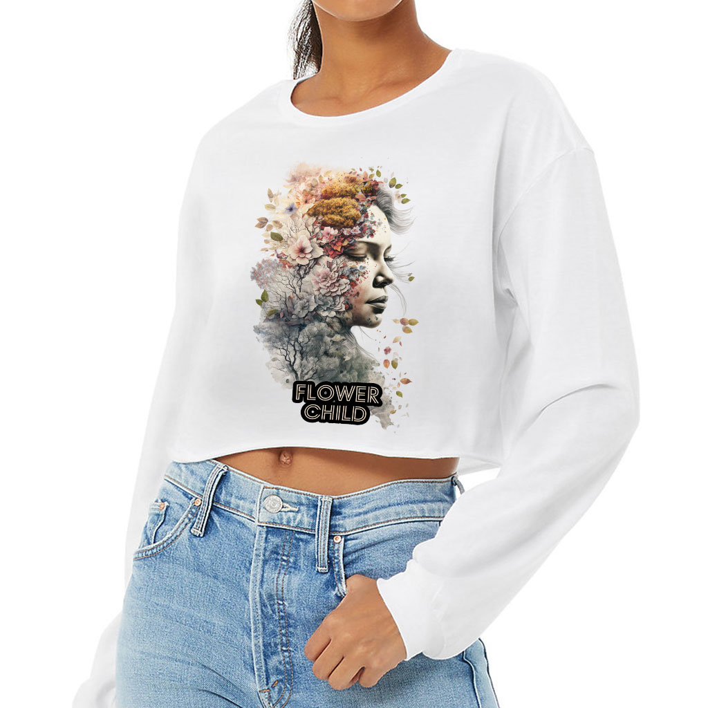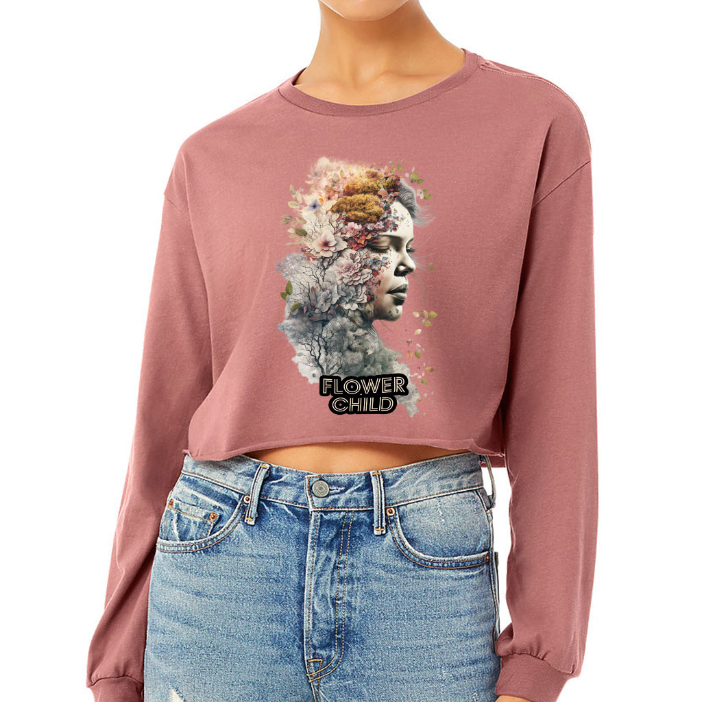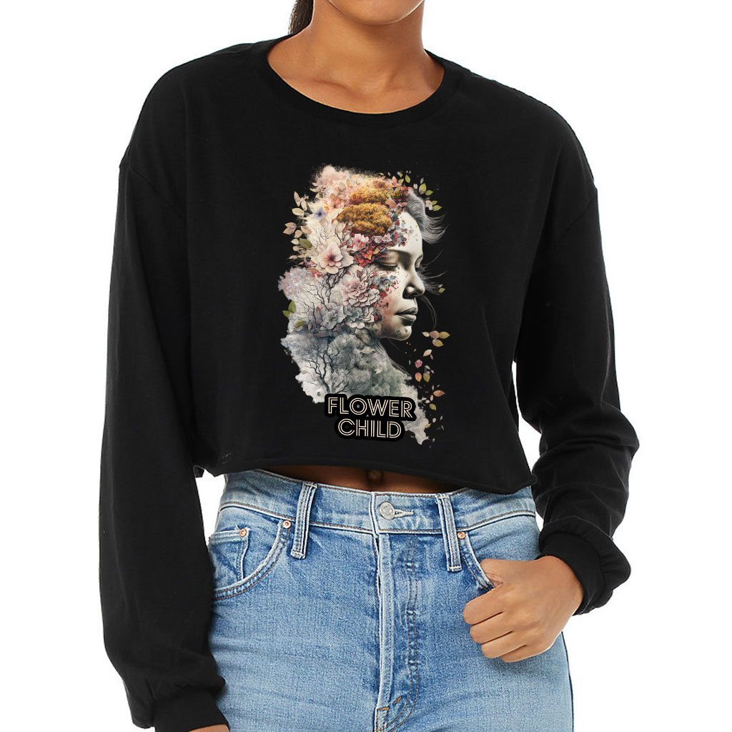 Flower Child Cropped Long Sleeve T-Shirt – Abstract Women’s T-Shirt – Floral Long Sleeve Tee