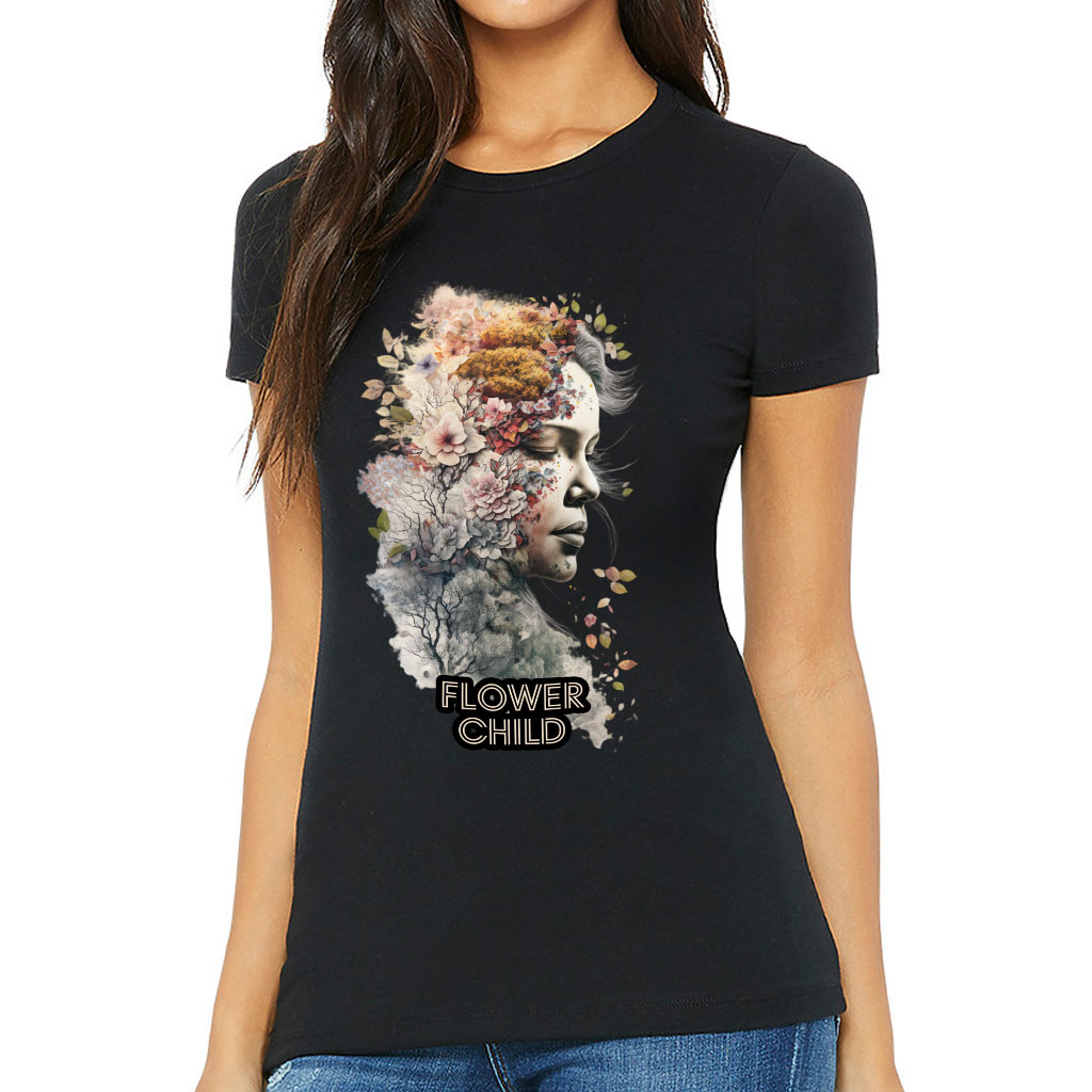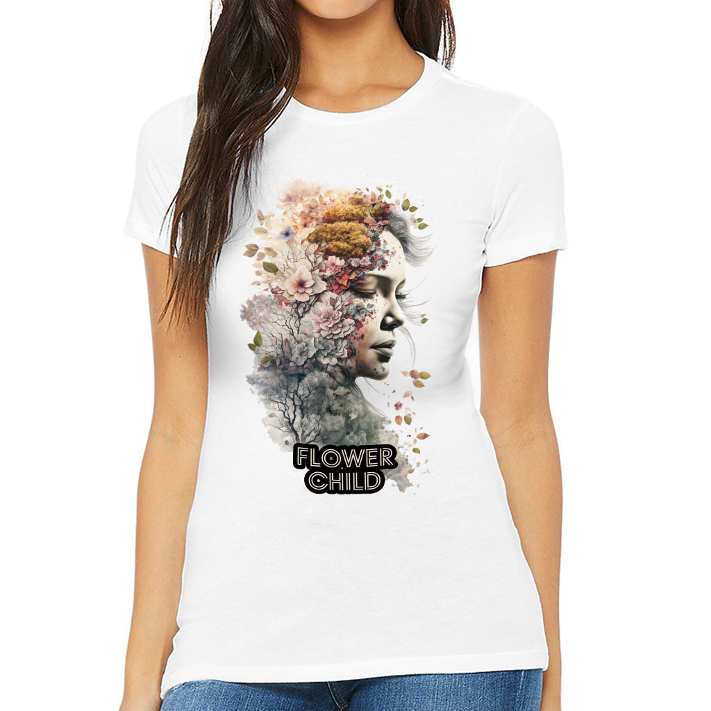 Flower Child Slim Fit T-Shirt – Abstract Women’s T-Shirt – Floral Slim Fit Tee
