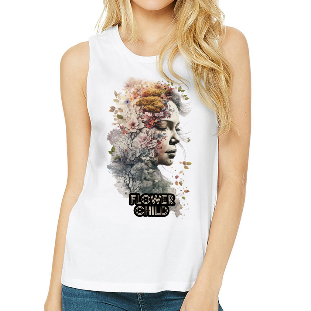 Flower Child Women’s Muscle Tank is made from high-quality materials. The soft fabric fits perfectly to the body and suits any type of figure. Our products will make your everyday comfortable, as well as add charm to your image and emphasize your style.