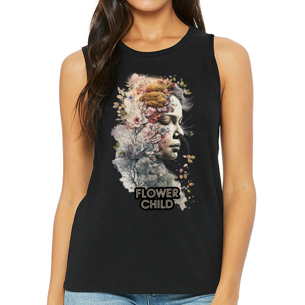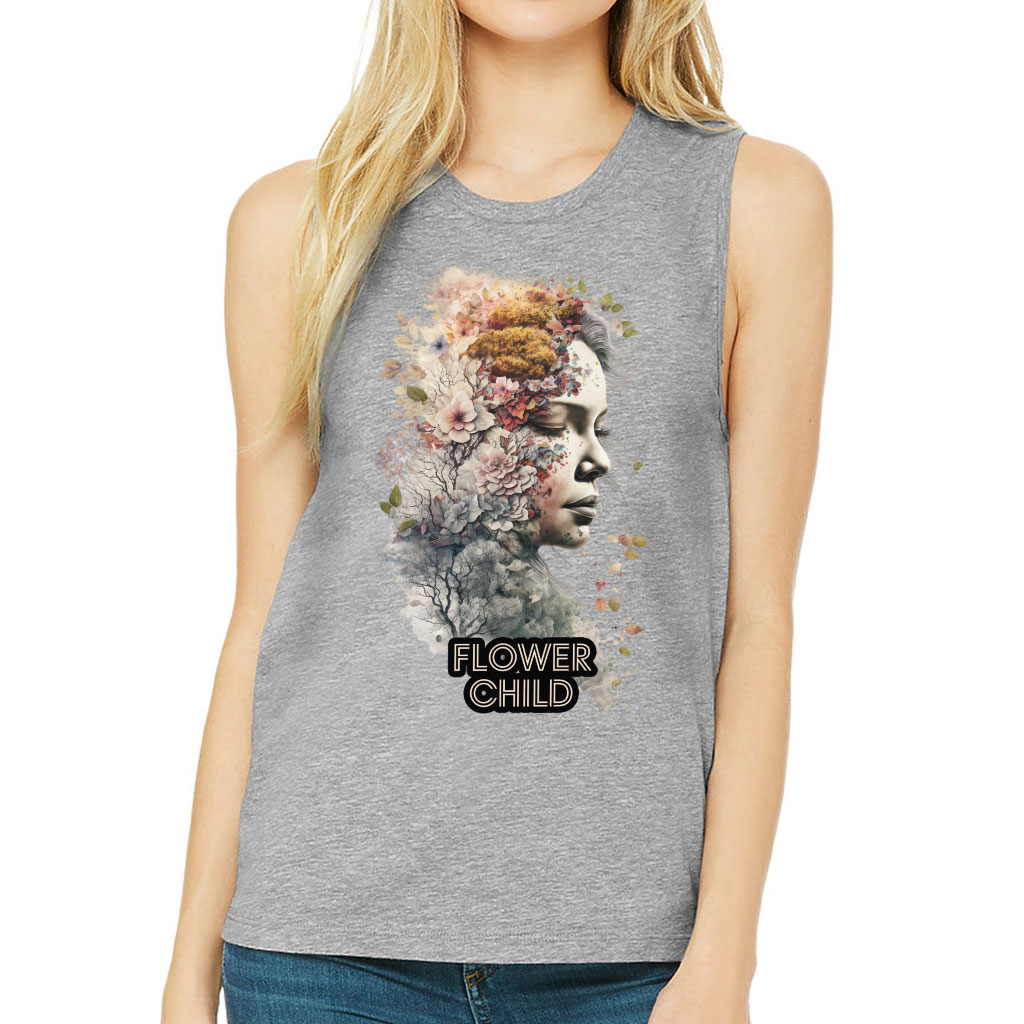 Flower Child Women’s Muscle Tank – Abstract Tank Top – Floral Workout Tank