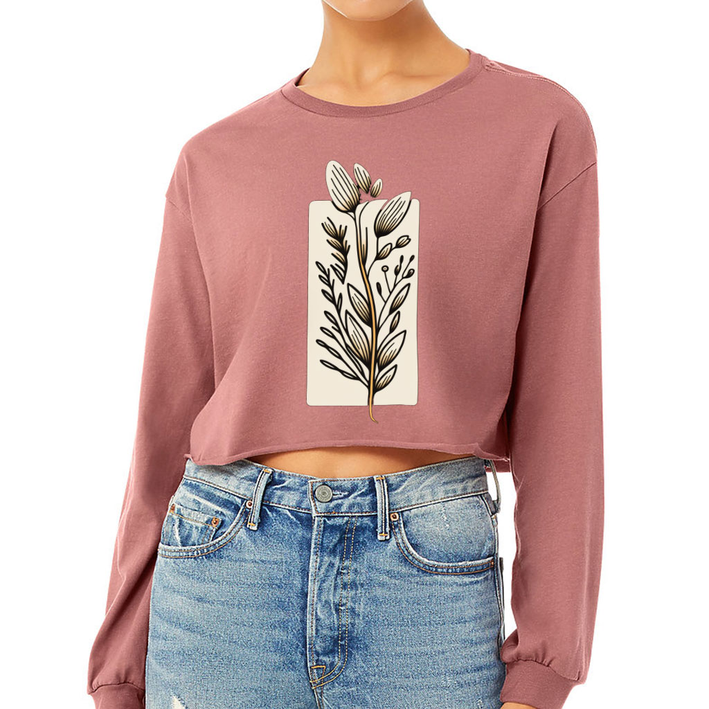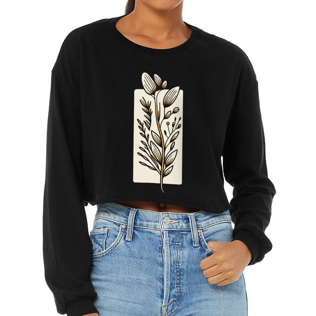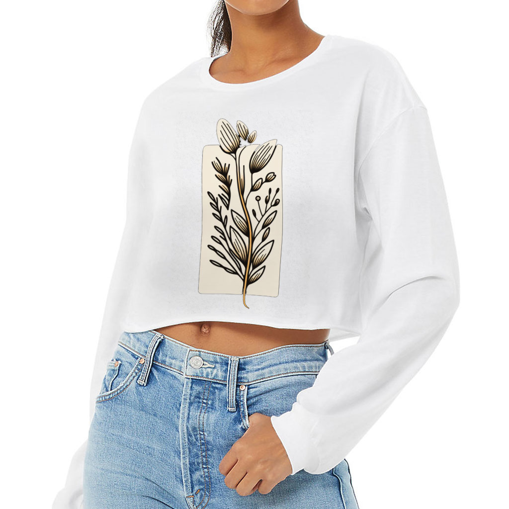 Flower Design Cropped Long Sleeve T-Shirt – Drawing Women’s T-Shirt – Printed Long Sleeve Tee