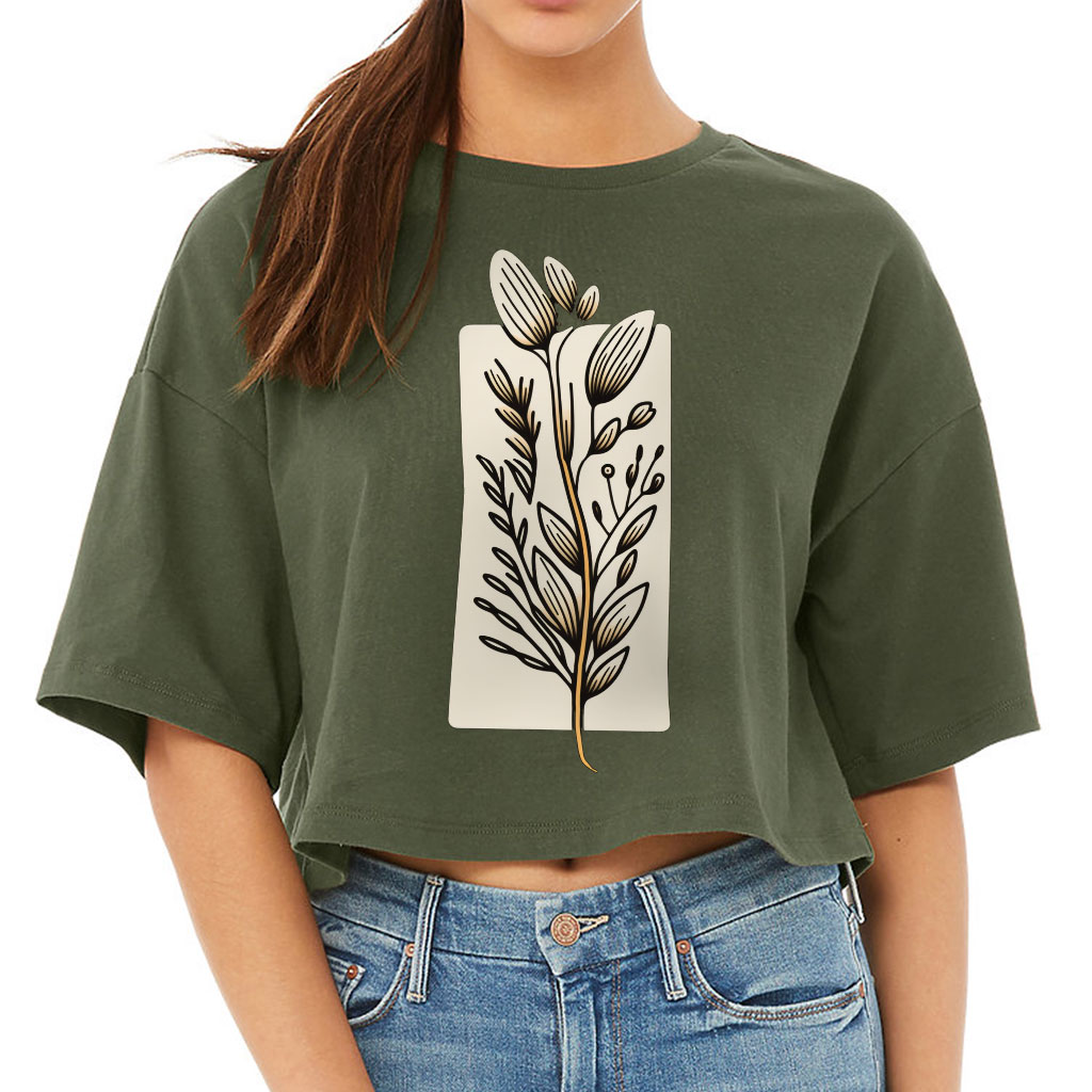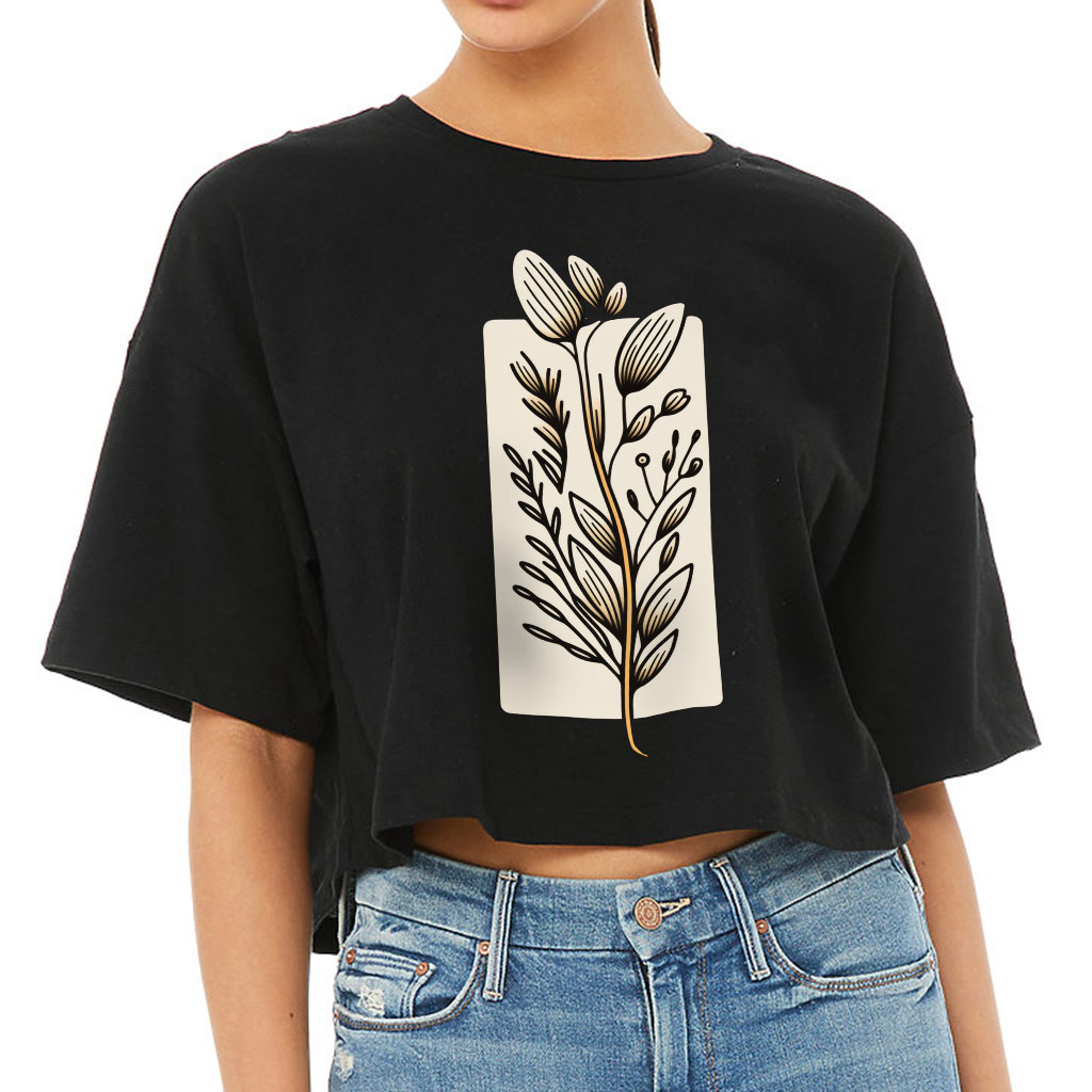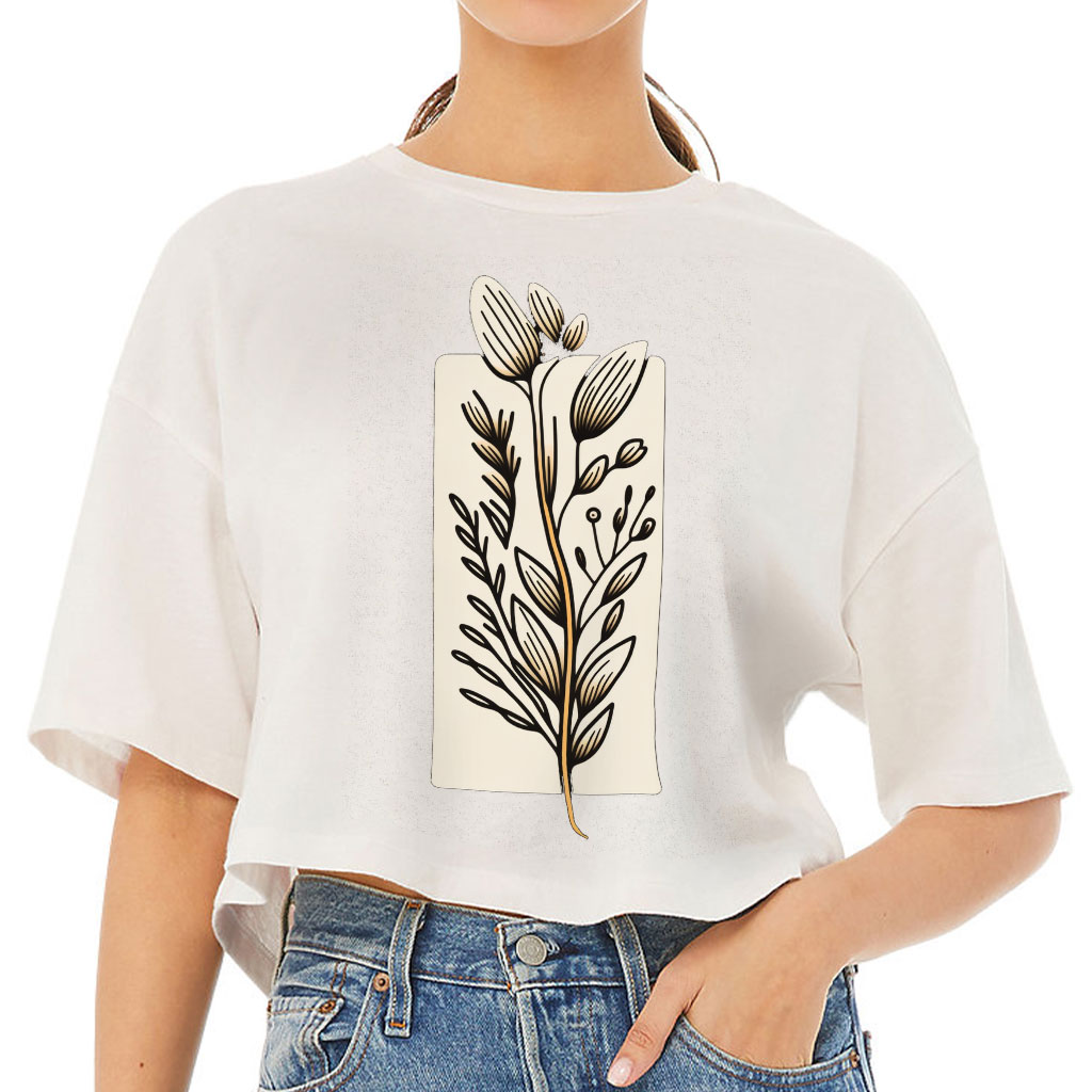 Flower Design Women’s Crop Tee Shirt – Drawing Cropped T-Shirt – Printed Crop Top
