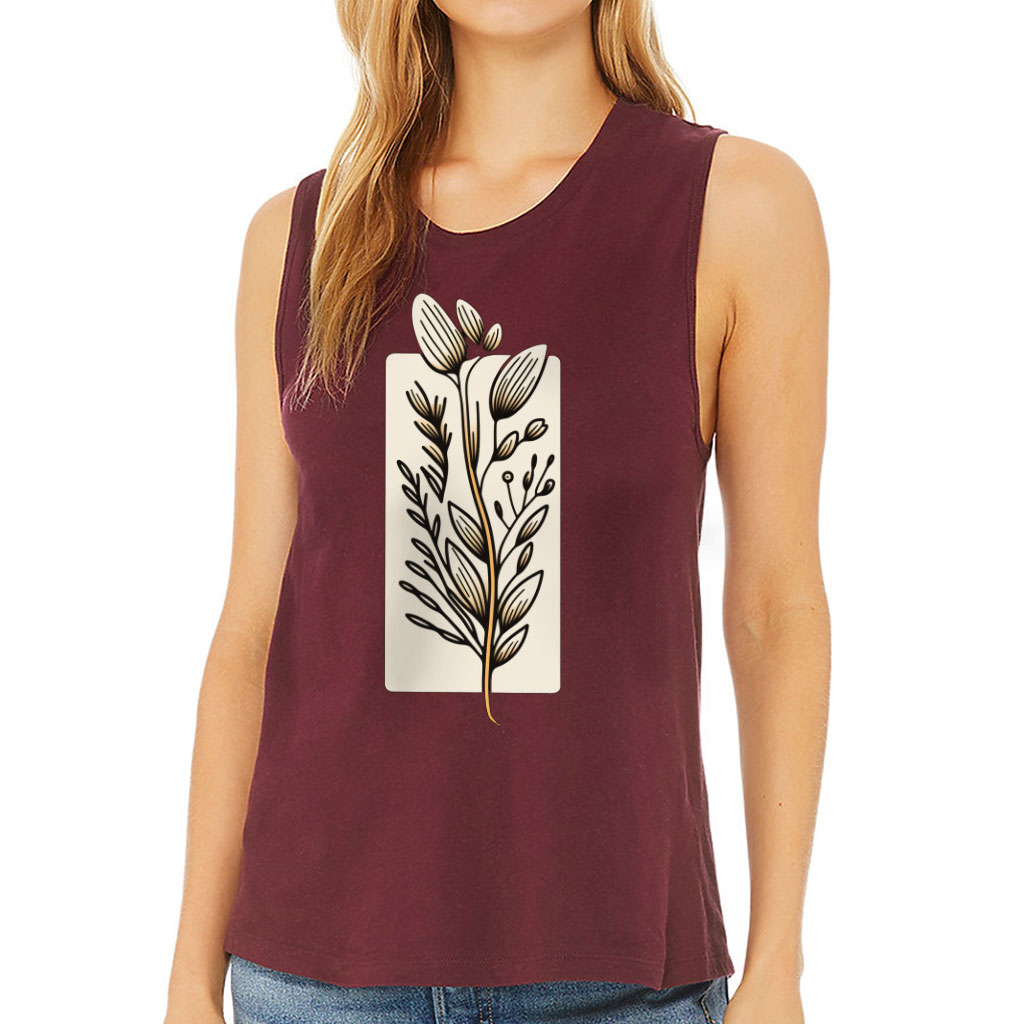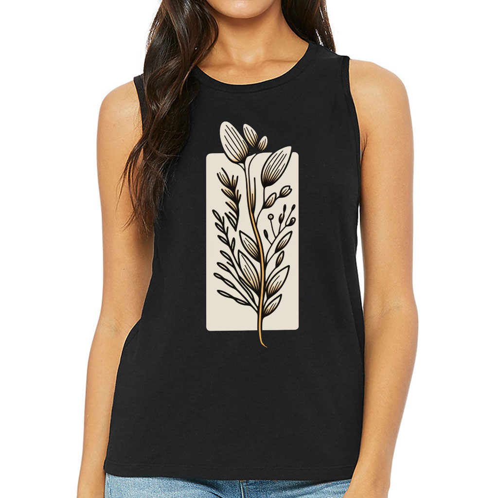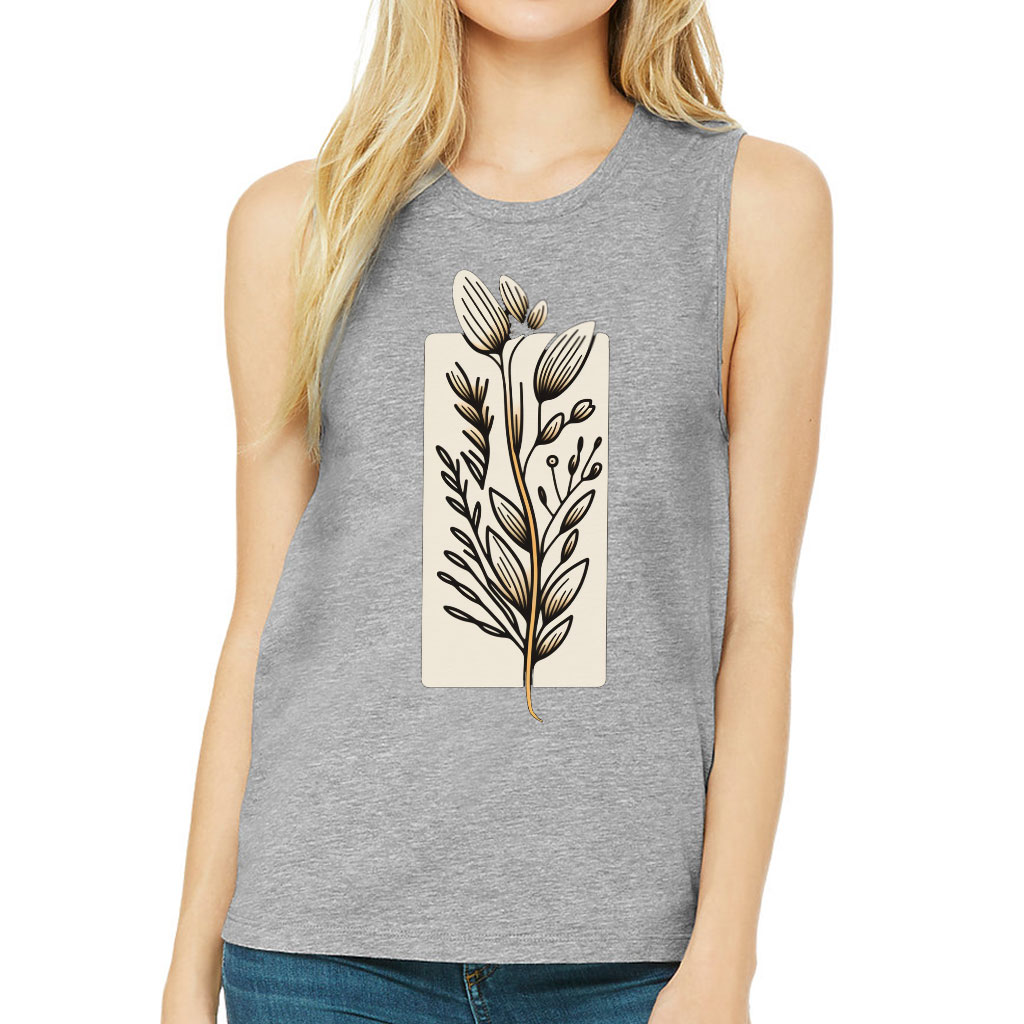 Flower Design Women’s Muscle Tank – Drawing Tank Top – Printed Workout Tank