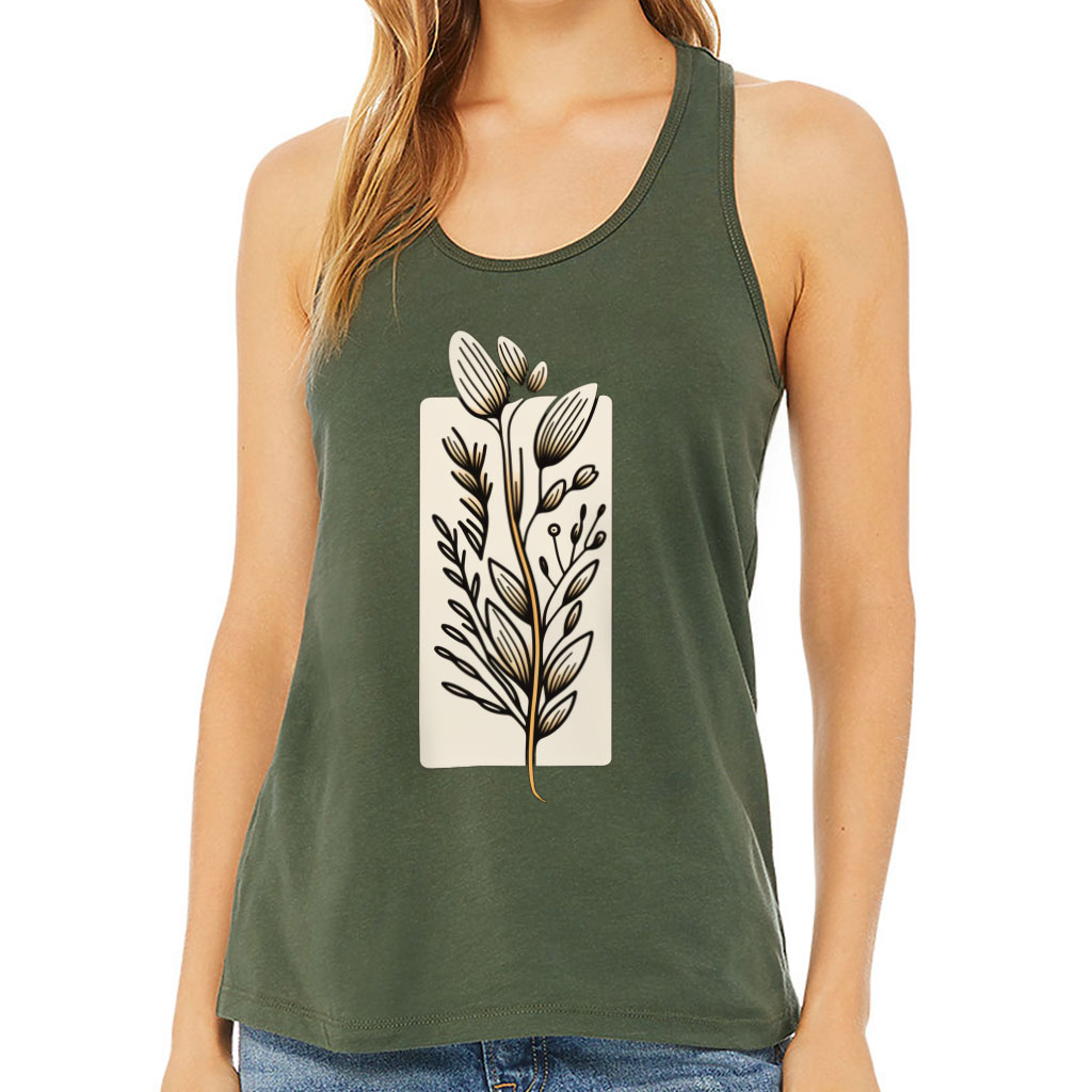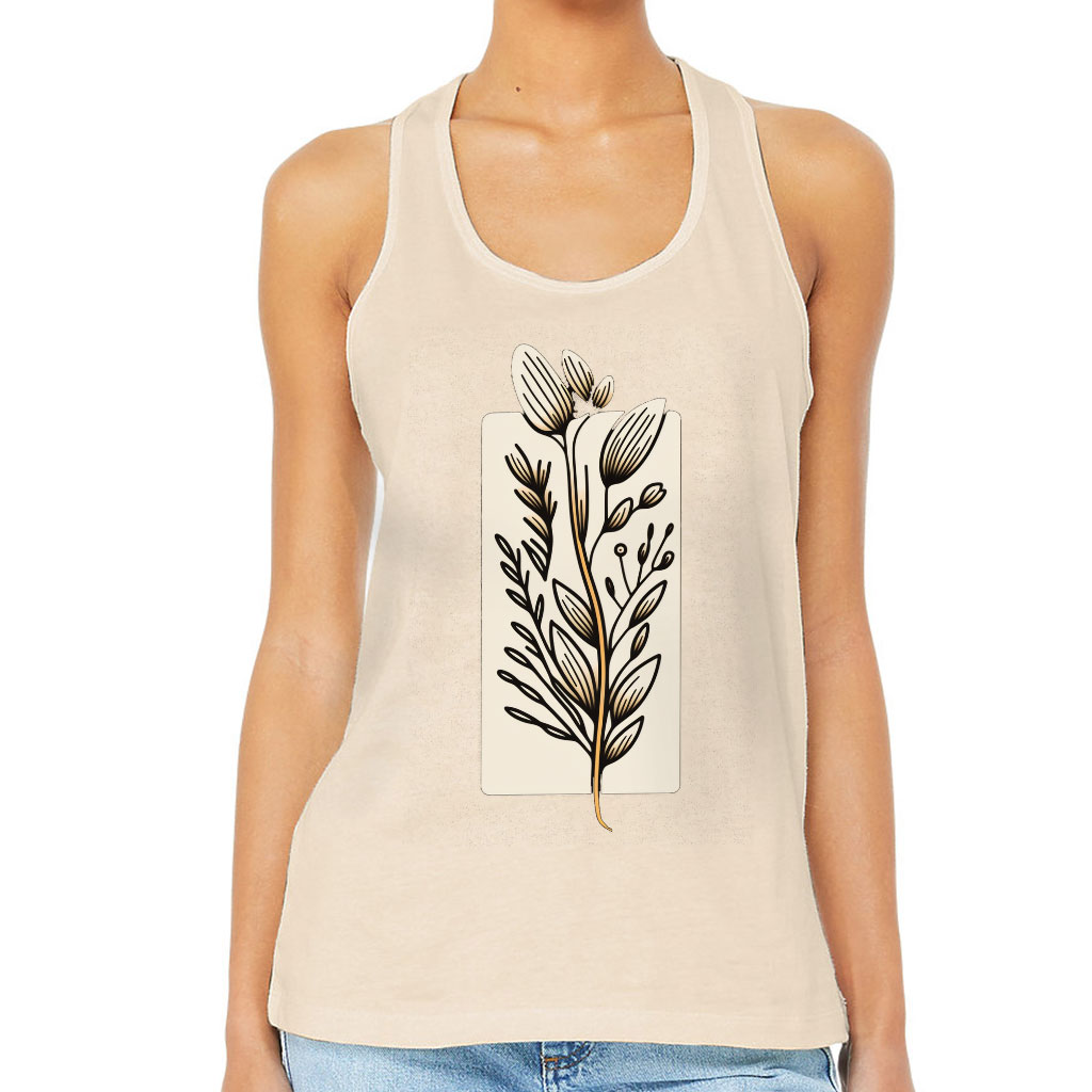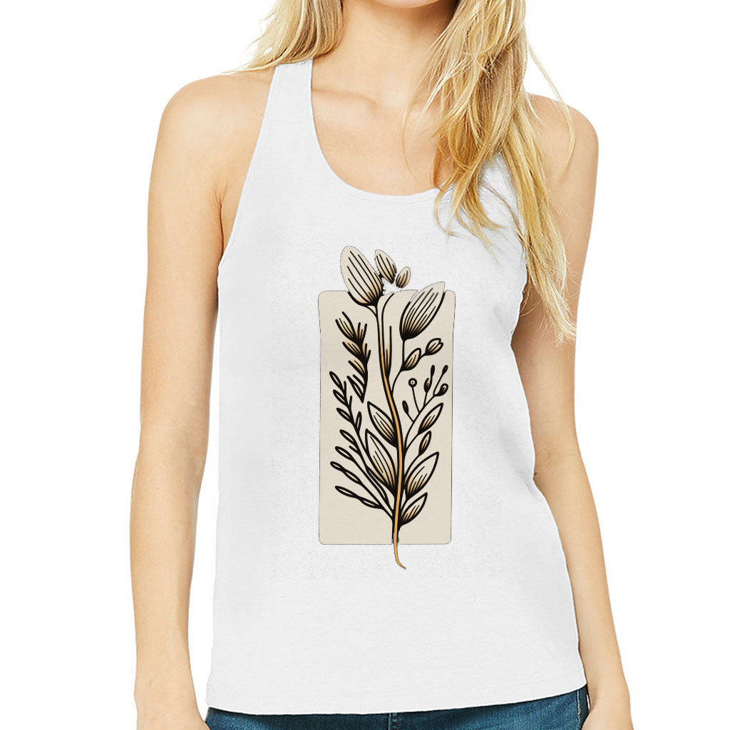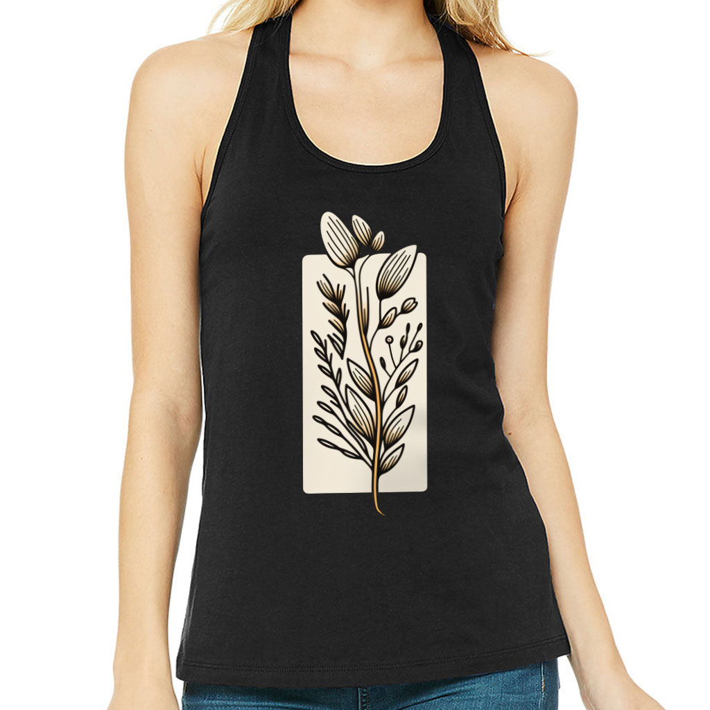 Flower Design Women’s Racerback Tank – Drawing Tank Top – Printed Workout Tank