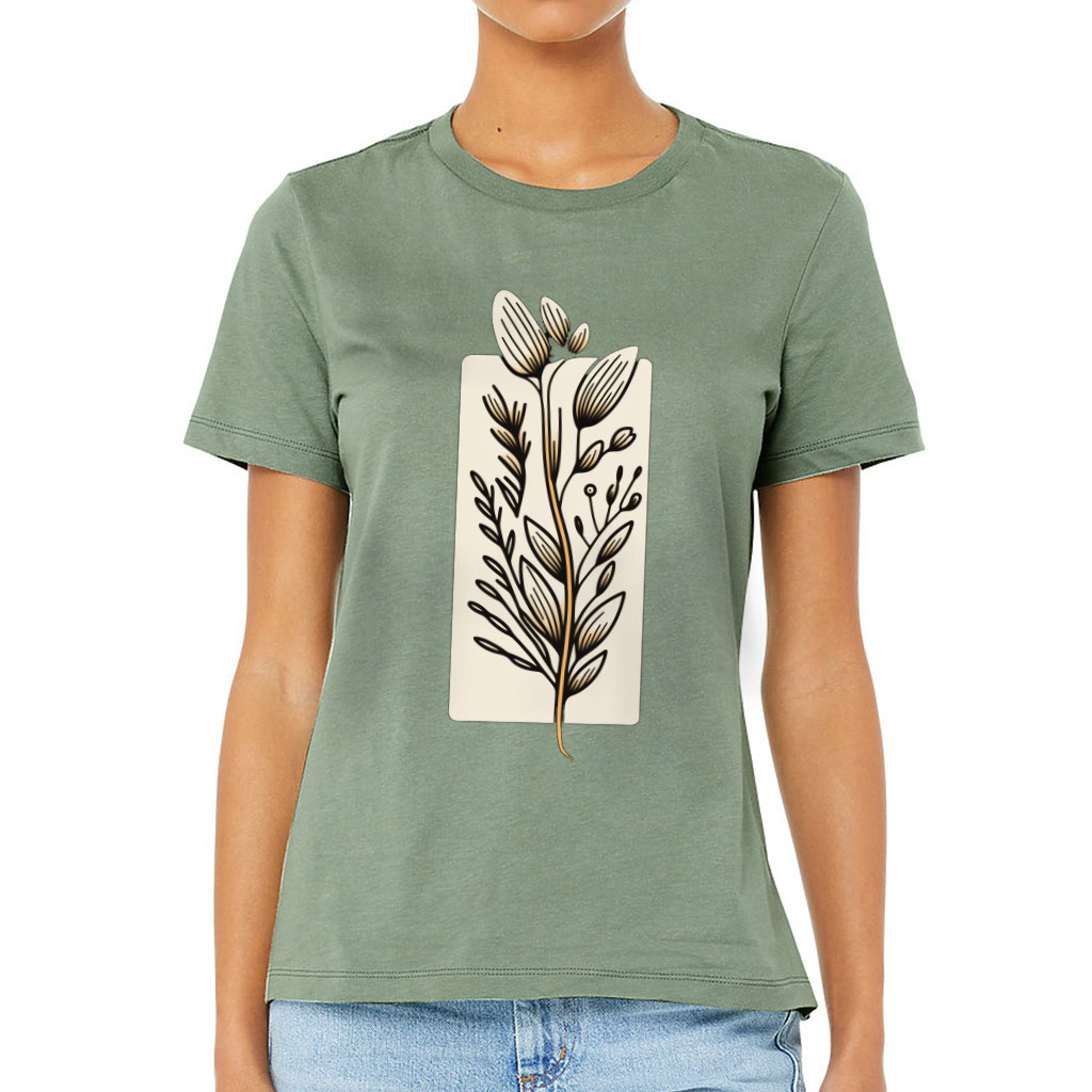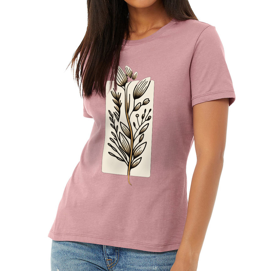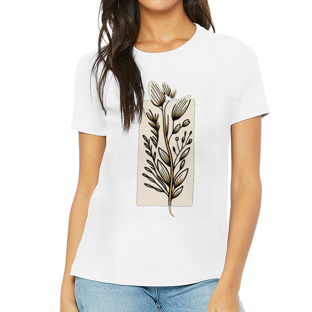 Flower Design Women’s T-Shirt – Drawing T-Shirt – Printed Relaxed Tee