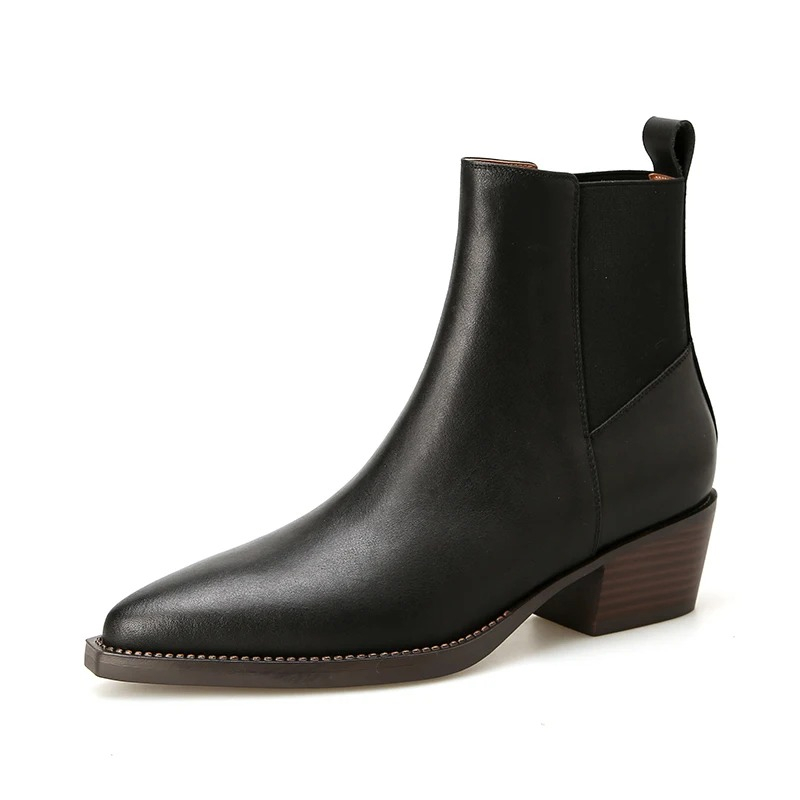 These women’s ankle boots are the perfect fusion of fashion, comfort, and durability. Crafted from high-quality genuine cow leather, they offer a timeless design that fits seamlessly into any wardrobe. With a chic pointed toe, sturdy 5 cm chunky heel, and an elastic band closure for easy wear, these boots will quickly become your go-to footwear for winter. Whether you’re dressing for work, a casual outing, or an evening event, these boots provide both style and comfort, allowing you to walk with confidence all day long.