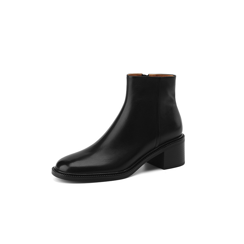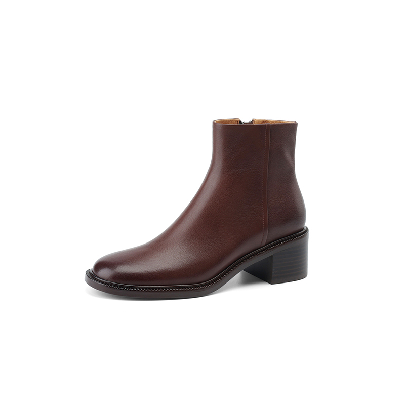The combination of genuine cow leather, a classic round toe, and a high chunky heel creates an unparalleled mix of durability and sophistication. The short plush lining keeps your feet warm without adding bulk, while the zipper detail adds both practicality and a modern touch. These versatile boots seamlessly blend retro charm with contemporary style, making them a standout choice for any occasion.