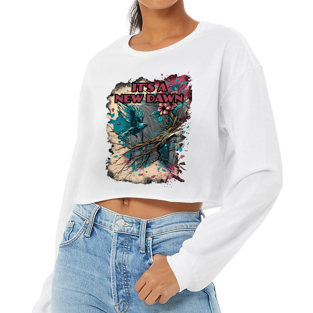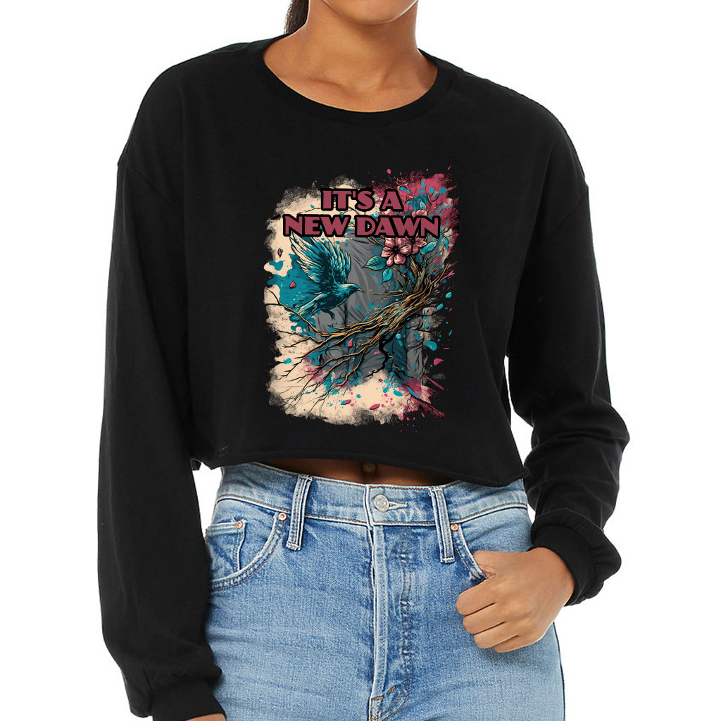 It’s a New Dawn Cropped Long Sleeve T-Shirt – Bird Women’s T-Shirt – Graphic Art Long Sleeve Tee