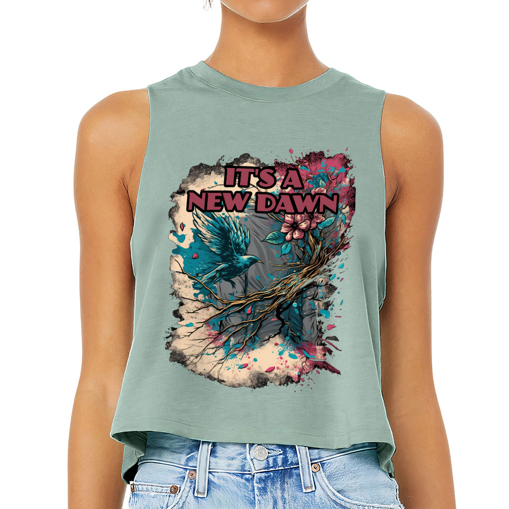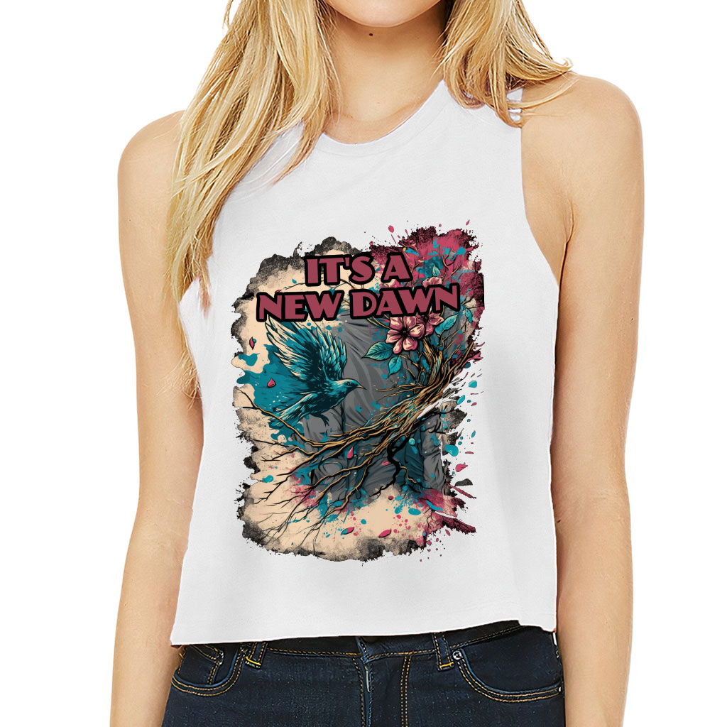 It’s a New Dawn Racerback Cropped Tank – Bird Women’s Tank – Graphic Art Tank Top