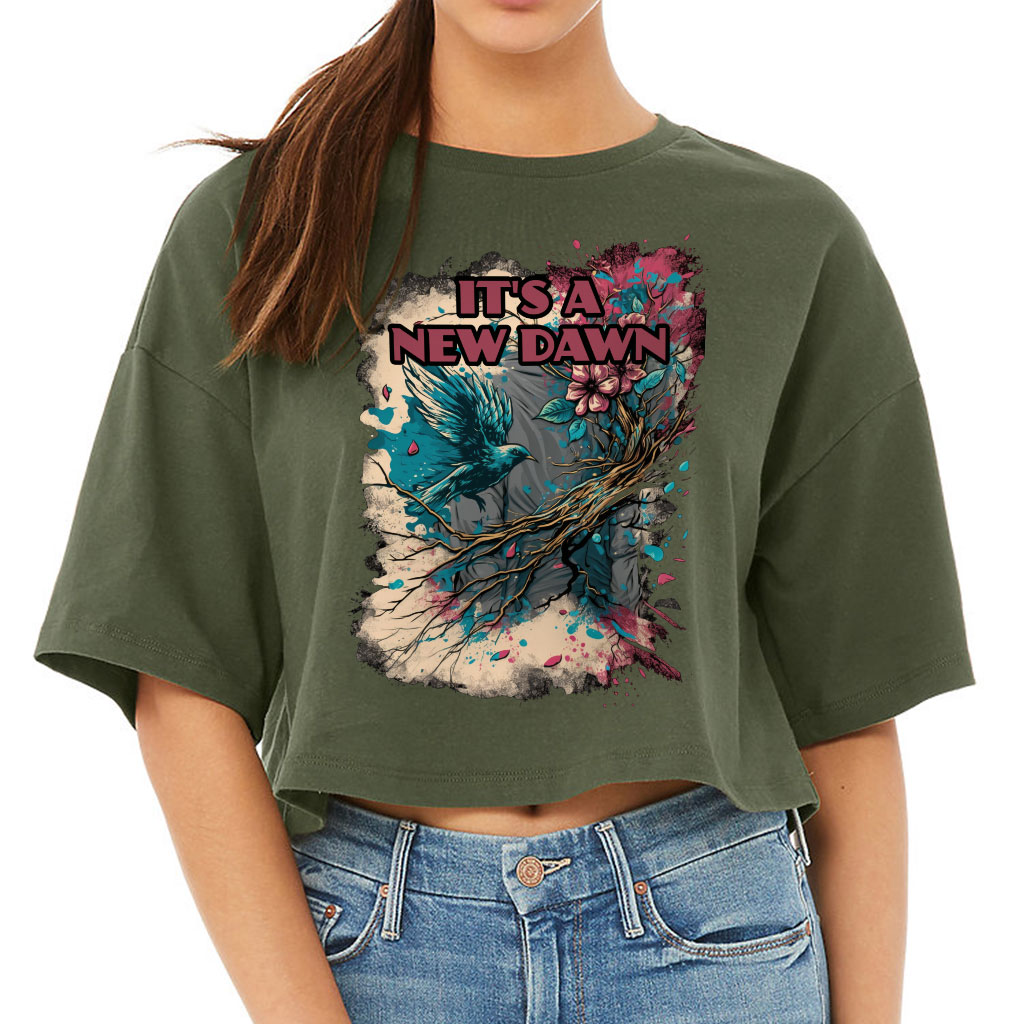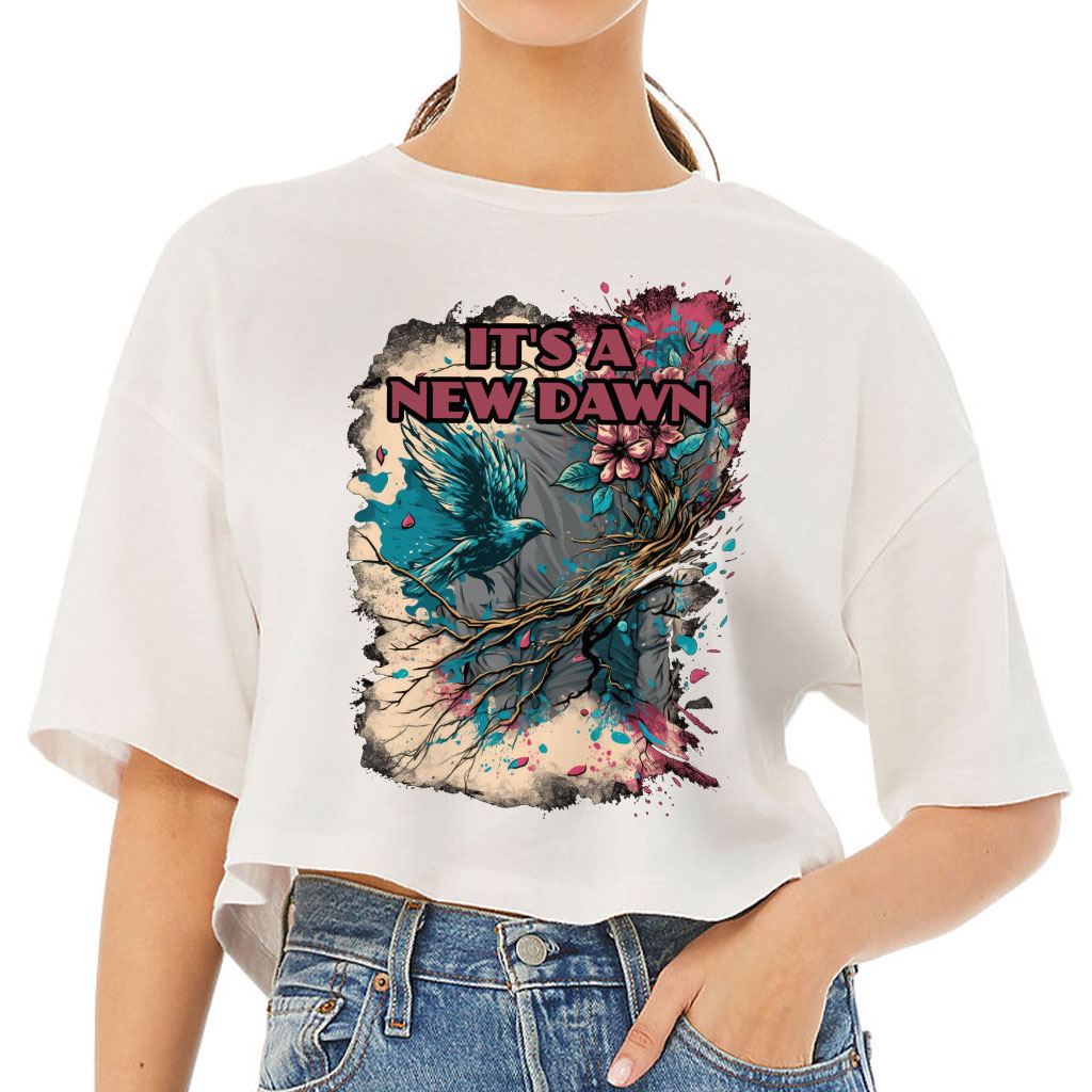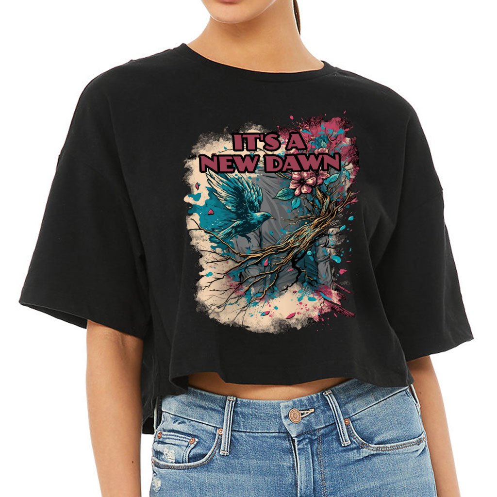 It’s a New Dawn Women’s Crop Tee Shirt – Bird Cropped T-Shirt – Graphic Art Crop Top