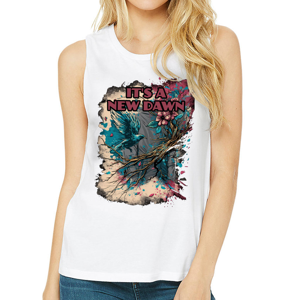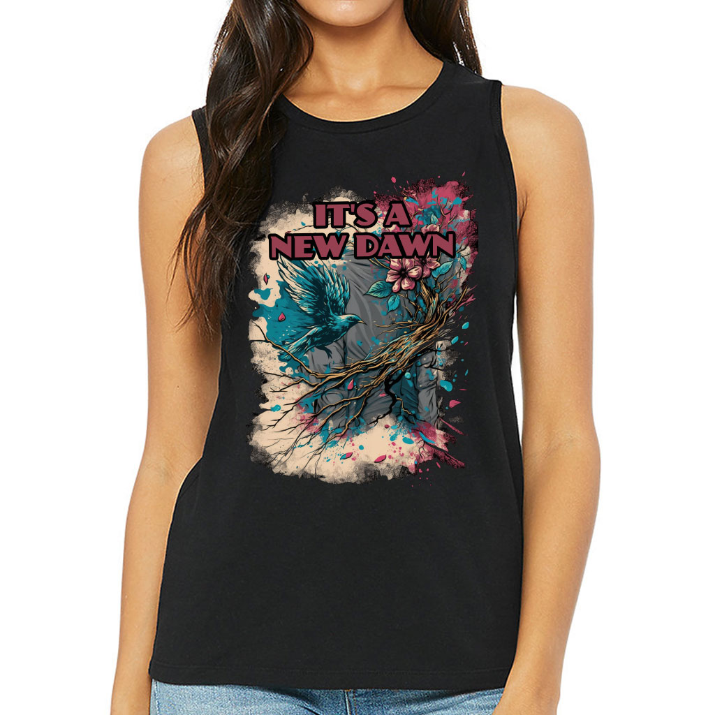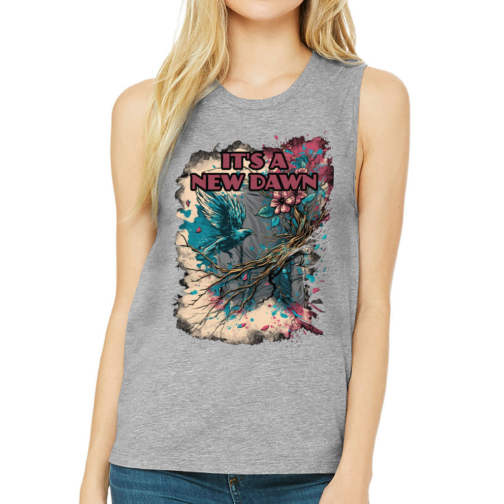 It’s a New Dawn Women’s Muscle Tank – Bird Tank Top – Graphic Art Workout Tank