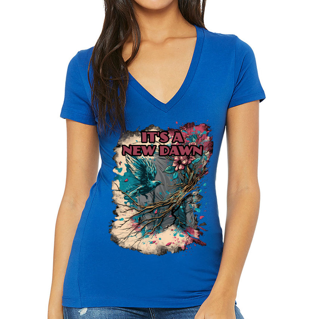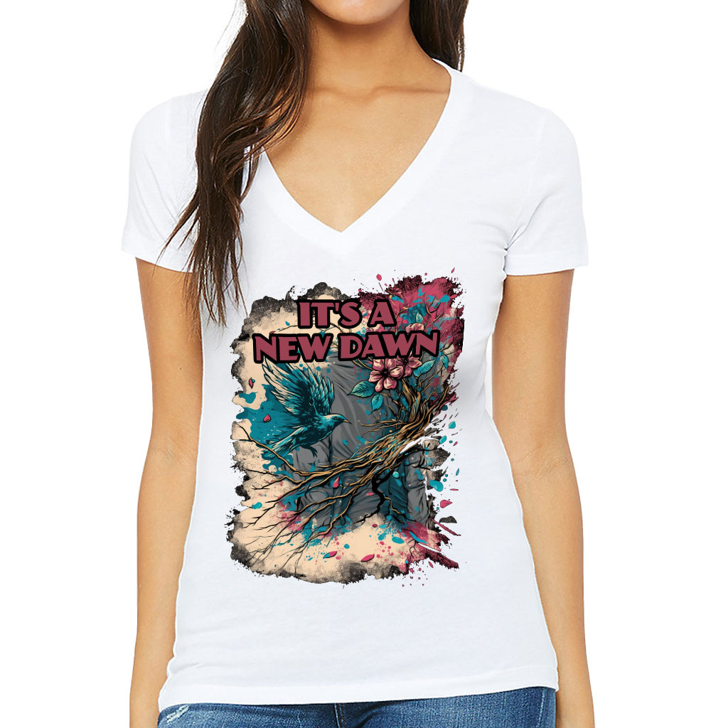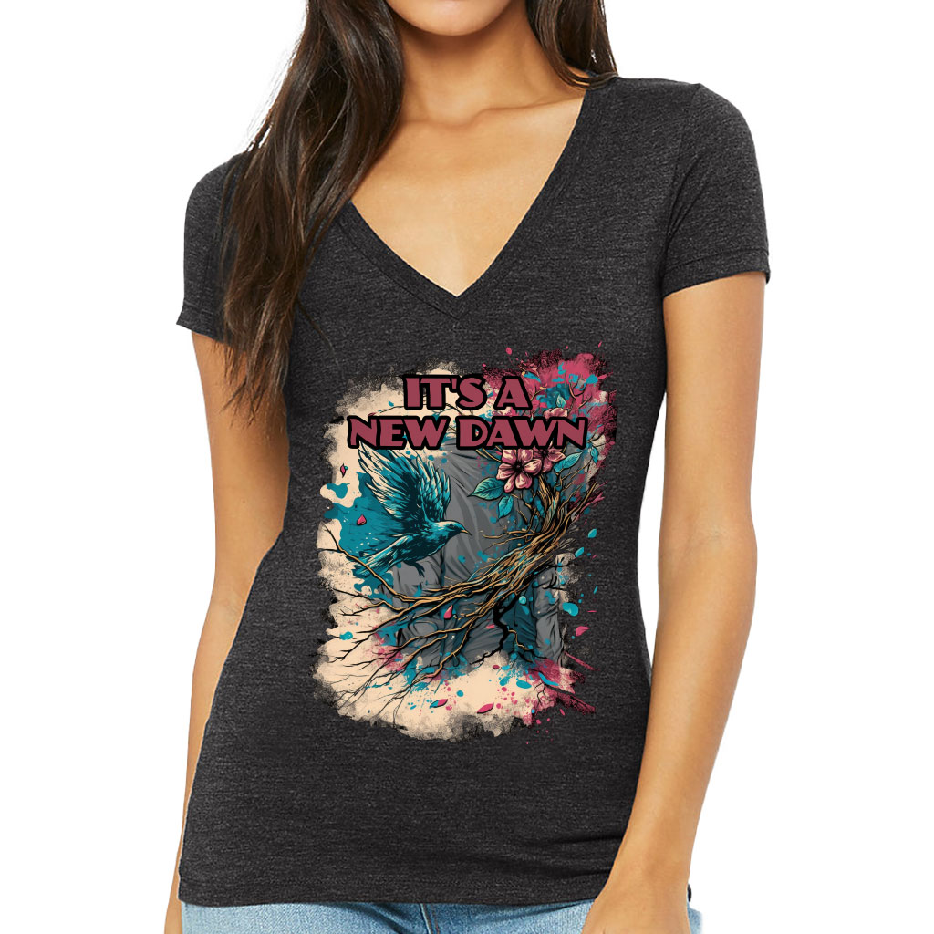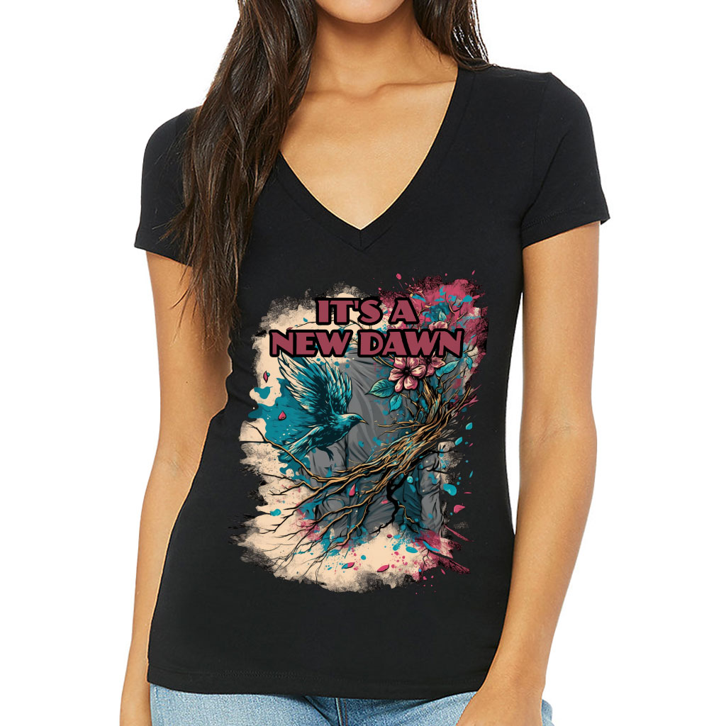 It’s a New Dawn Women’s V-Neck T-Shirt – Bird V-Neck Tee – Graphic Art T-Shirt