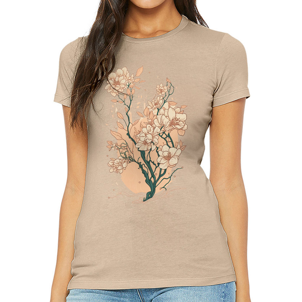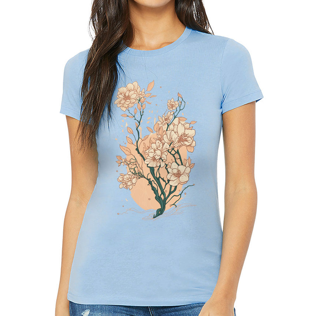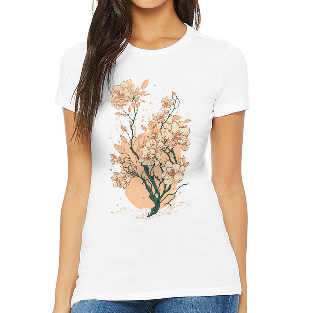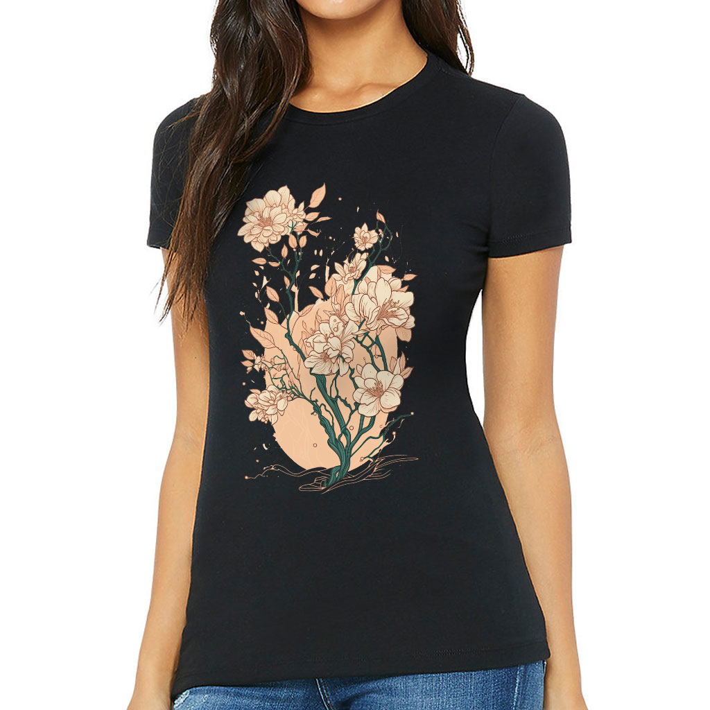 Japanese Flower Slim Fit T-Shirt – Printed Women’s T-Shirt – Cute Slim Fit Tee