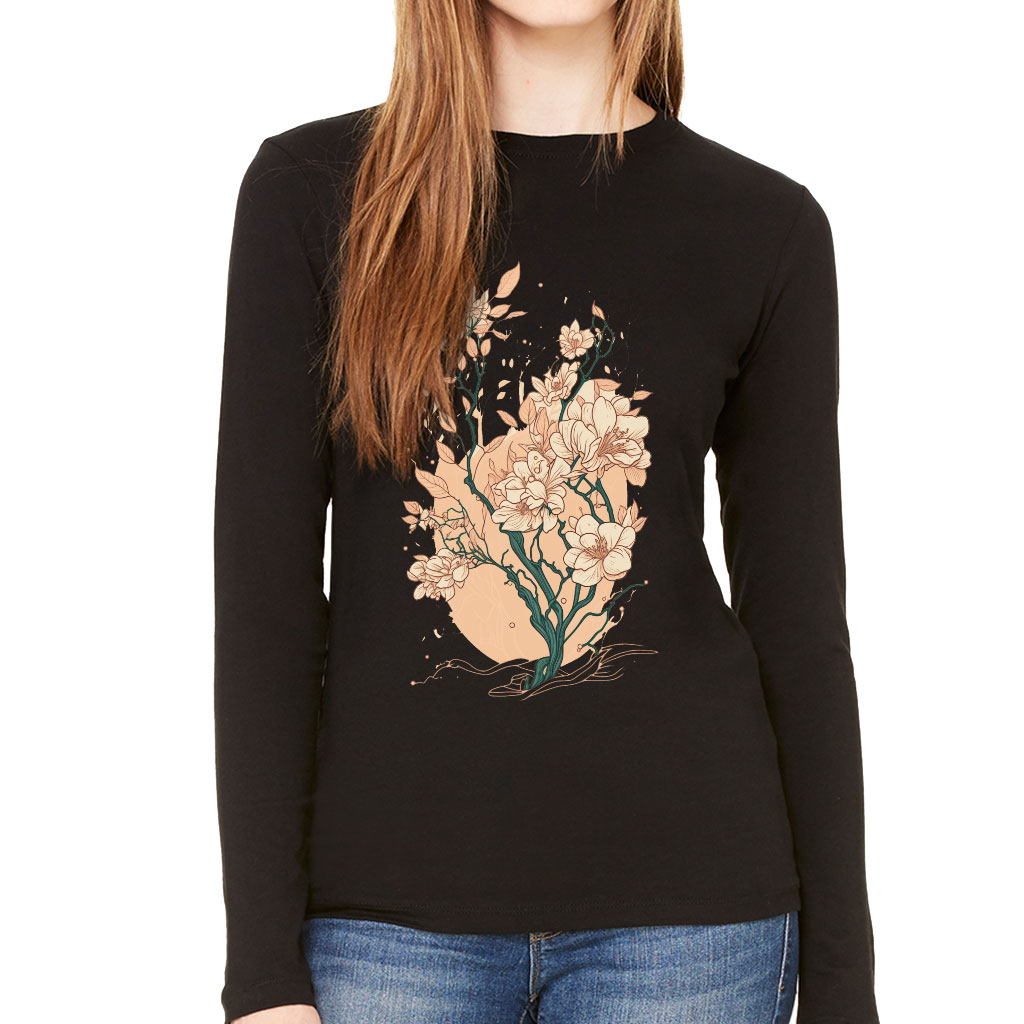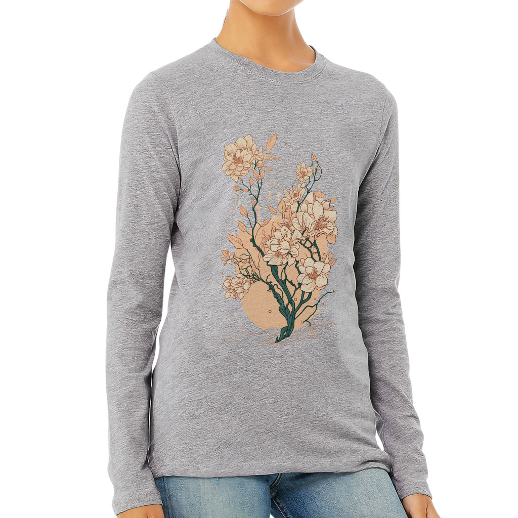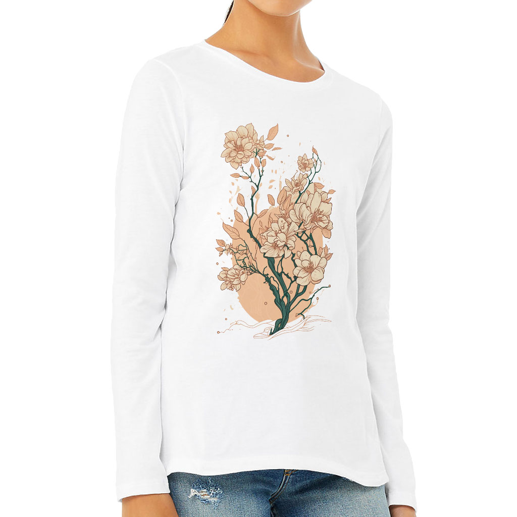 Japanese Flower Women’s Long Sleeve T-Shirt – Printed Long Sleeve Tee – Cute T-Shirt