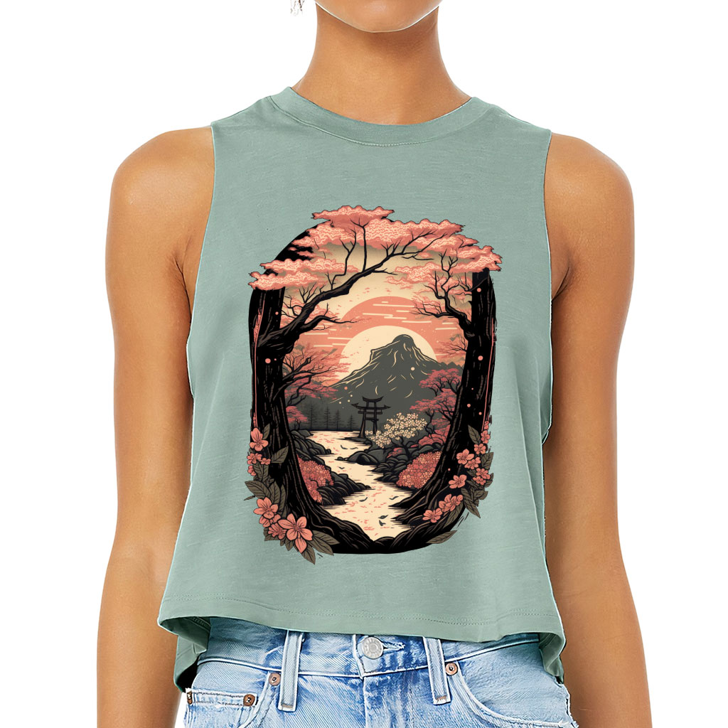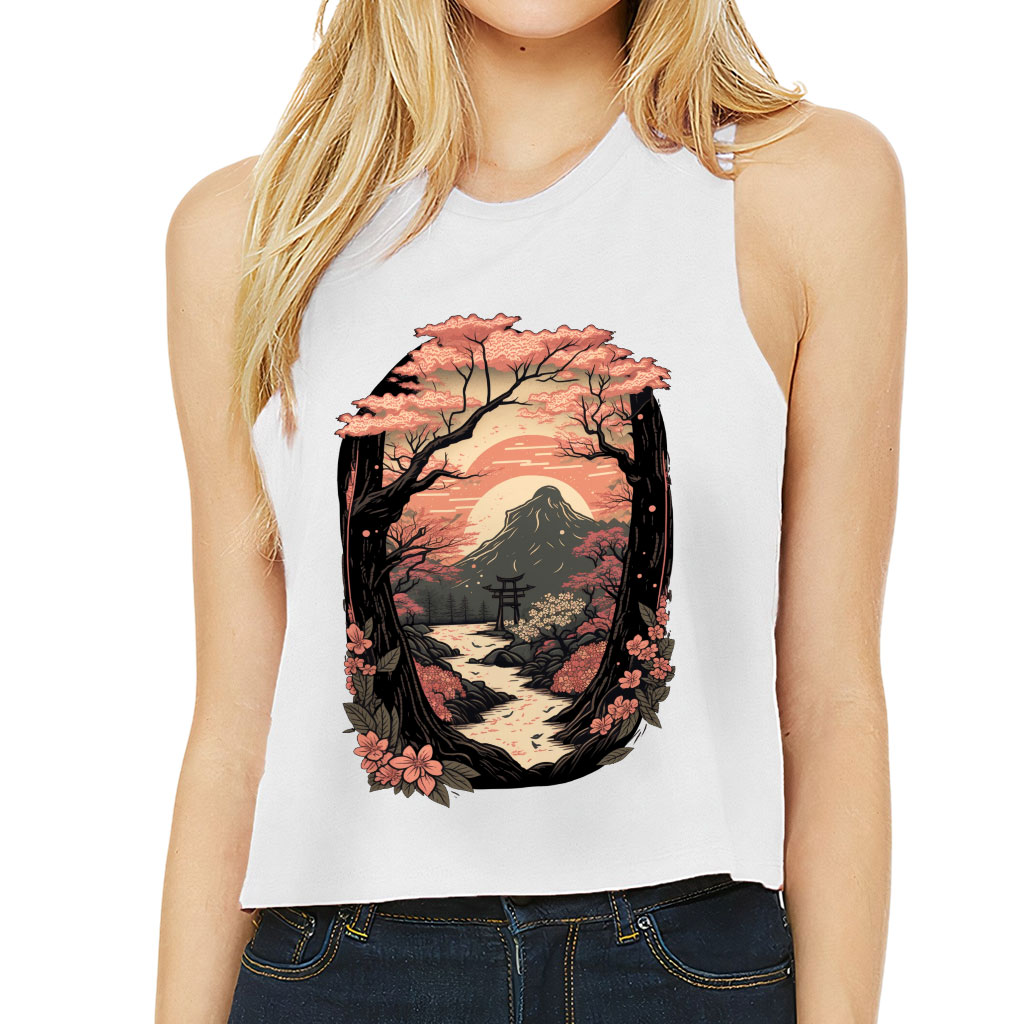 Japanese Mountain Racerback Cropped Tank – Floral Women’s Tank – Art Tank Top