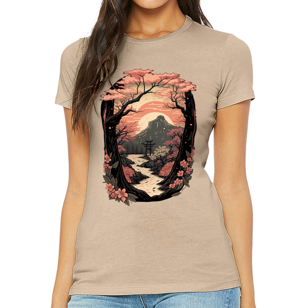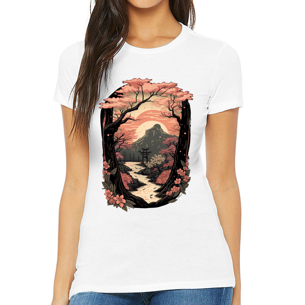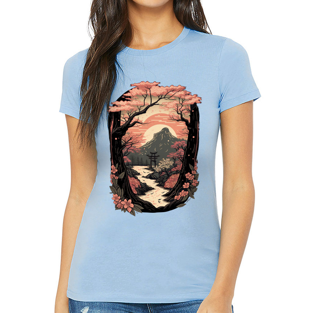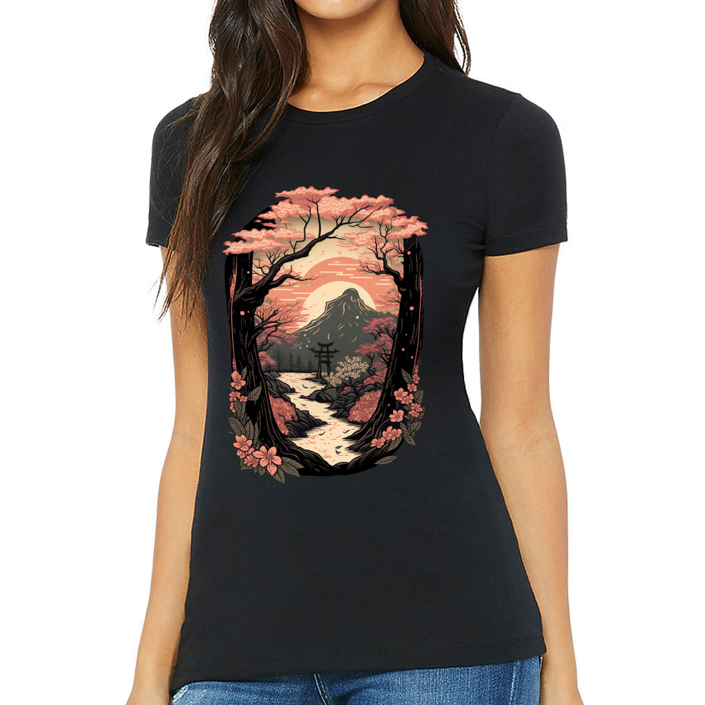 Japanese Mountain Slim Fit T-Shirt – Floral Women’s T-Shirt – Art Slim Fit Tee