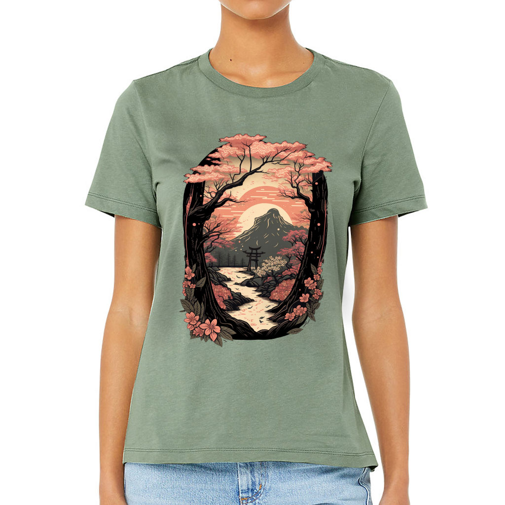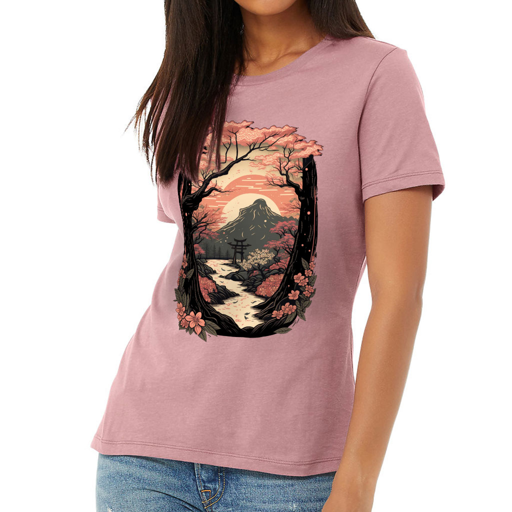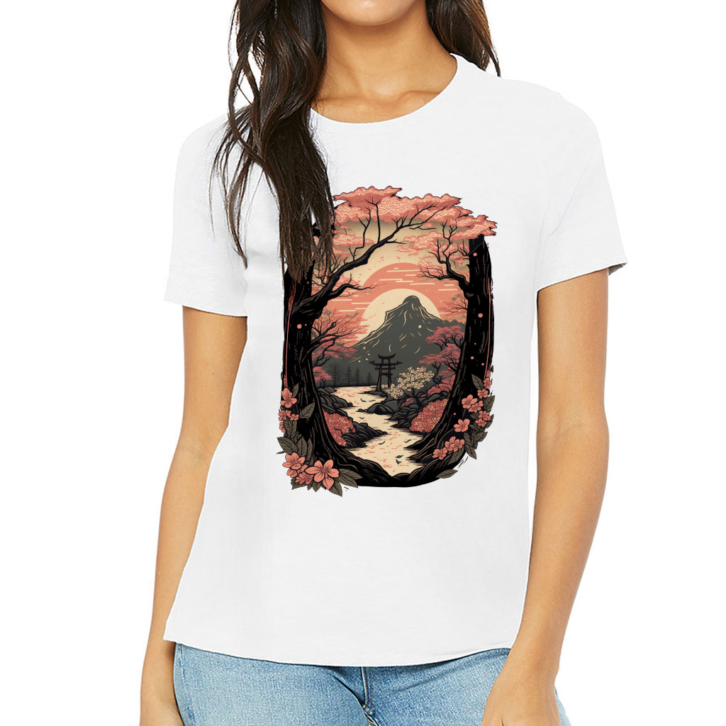 Japanese Mountain Women’s T-Shirt – Floral T-Shirt – Art Relaxed Tee