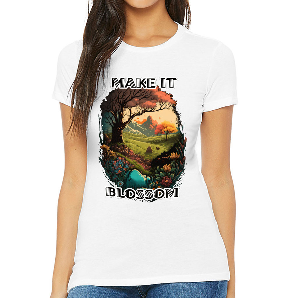 Make It Blossom Slim Fit T-Shirt – Graphic Women’s T-Shirt – Nature Slim Fit Tee