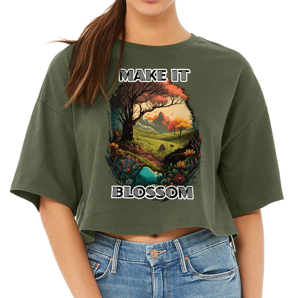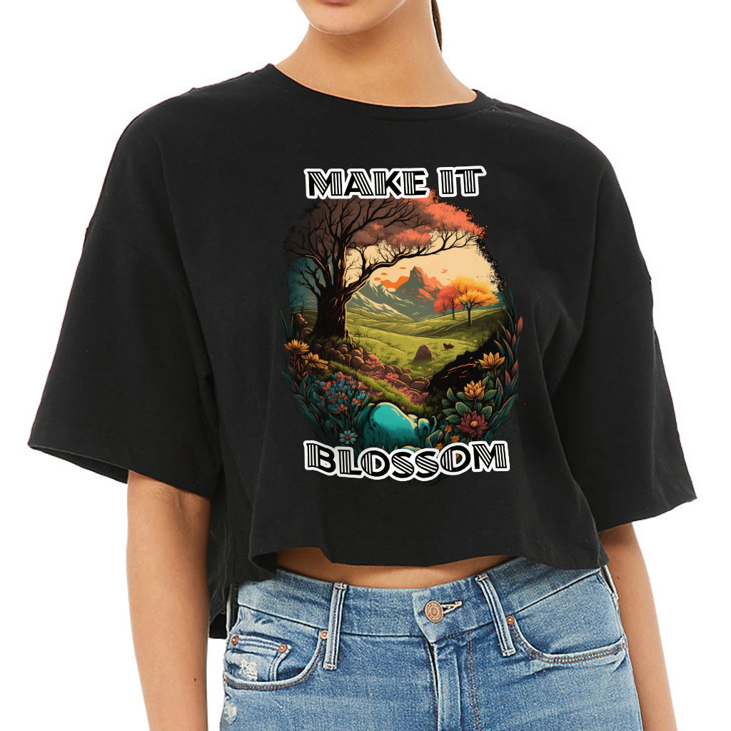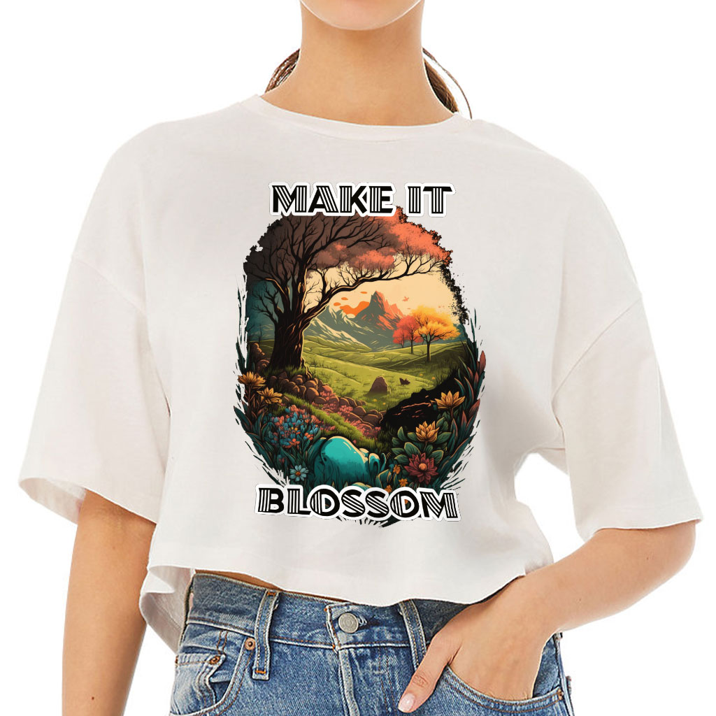 Make It Blossom Women’s Crop Tee Shirt – Graphic Cropped T-Shirt – Nature Crop Top