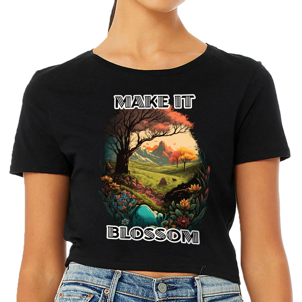 Make It Blossom Women’s Cropped T-Shirt – Graphic Crop Top – Nature Cropped Tee