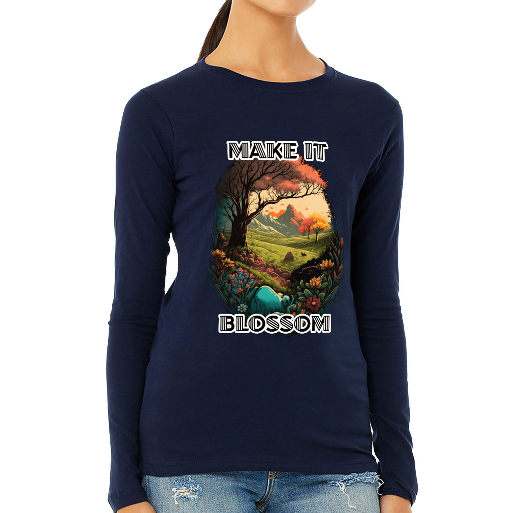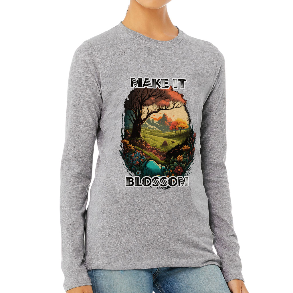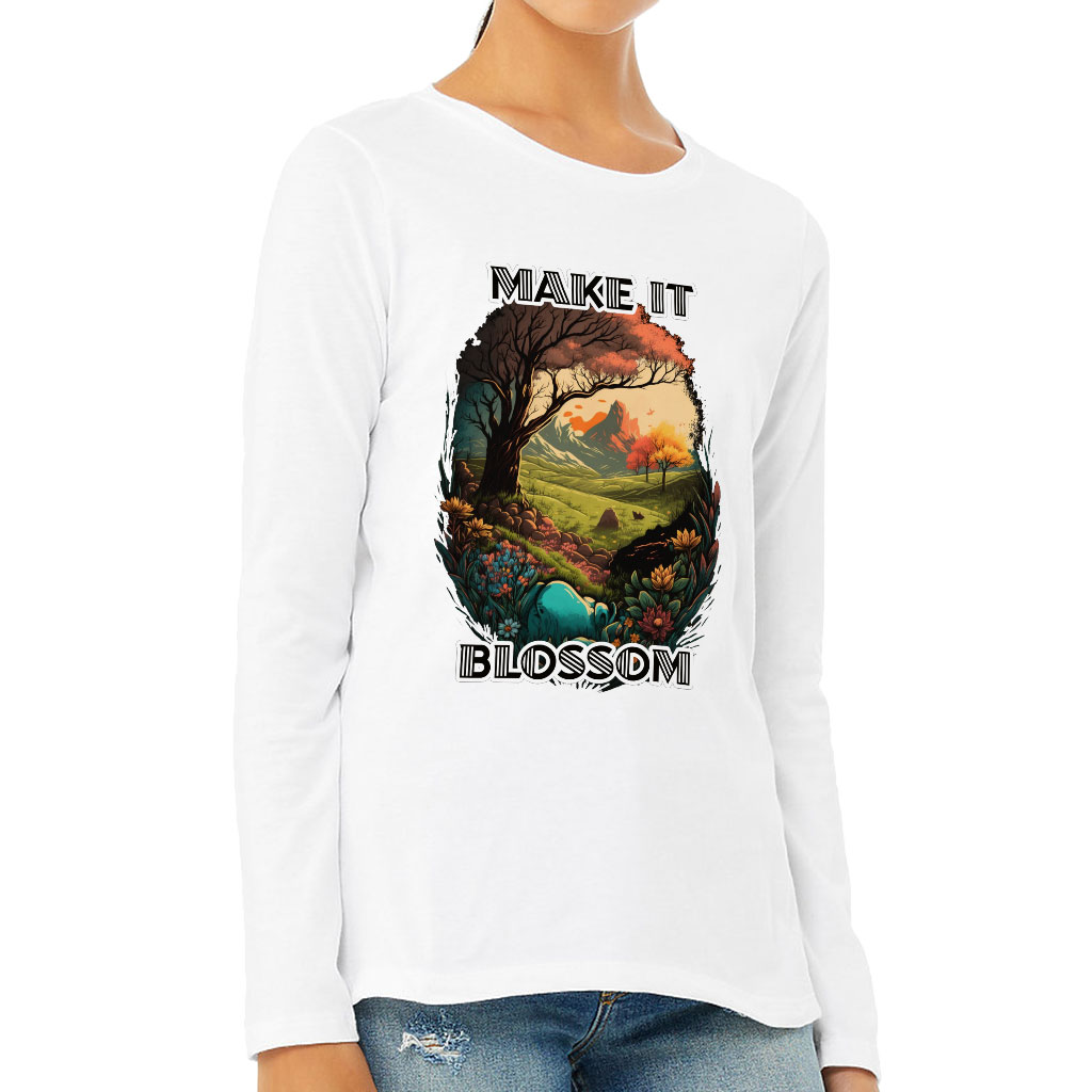 Make It Blossom Women’s Long Sleeve T-Shirt – Graphic Long Sleeve Tee – Nature T-Shirt