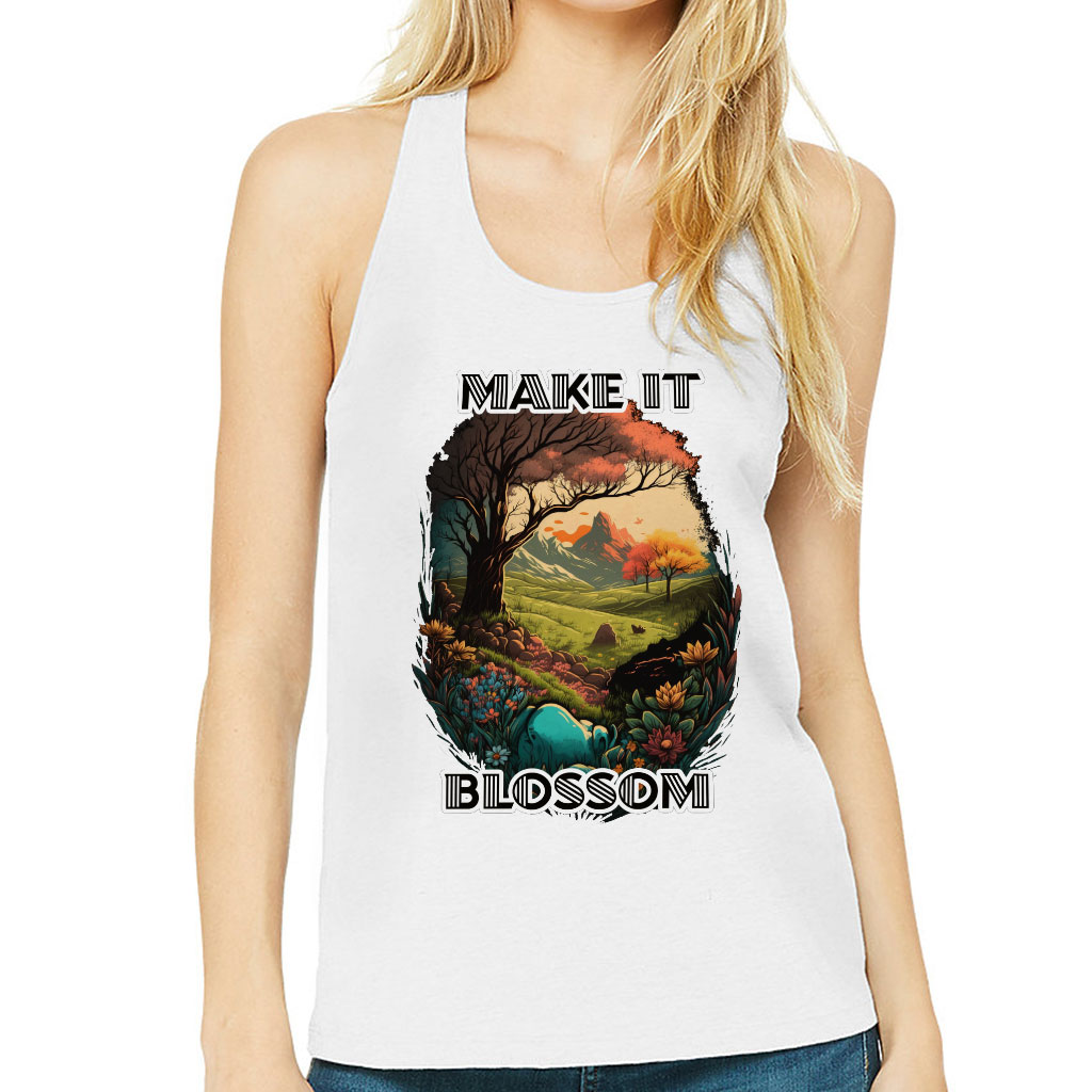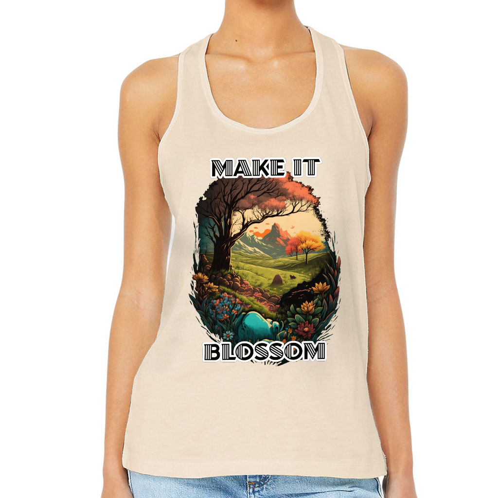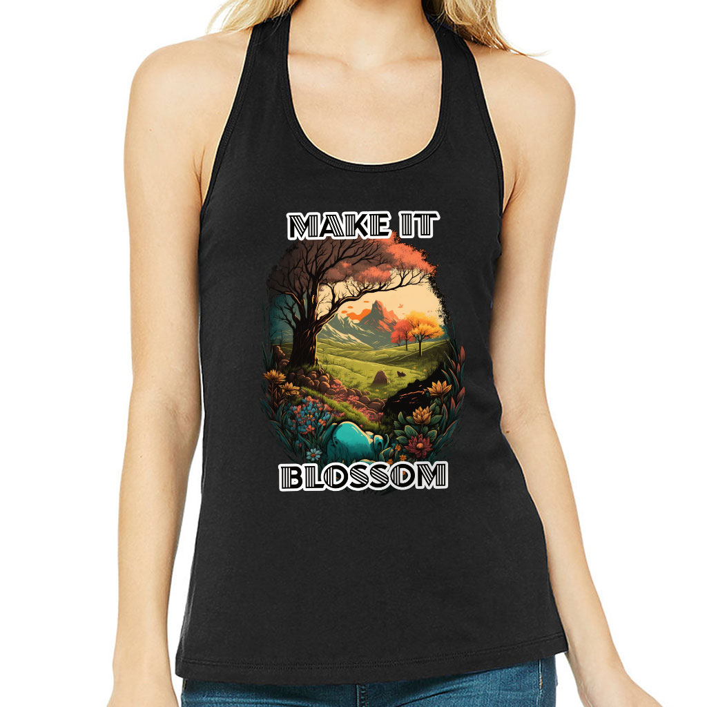 Make It Blossom Women’s Racerback Tank – Graphic Tank Top – Nature Workout Tank