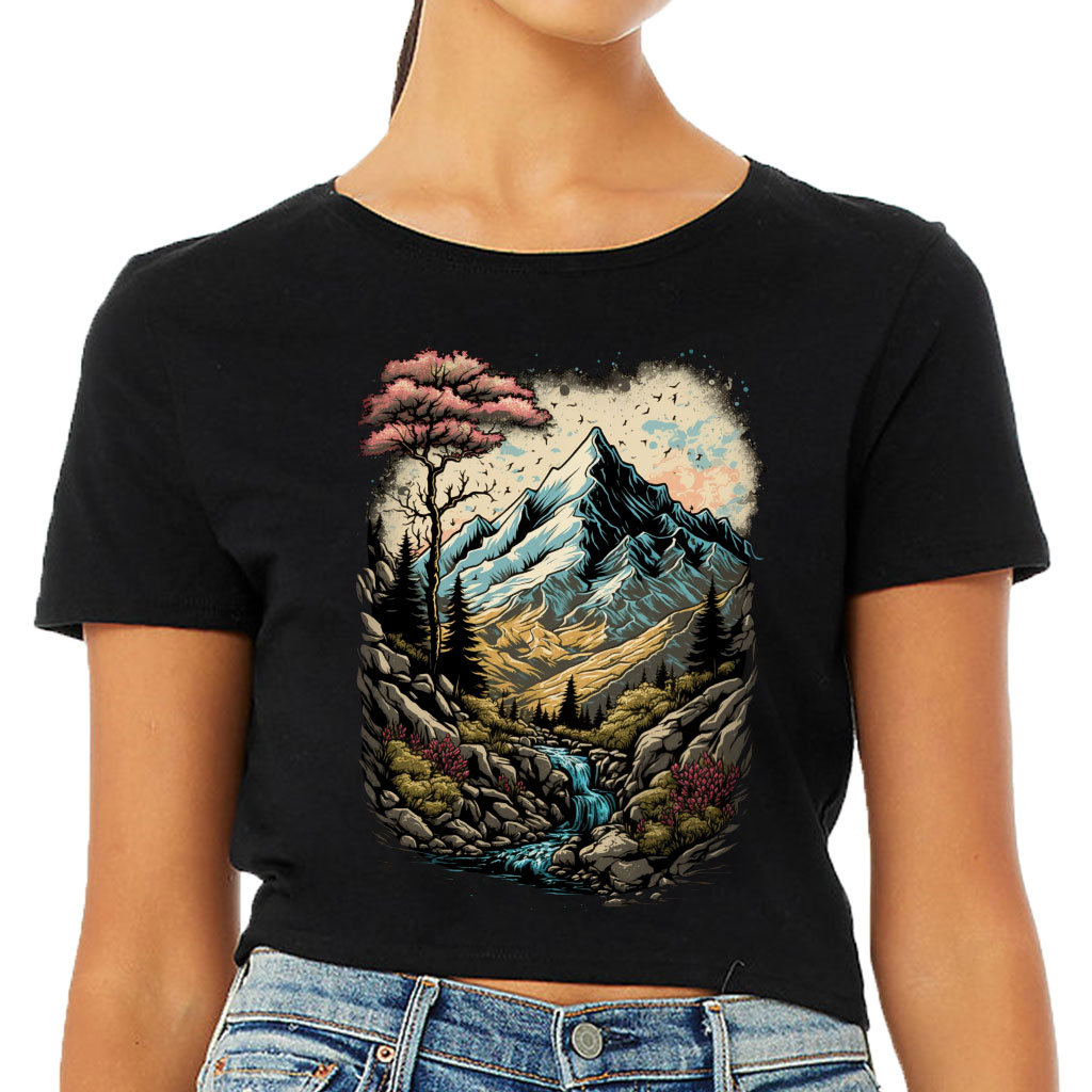 Mountain Print Women’s Cropped T-Shirt – Nature Crop Top – Beautiful Cropped Tee