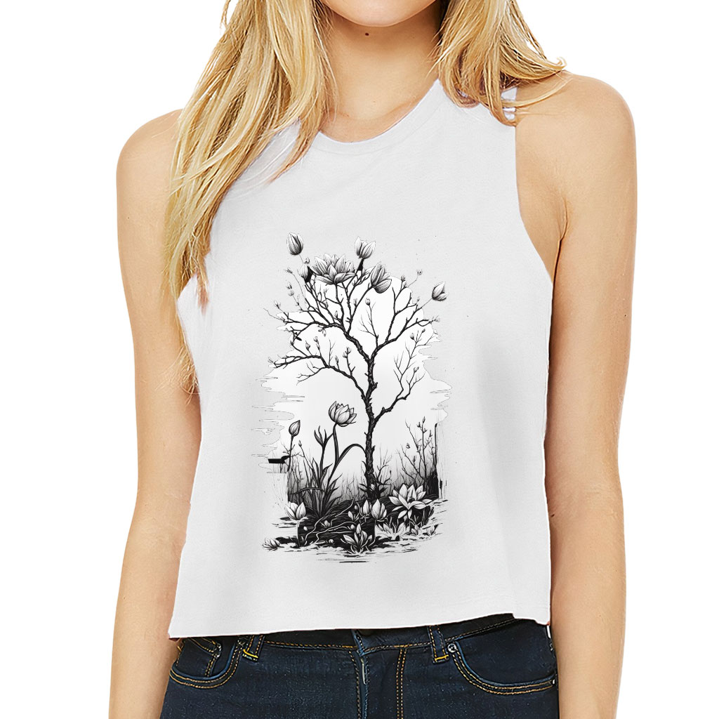 Nature Print Racerback Cropped Tank – Flower Women’s Tank – Graphic Tank Top