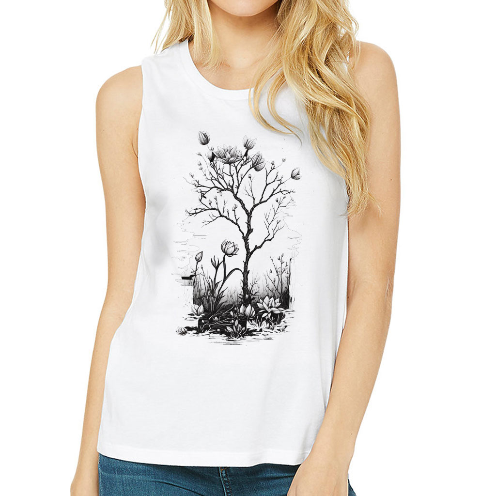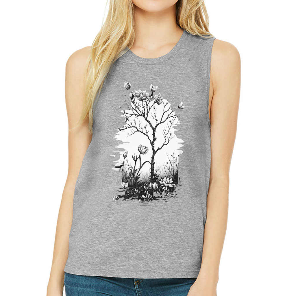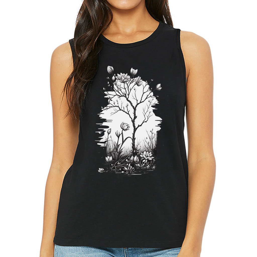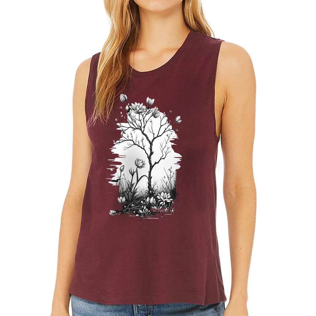 Nature Print Women’s Muscle Tank – Flower Tank Top – Graphic Workout Tank