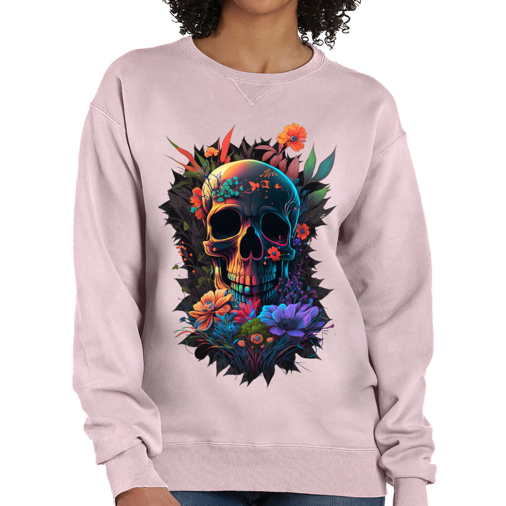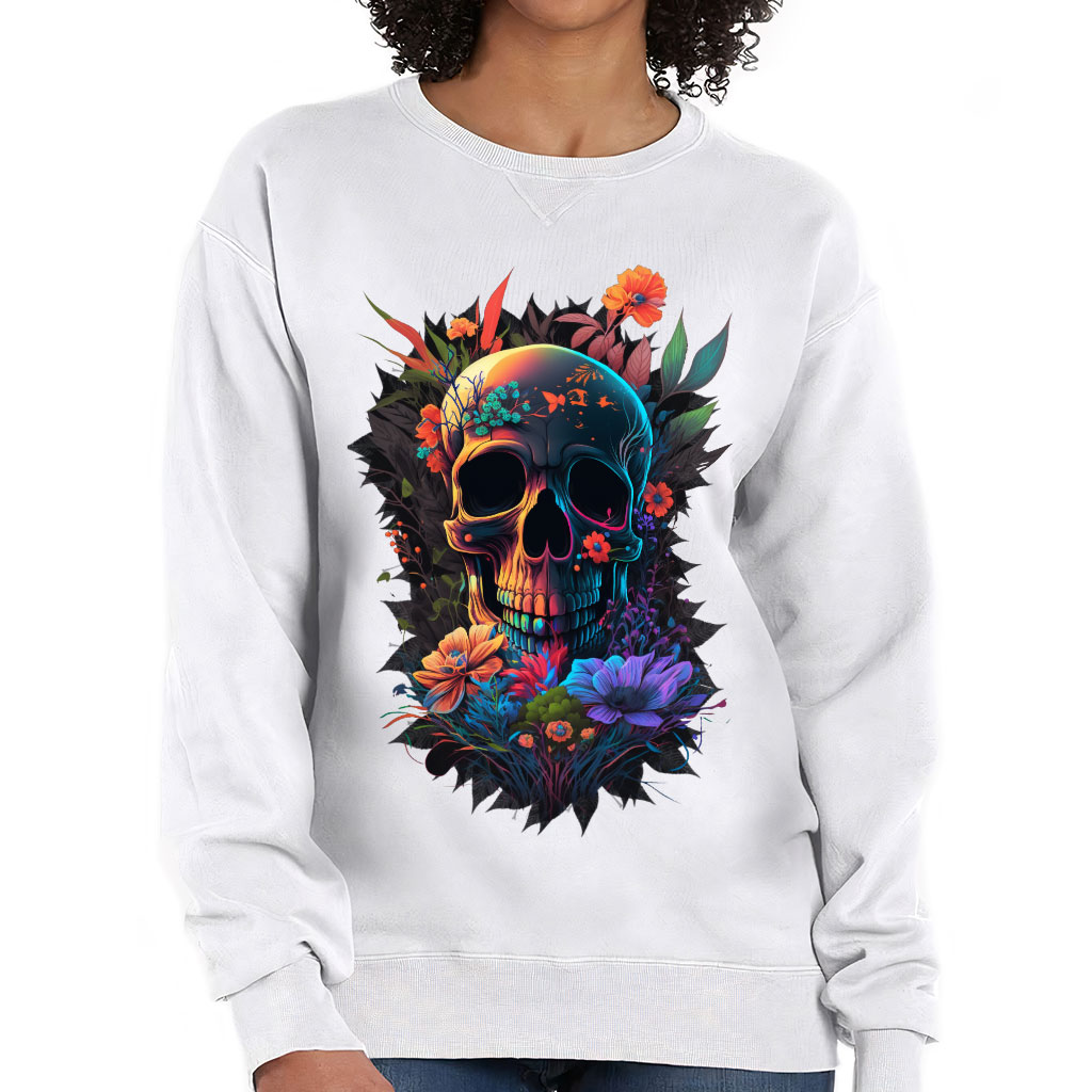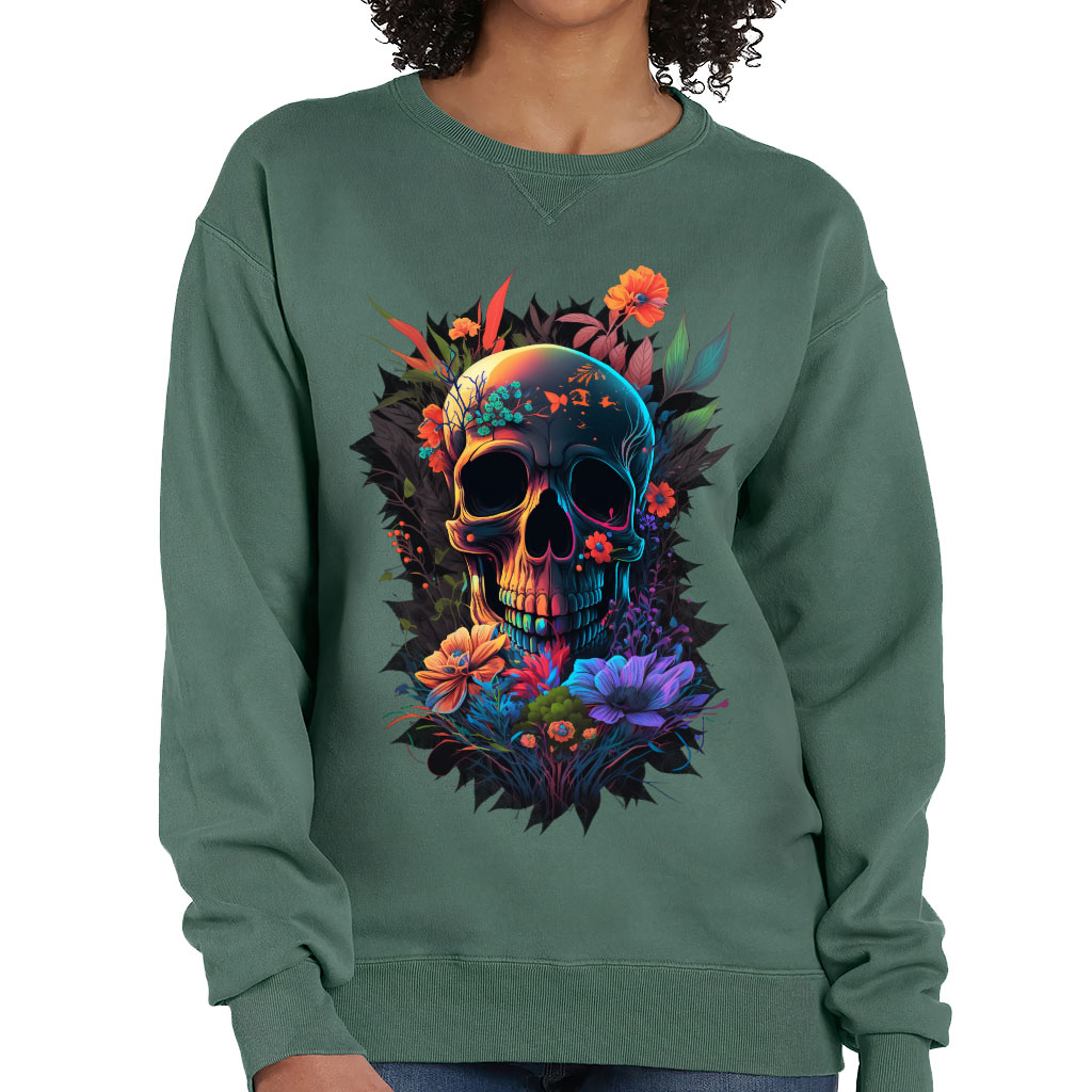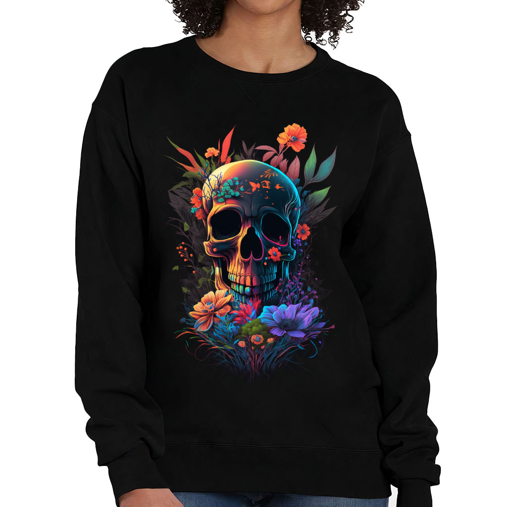 Neon Floral Crewneck Sweatshirt – Skull Women’s Sweatshirt – Cool Sweatshirt