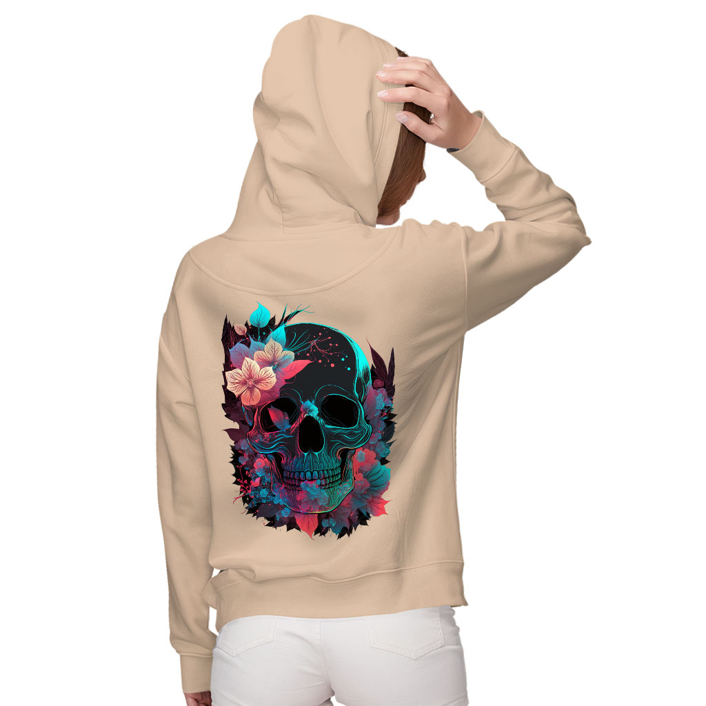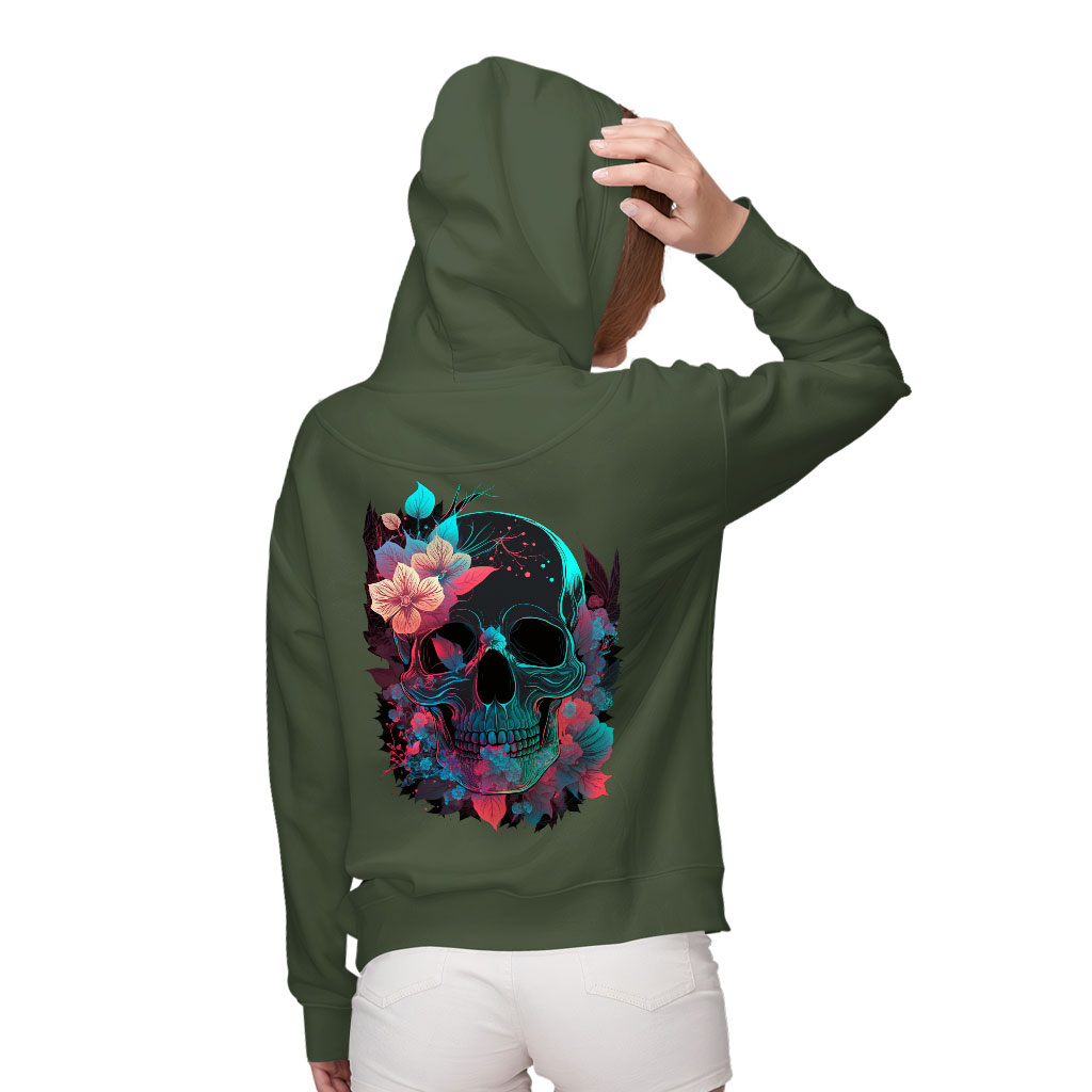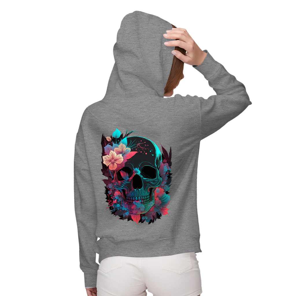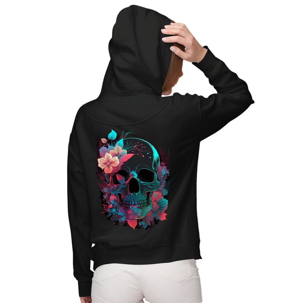 Neon Skull Women’s Zip Hoodie – Floral Hooded Sweatshirt – Cool Art Hoodie