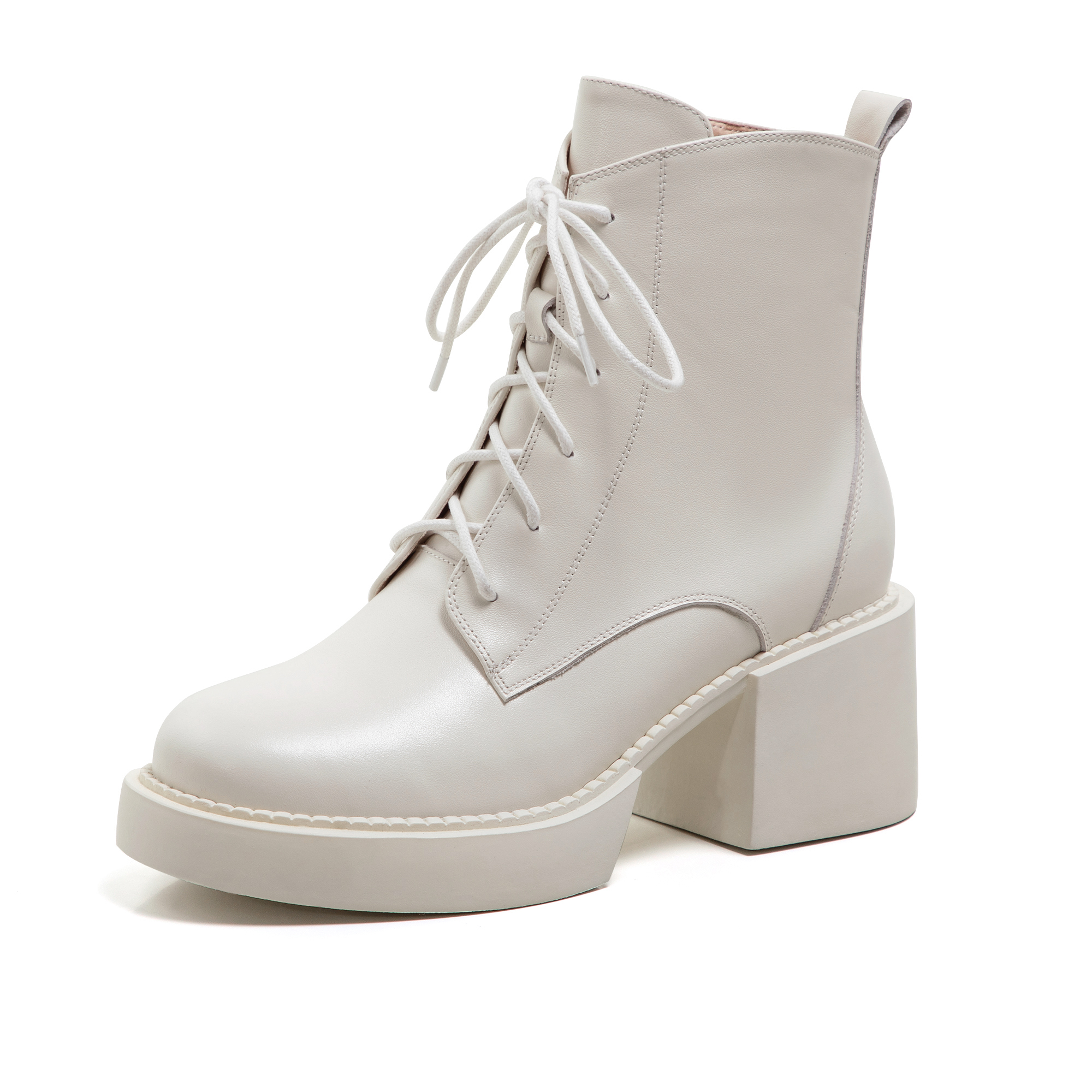Discover the perfect blend of retro charm and modern comfort with these stylish lace-up ankle boots. Crafted from high-quality cow leather, these boots offer both durability and sophistication. The sleek round toe and cross-tied design create a refined, mature look that effortlessly transitions from casual to office wear. With a side zipper for easy on-and-off and a comfortable 6.5 cm high square heel, these boots are your go-to footwear for both fashion and function this autumn and winter.