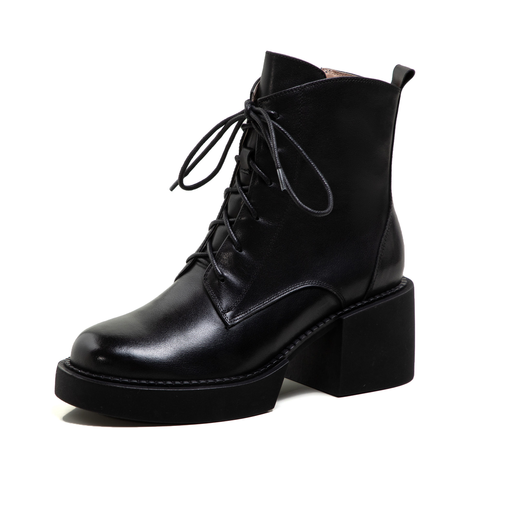 These lace-up ankle boots combine classic retro styling with modern-day comfort. The high-quality cow leather ensures longevity and luxury, while the plush insole adds warmth for the winter season. The elegant lace-up detailing offers a vintage-inspired look, while the square heel provides stability and comfort. The side zipper makes wearing and removing these boots effortless, allowing you to enjoy their stylish design without the hassle.