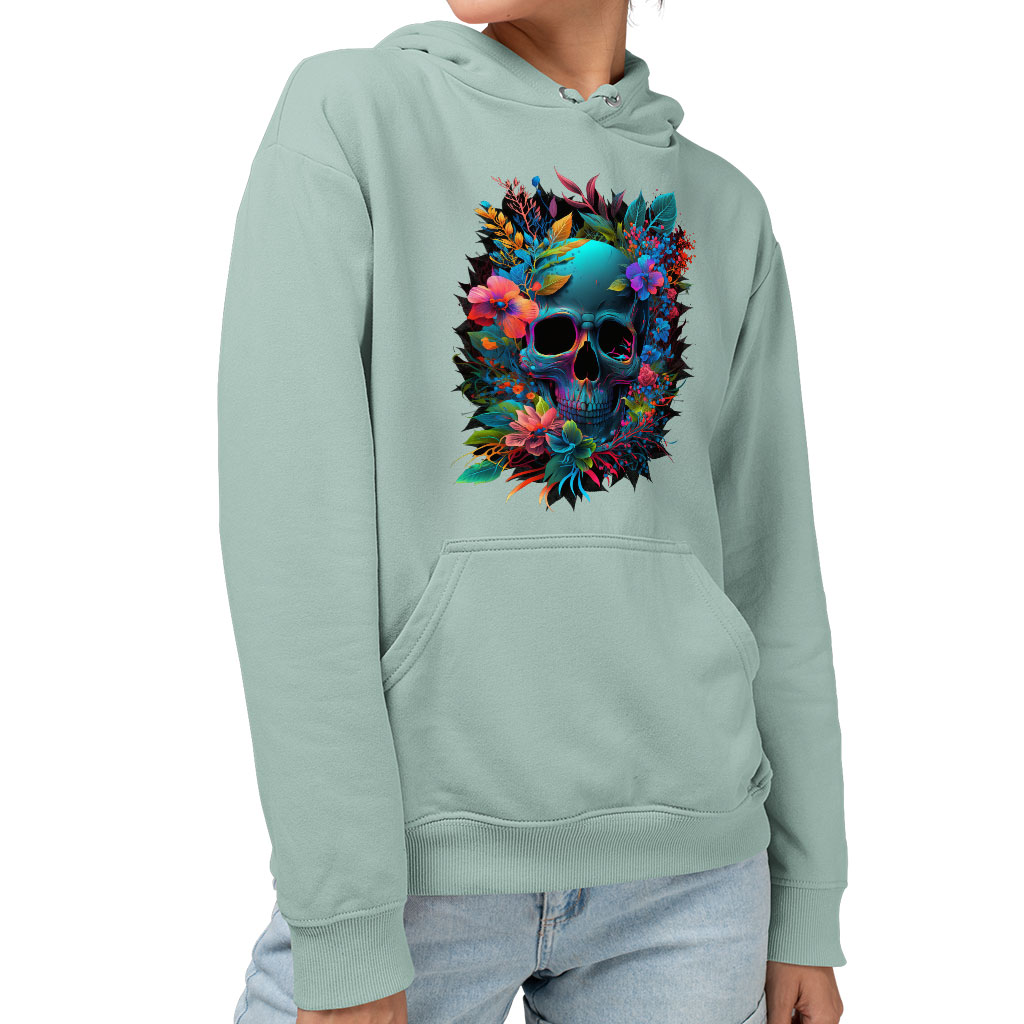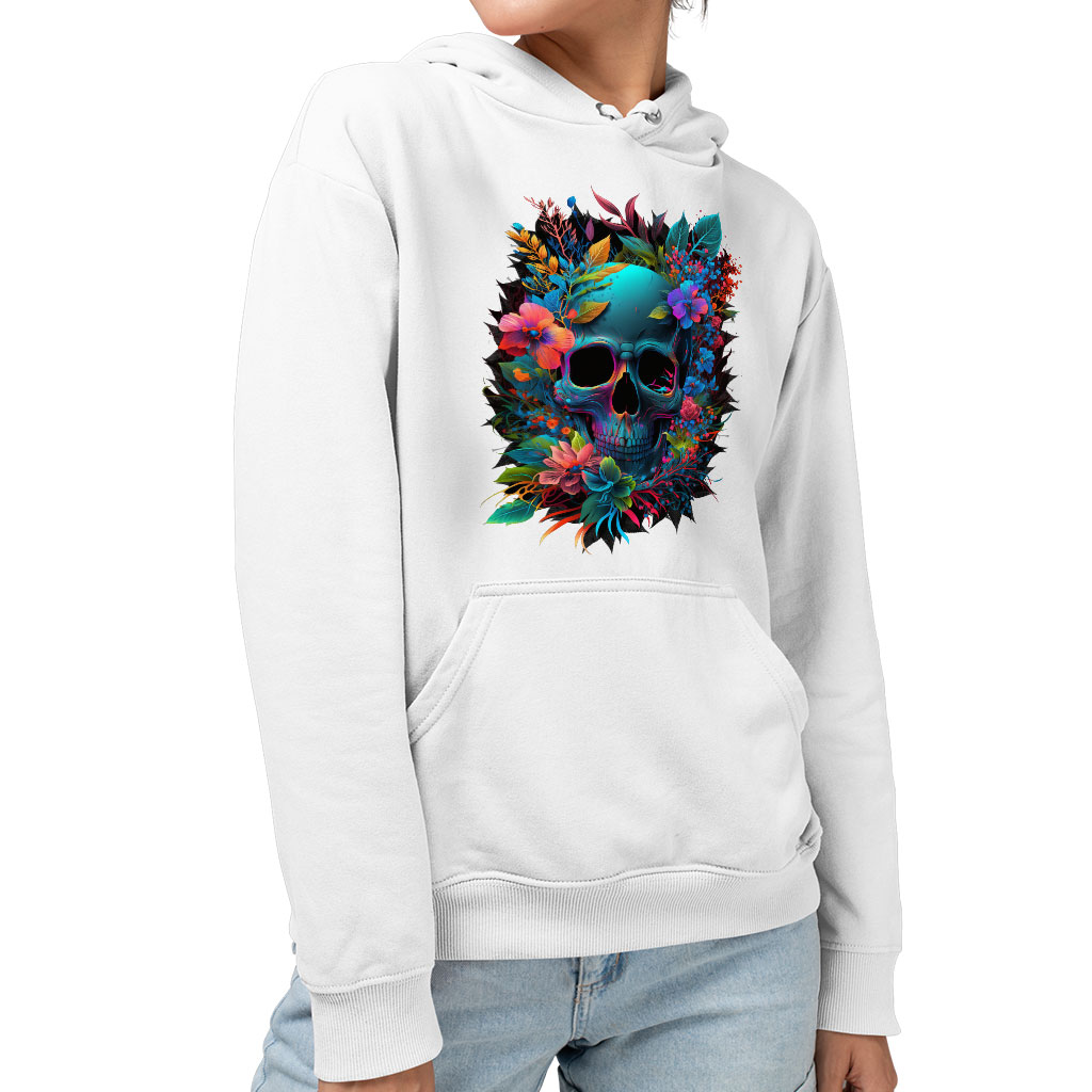 Skull Art Sponge Fleece Hoodie – Neon Print Hoodie – Themed Hooded Sweatshirt