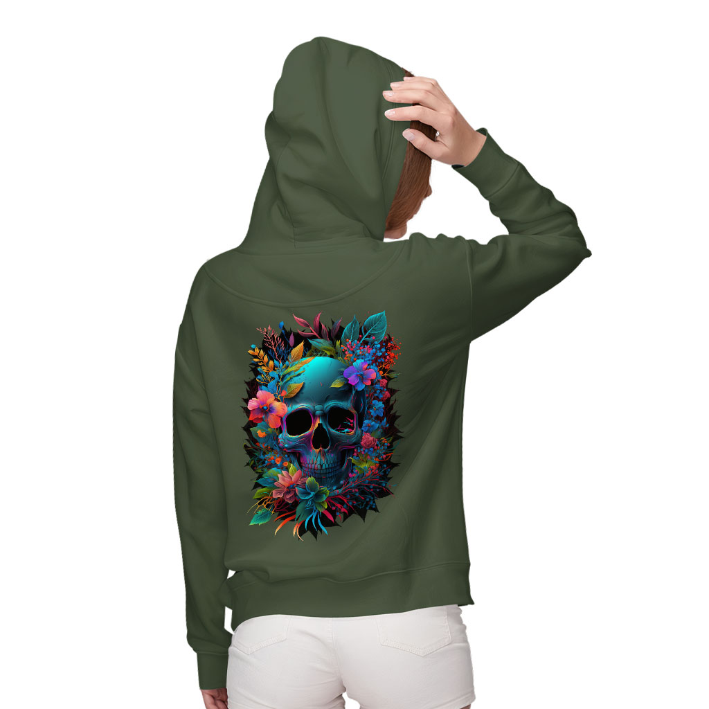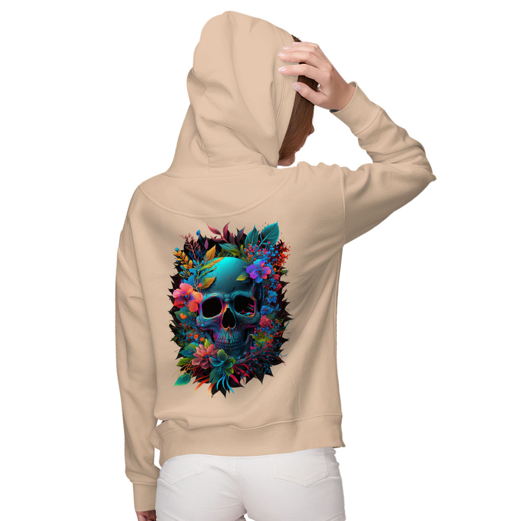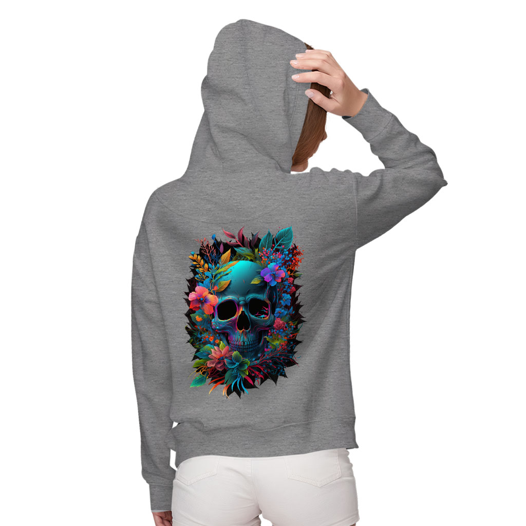 Skull Art Women’s Zip Hoodie – Neon Print Hooded Sweatshirt – Themed Hoodie