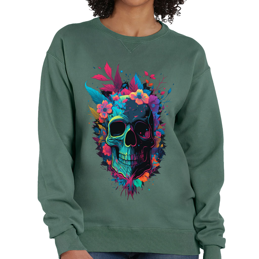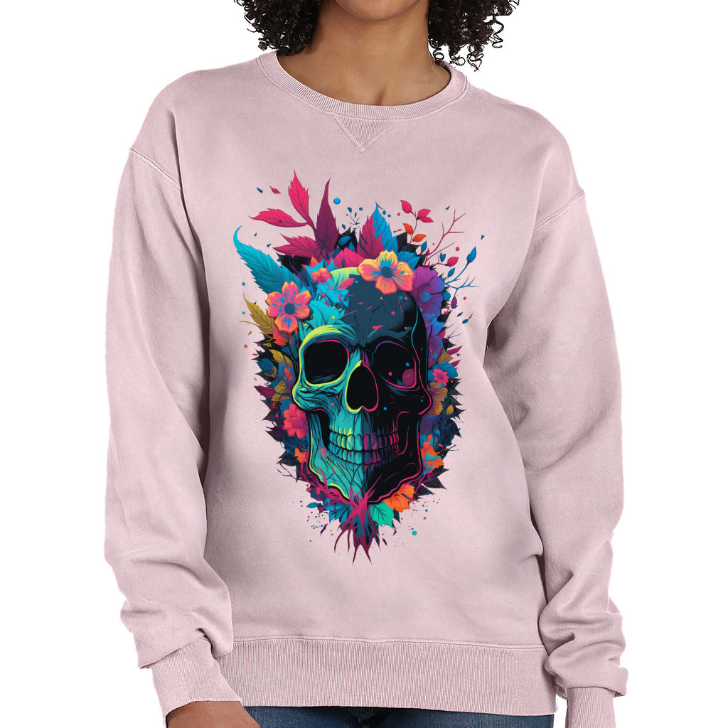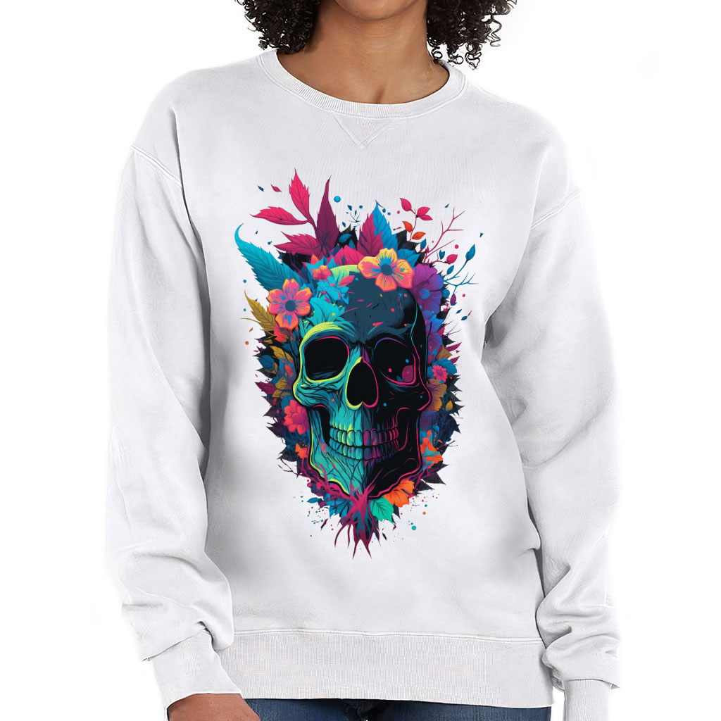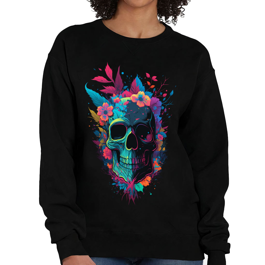 Skull Design Crewneck Sweatshirt – Floral Print Women’s Sweatshirt – Artwork Sweatshirt