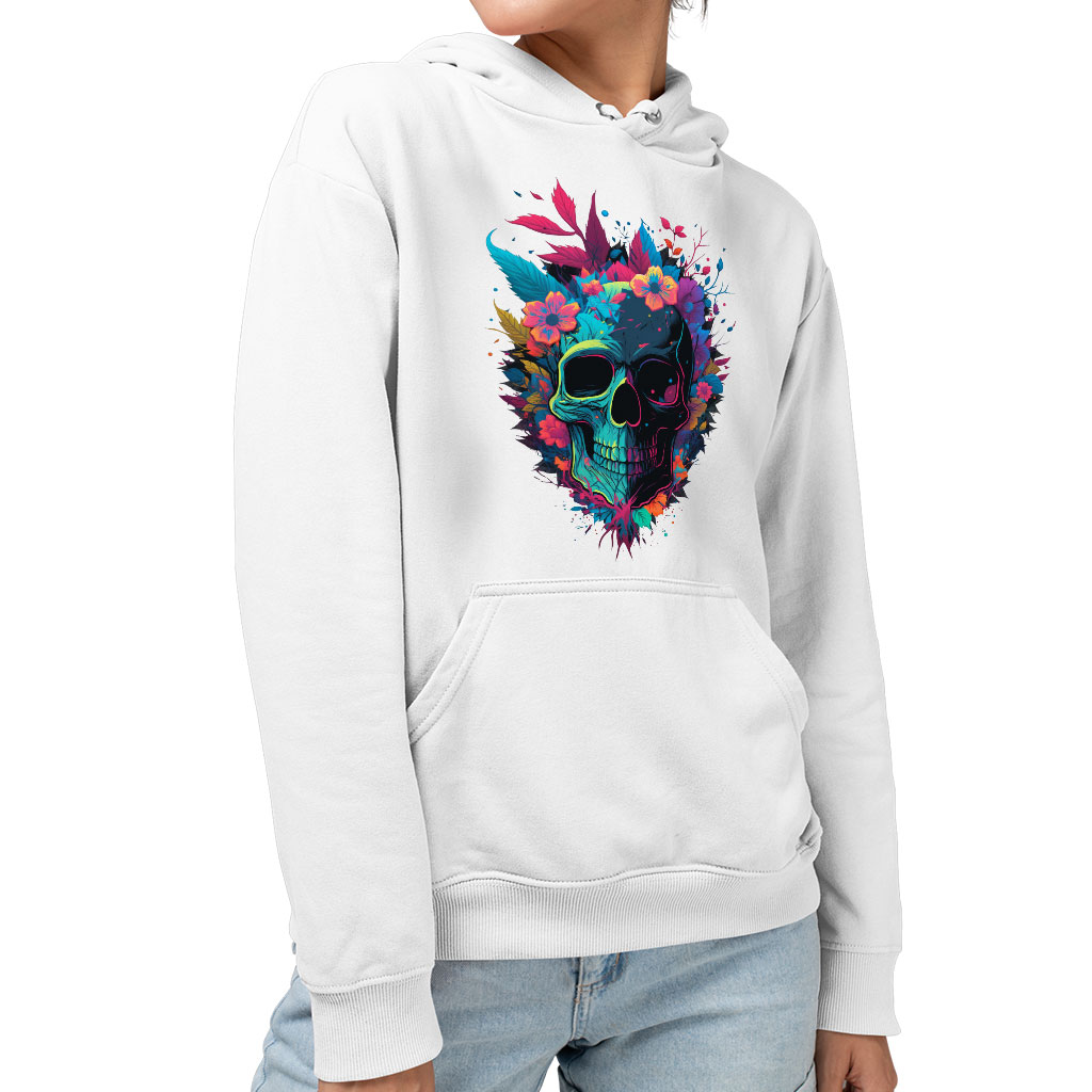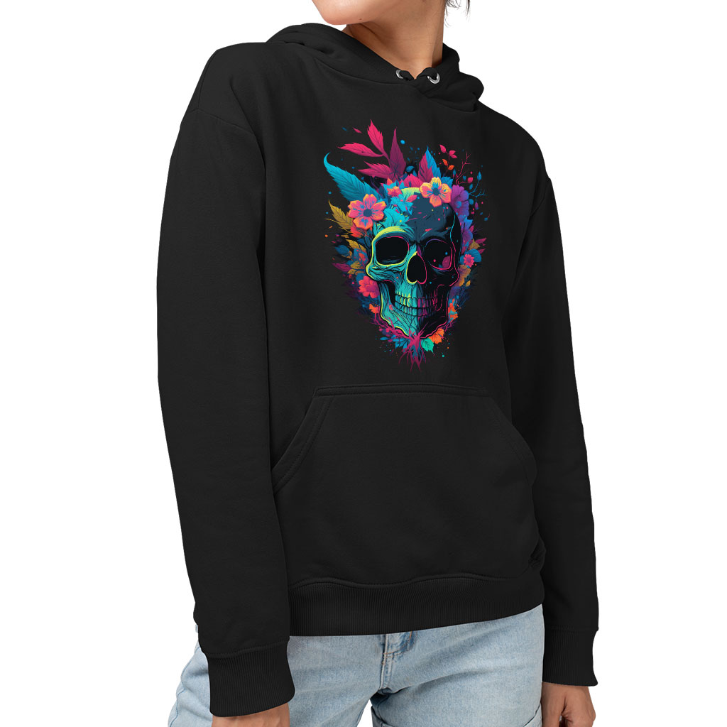 Skull Design Sponge Fleece Hoodie – Floral Print Hoodie – Artwork Hooded Sweatshirt