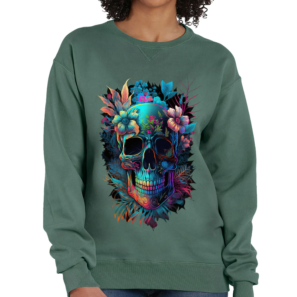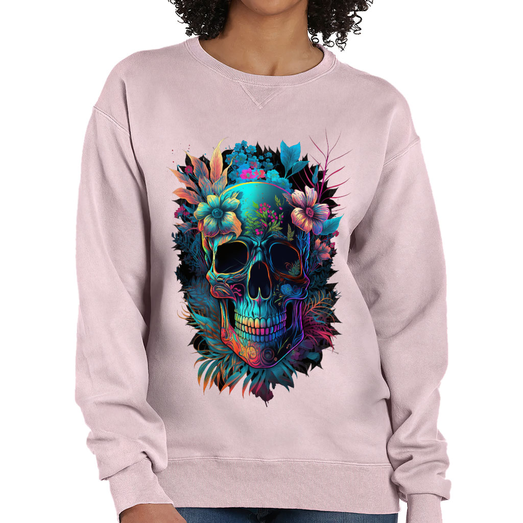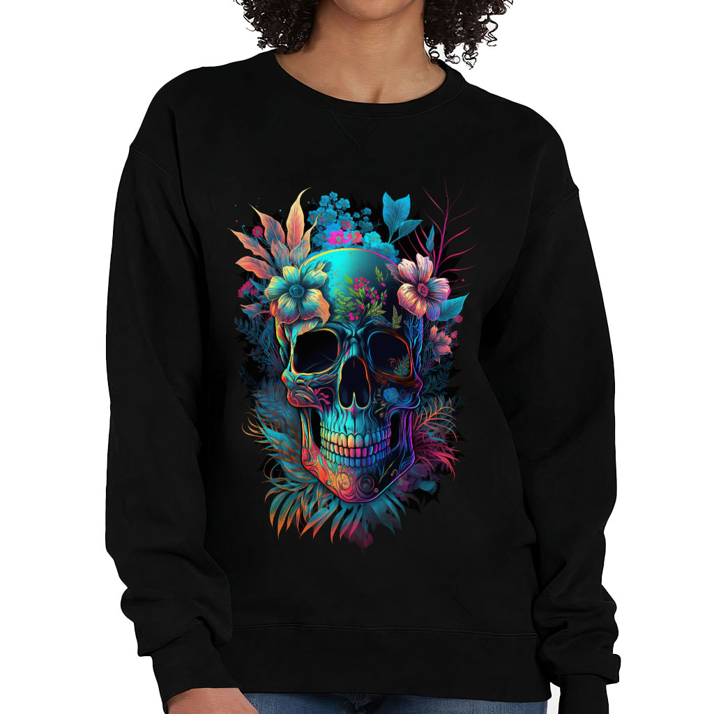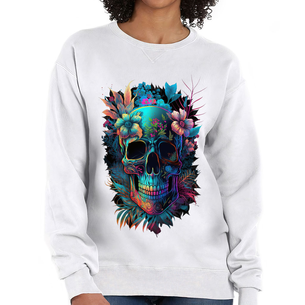 Skull Graphic Crewneck Sweatshirt – Flower Women’s Sweatshirt – Illustration Sweatshirt
