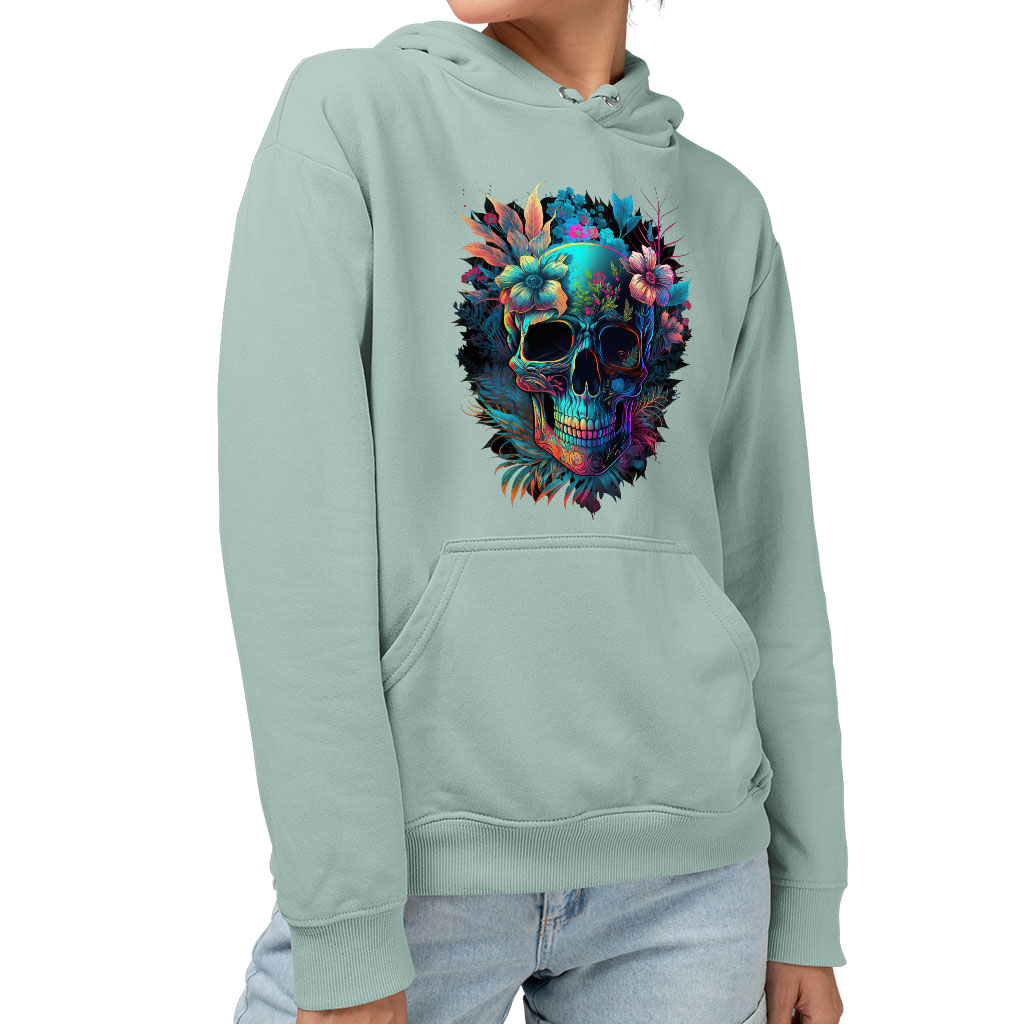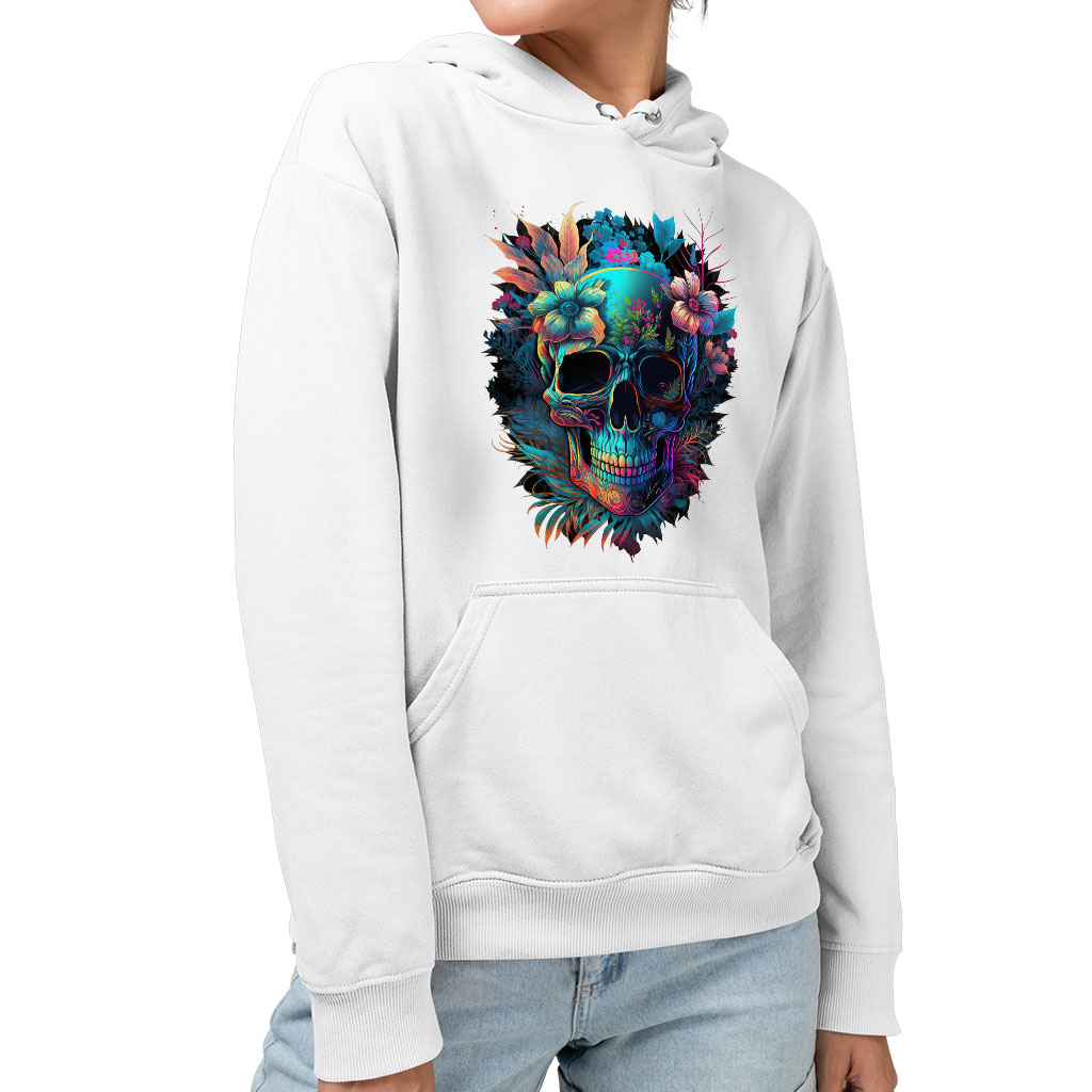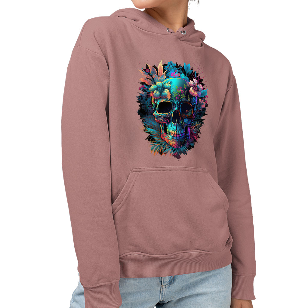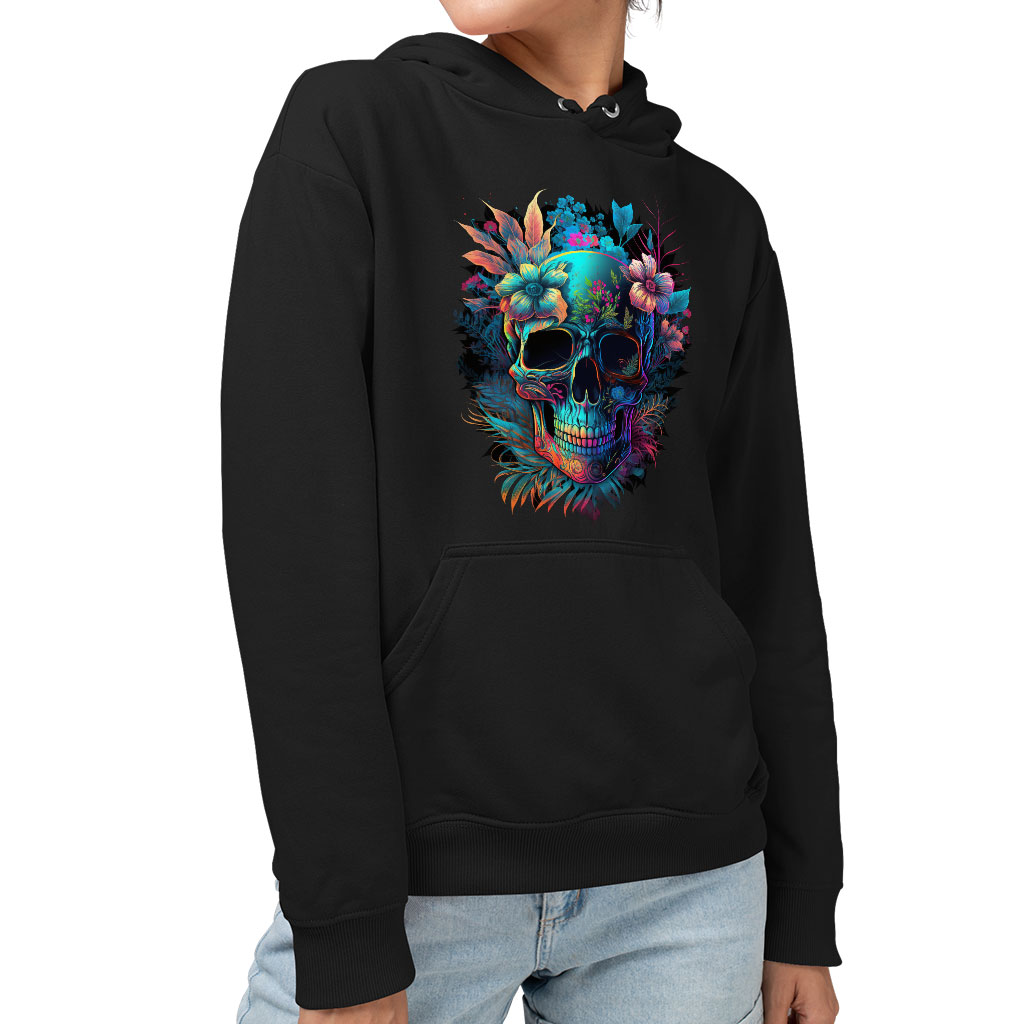 Skull Graphic Sponge Fleece Hoodie – Flower Hoodie – Illustration Hooded Sweatshirt
