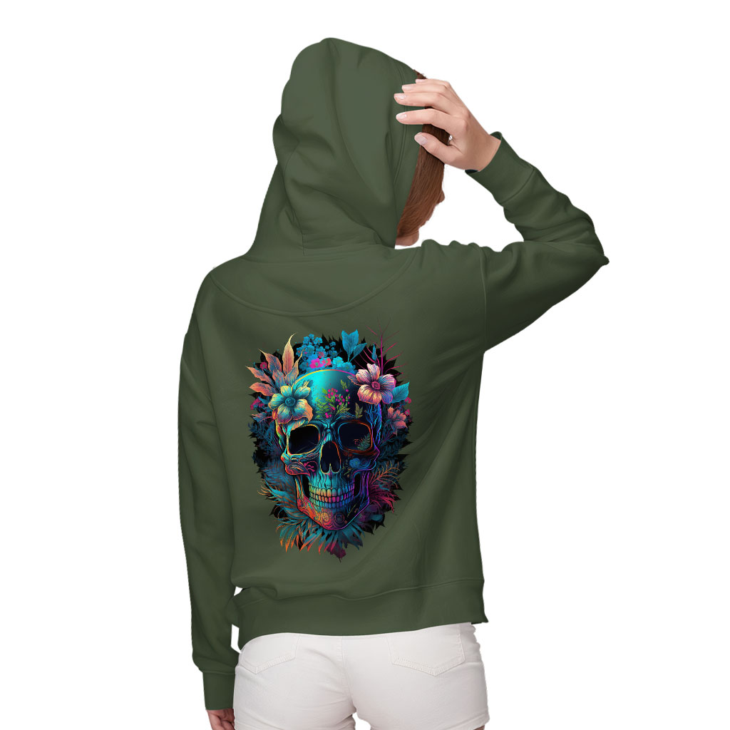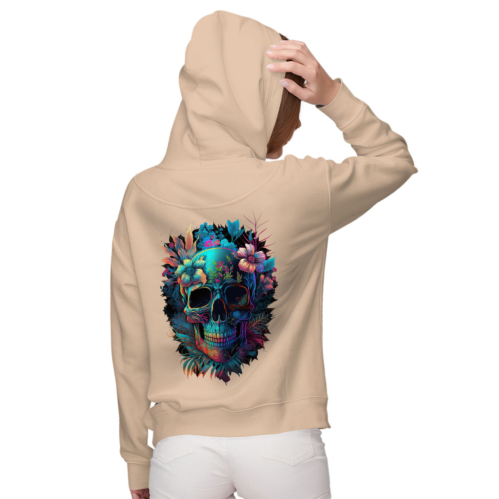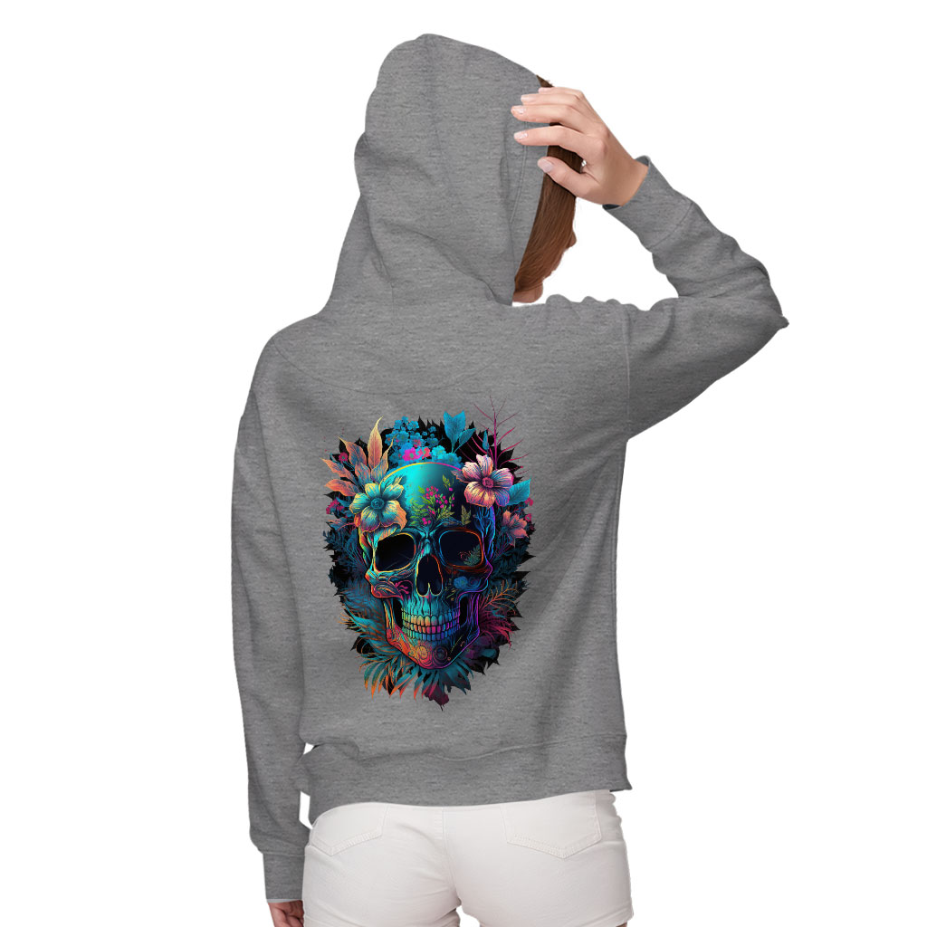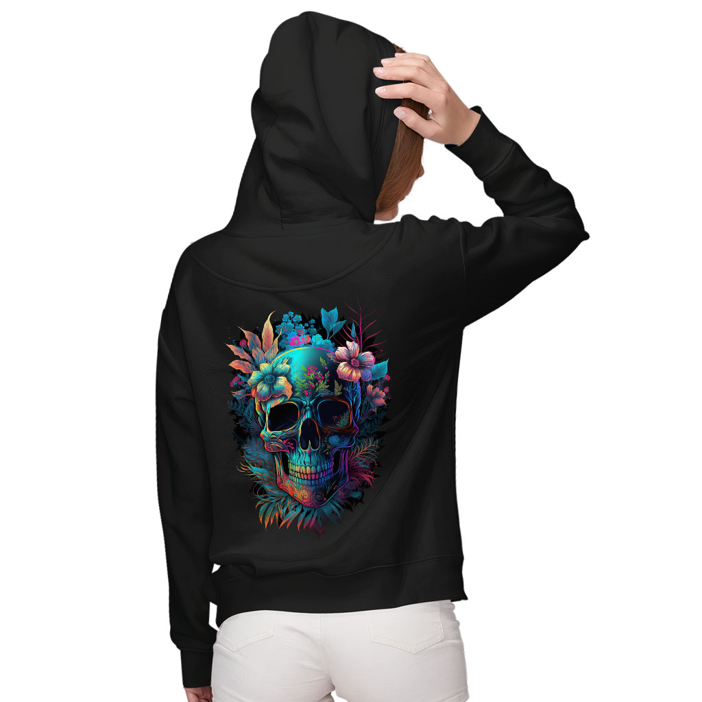 Skull Graphic Women’s Zip Hoodie – Flower Hooded Sweatshirt – Illustration Hoodie
