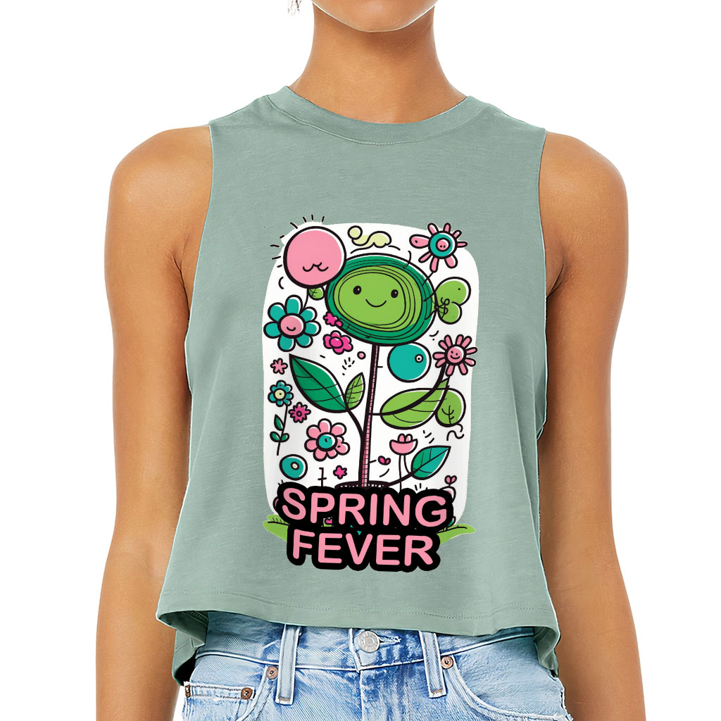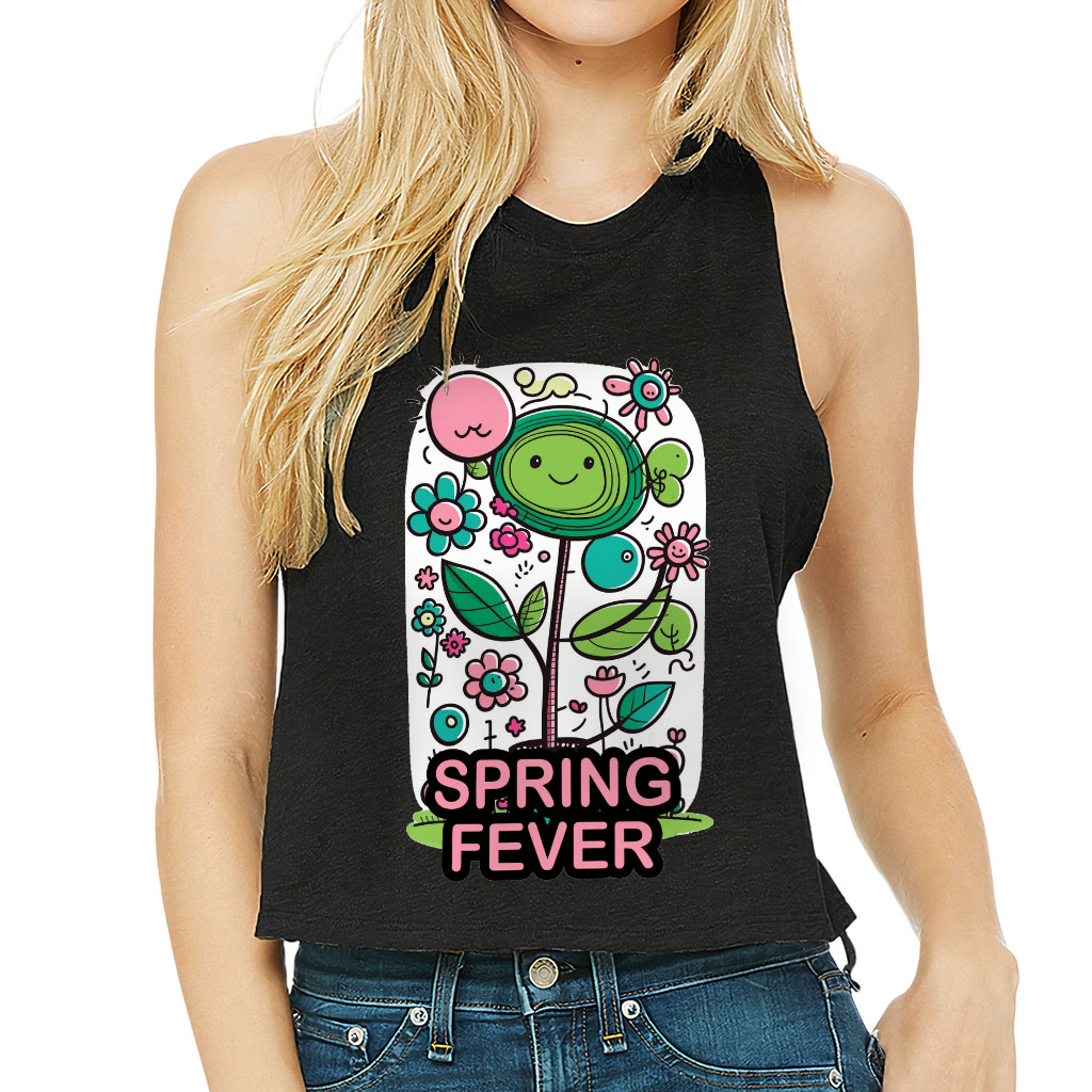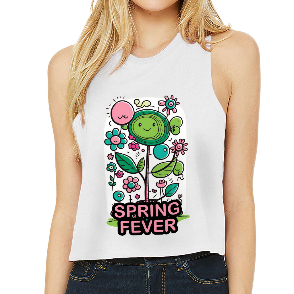 Spring Fever Racerback Cropped Tank – Cartoon Women’s Tank – Art Print Tank Top